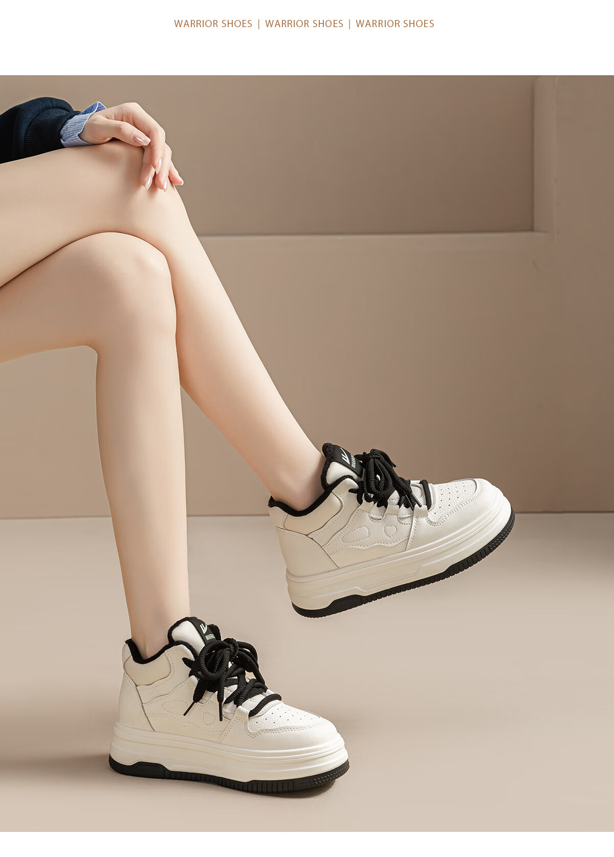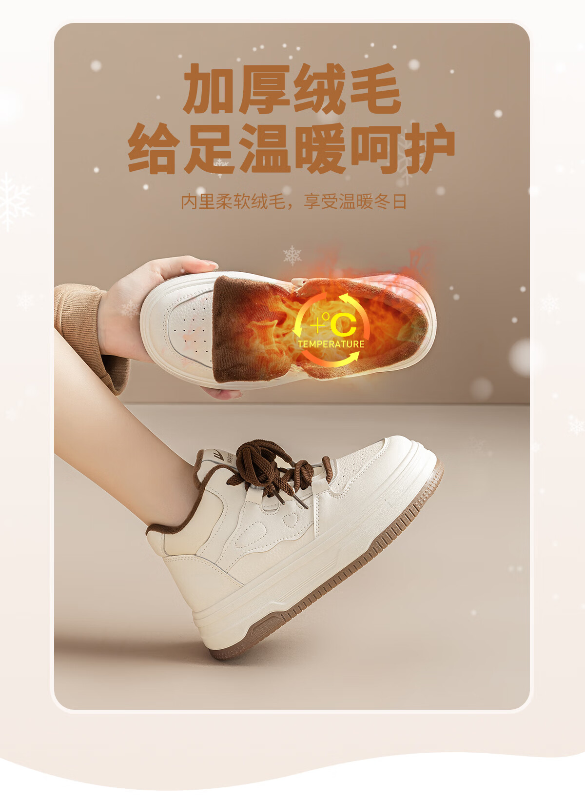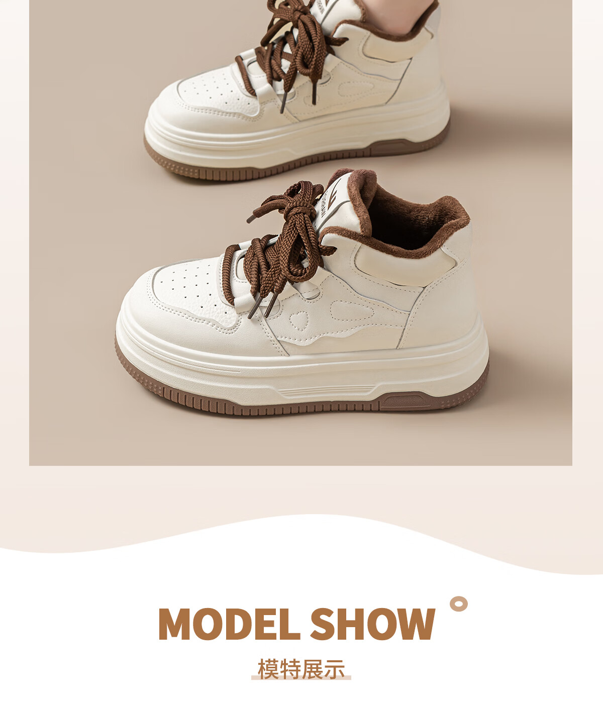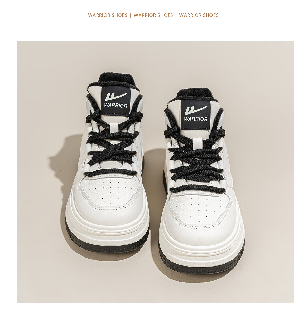 回力厚底高帮板鞋2025冬季女鞋新款加绒加厚保暖舒适百搭休闲增高棉鞋 白棕 35
