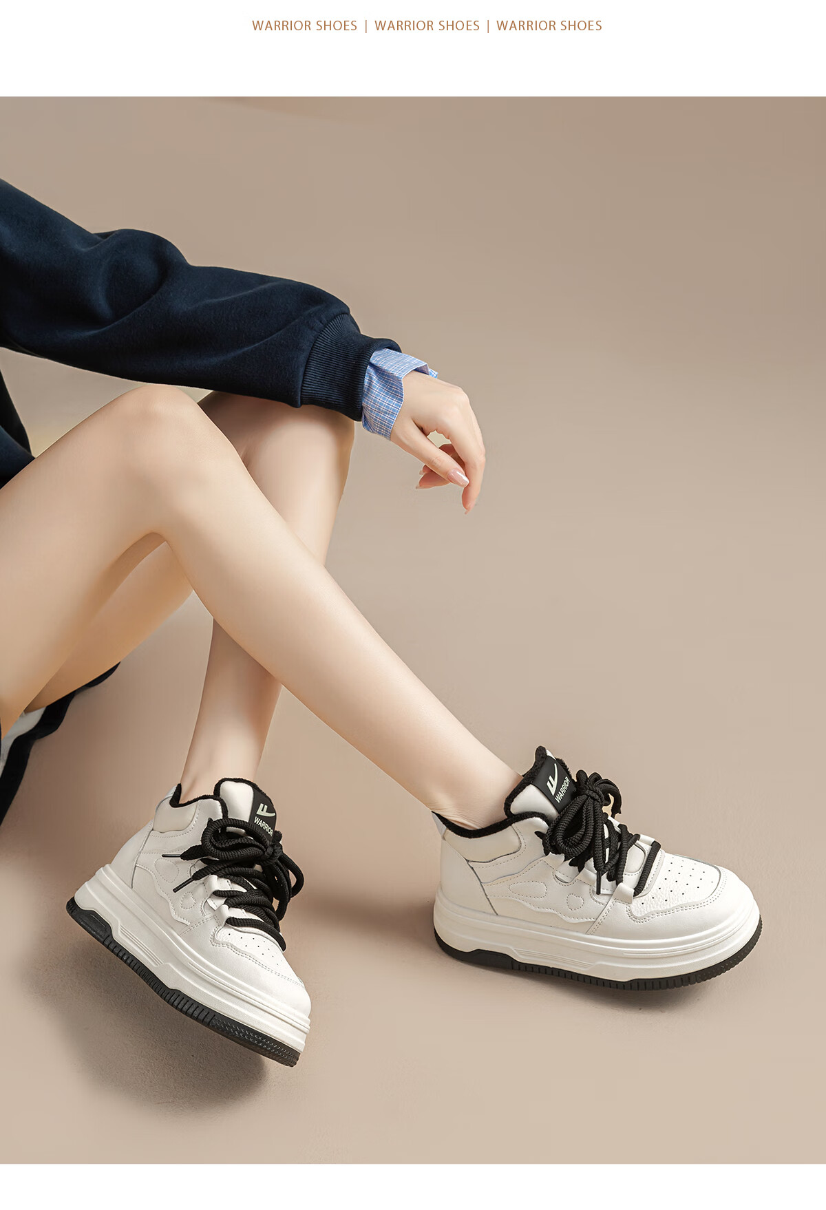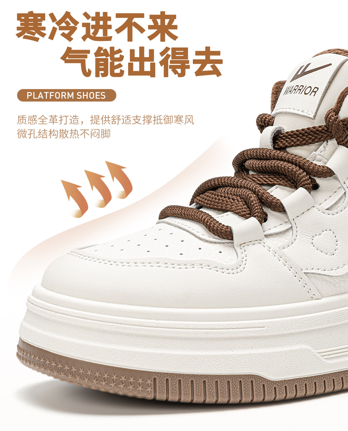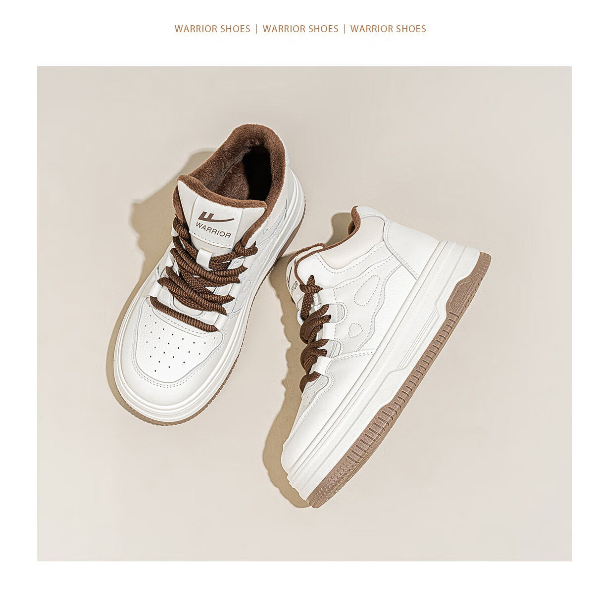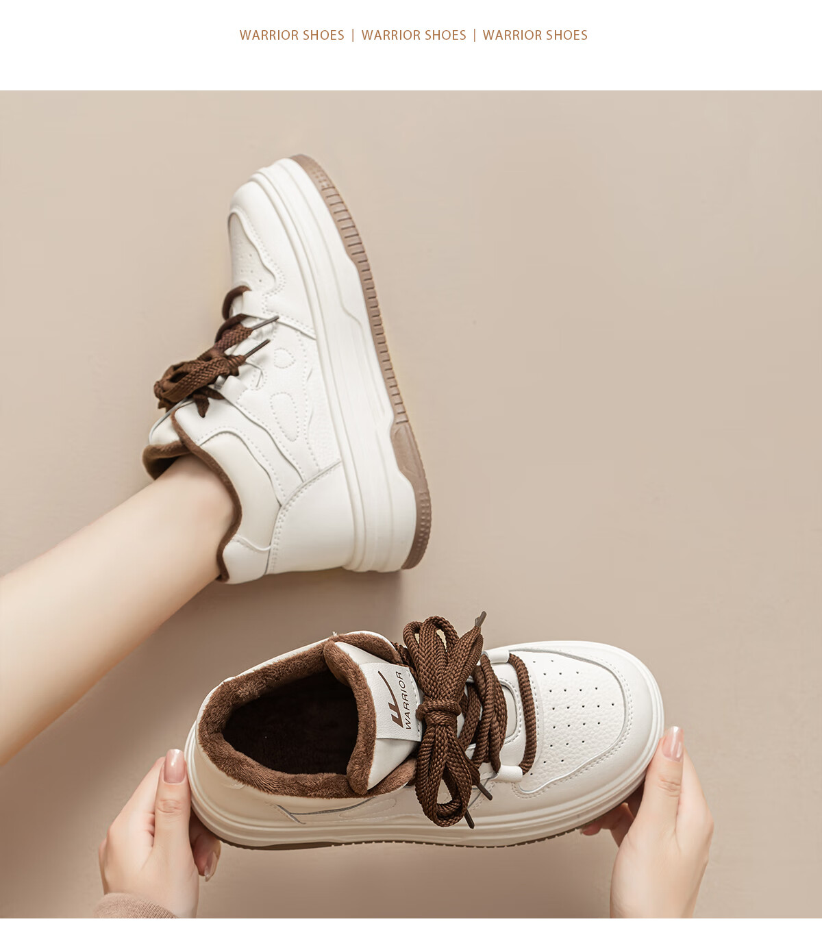回力厚底高帮板鞋2025冬季女鞋新款加绒加厚保暖舒适百搭休闲增高棉鞋 白棕 35