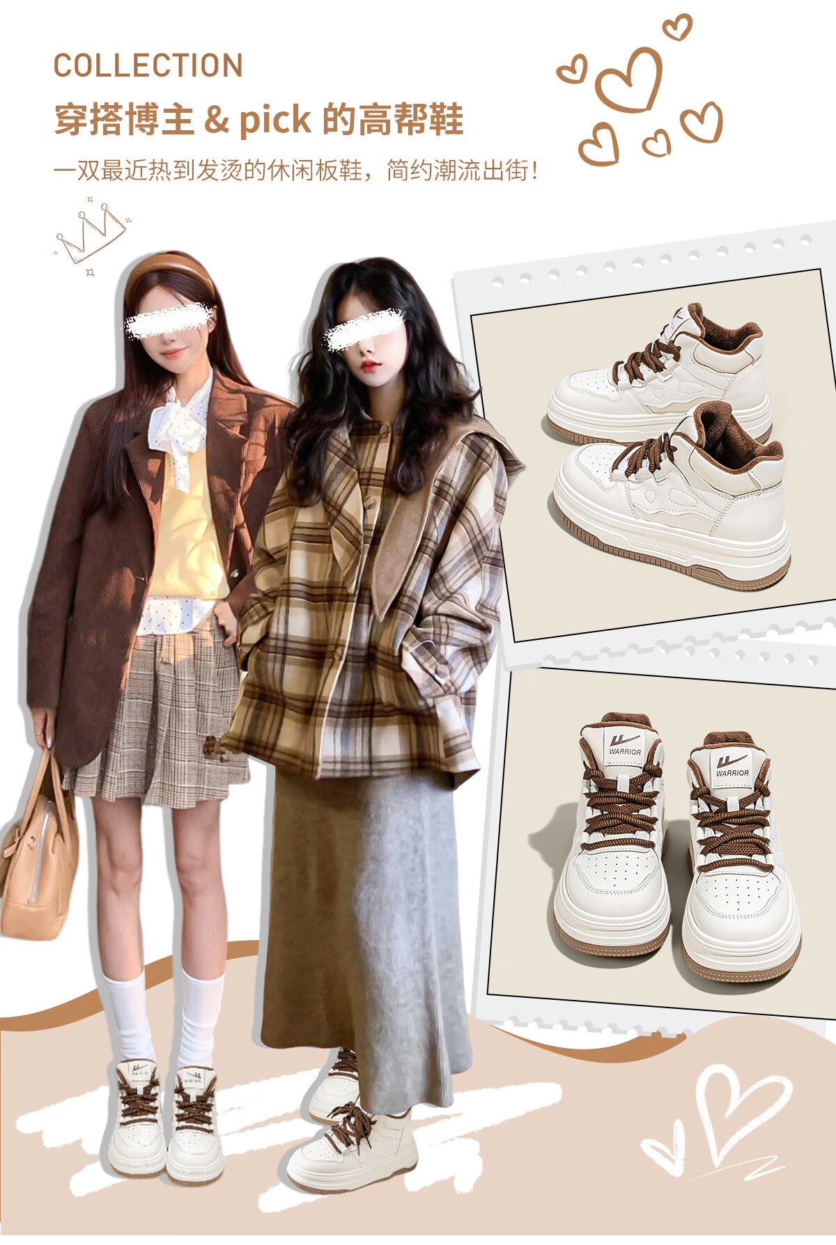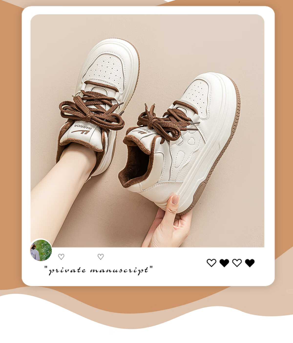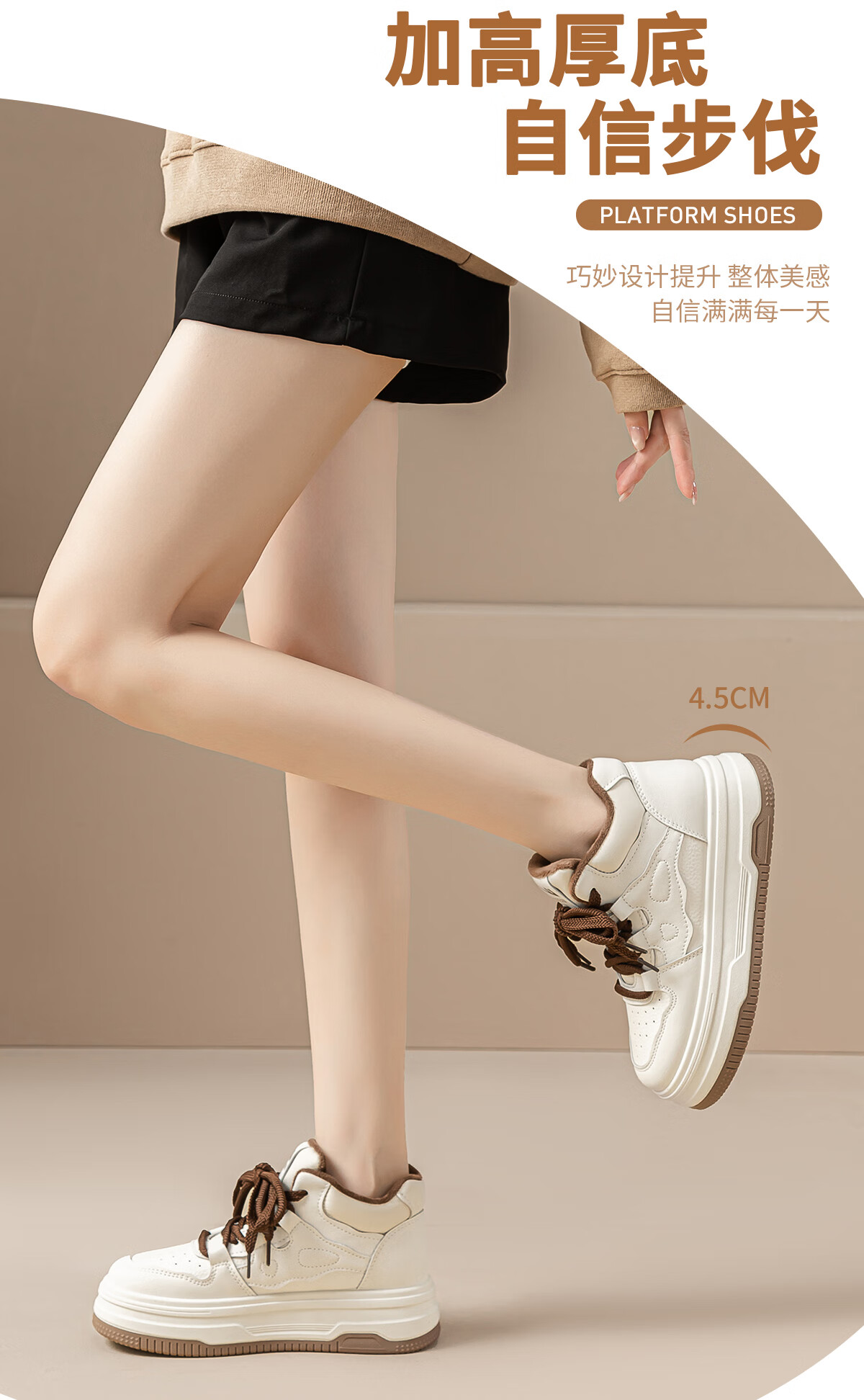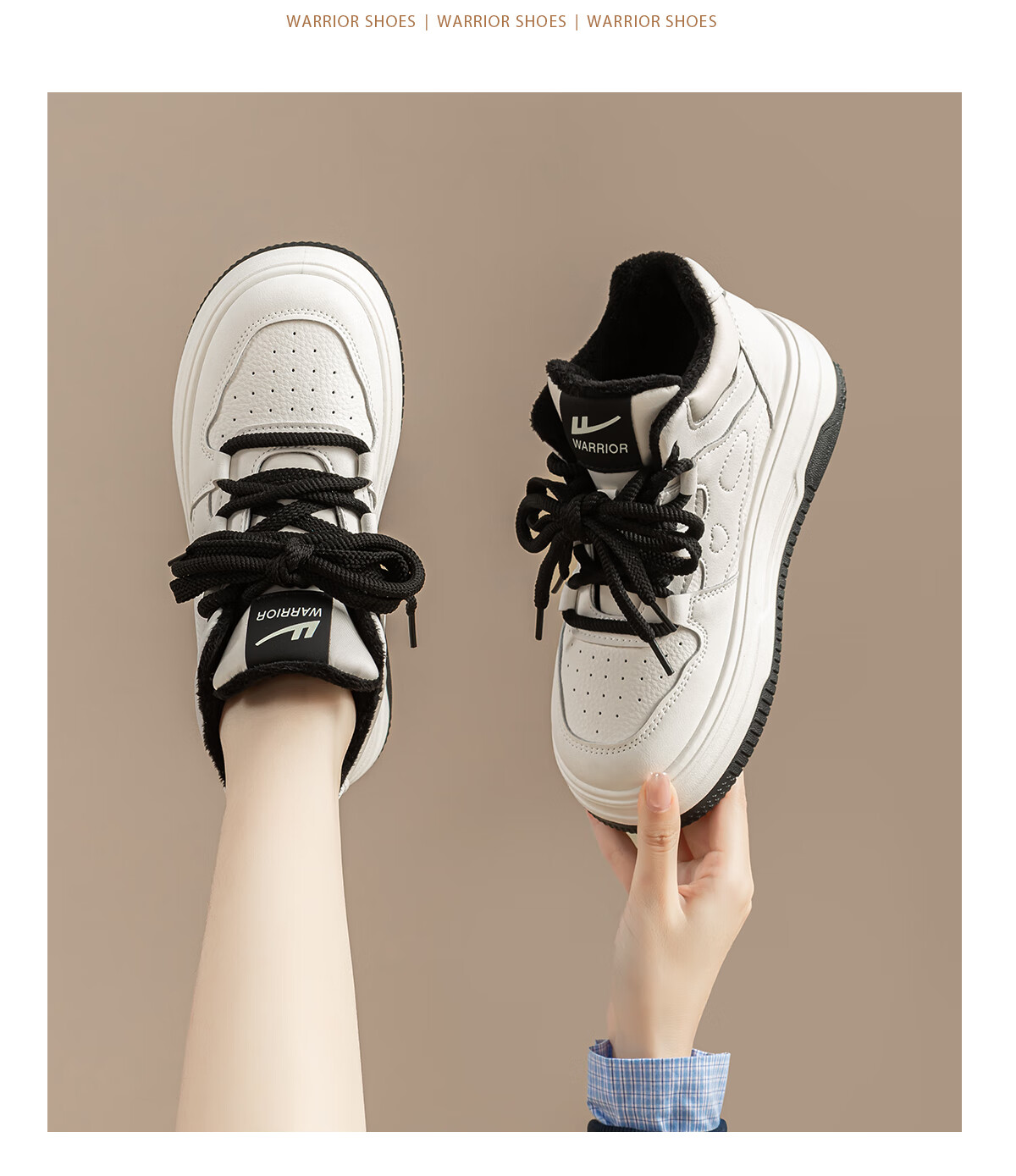 回力厚底高帮板鞋2025冬季女鞋新款加绒加厚保暖舒适百搭休闲增高棉鞋 白棕 35