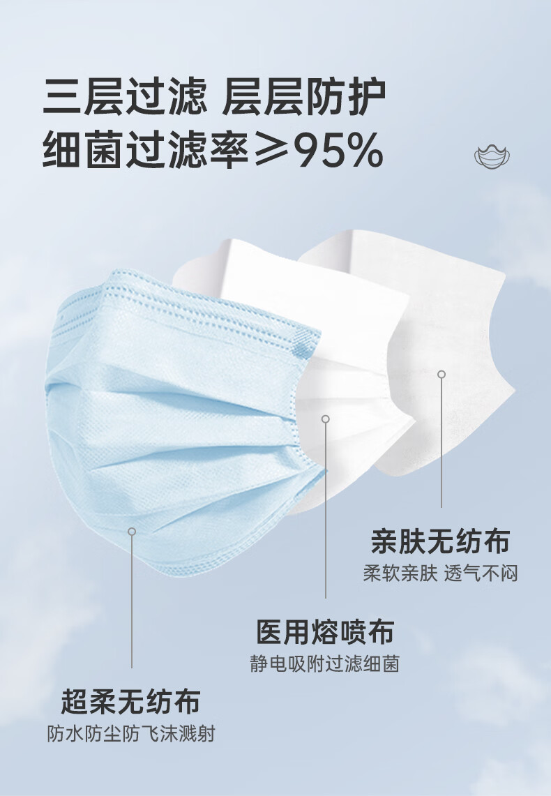 掌护医用外科口罩医用防尘一次性口罩独立包装潮流高颜值灭菌级口罩 蓝色100只【独立包装】