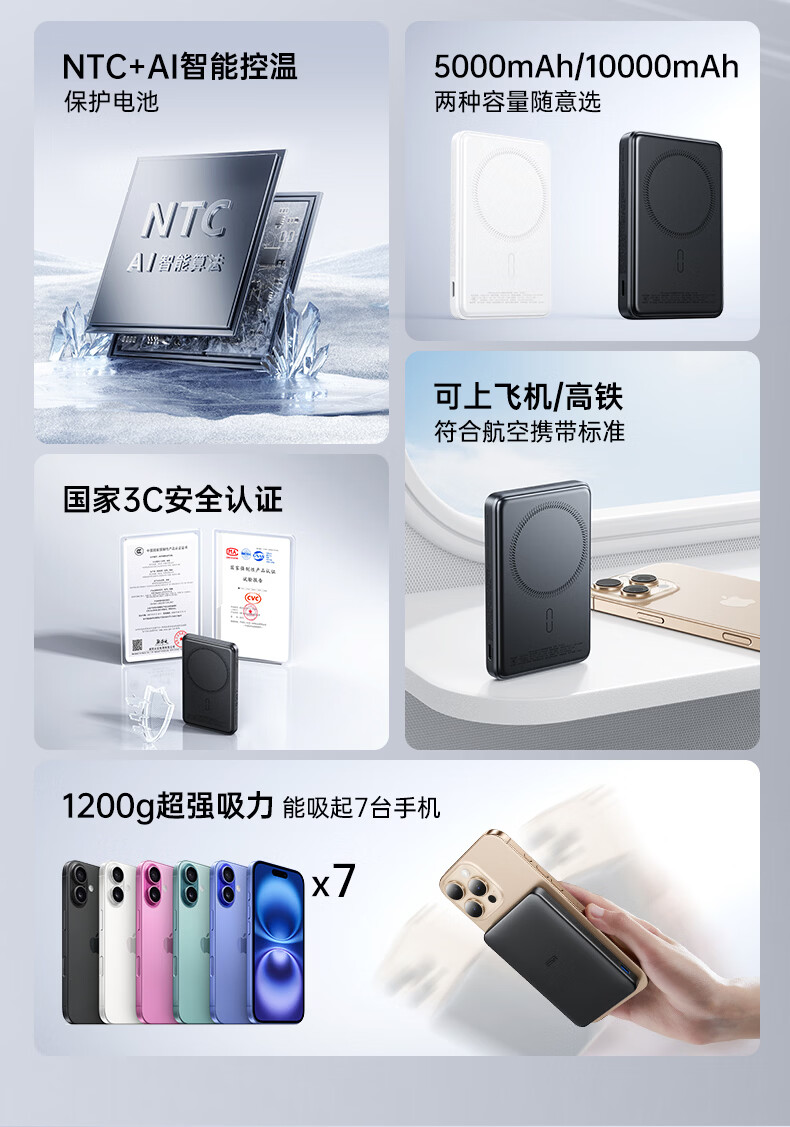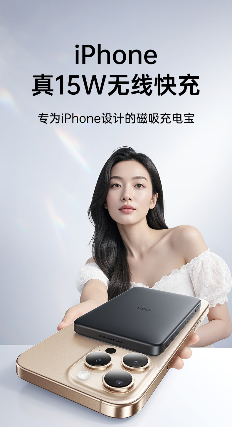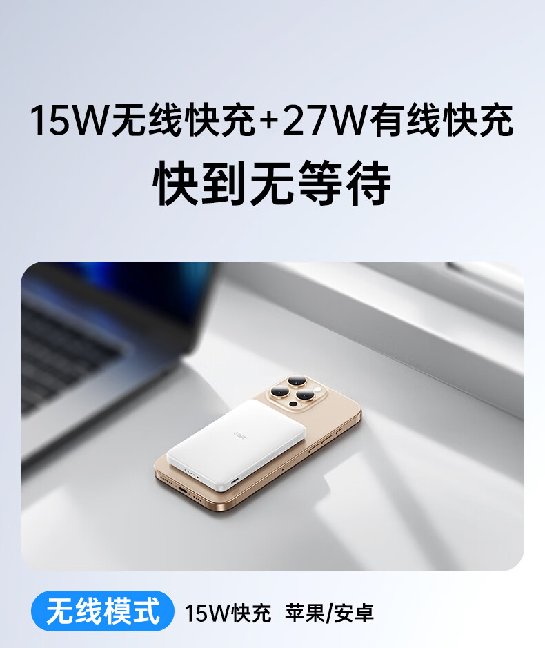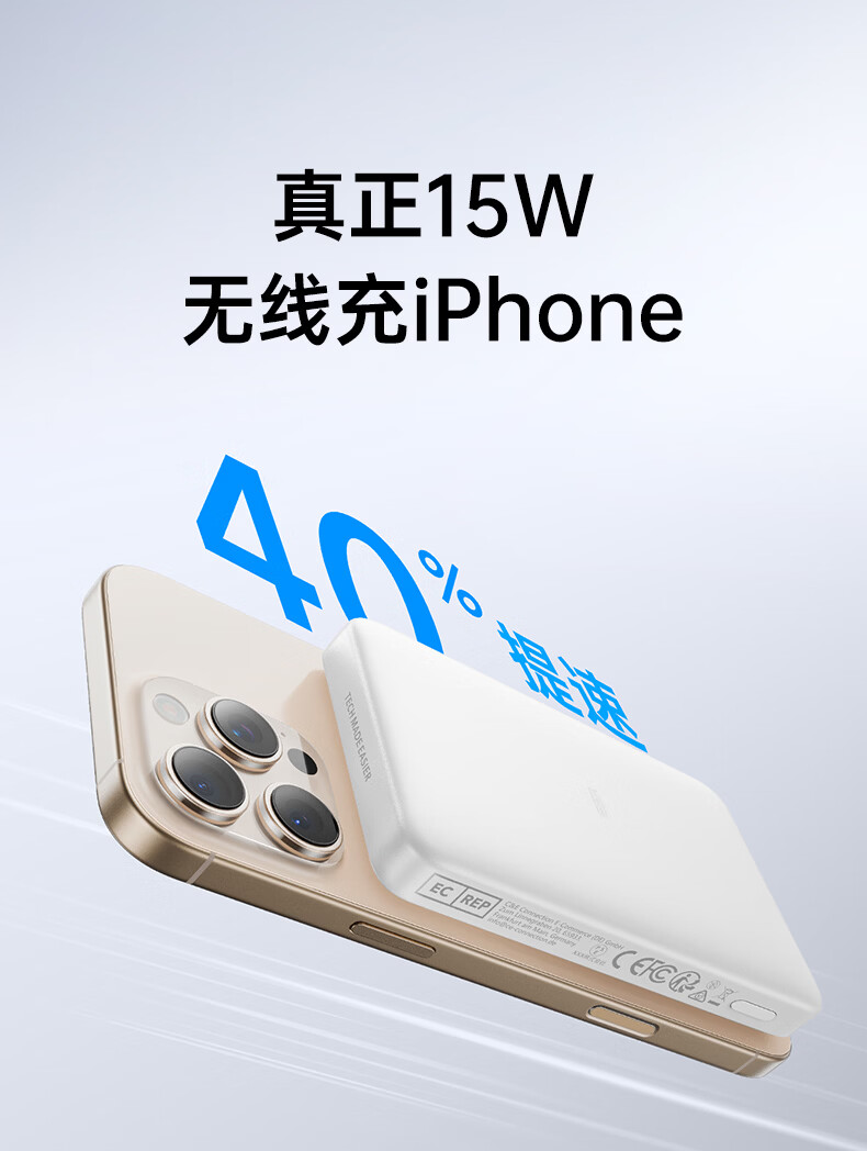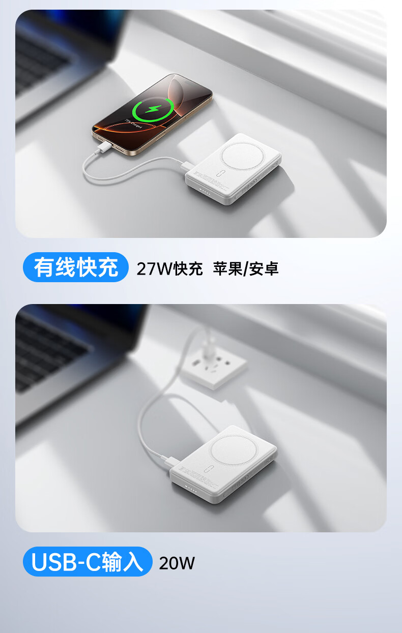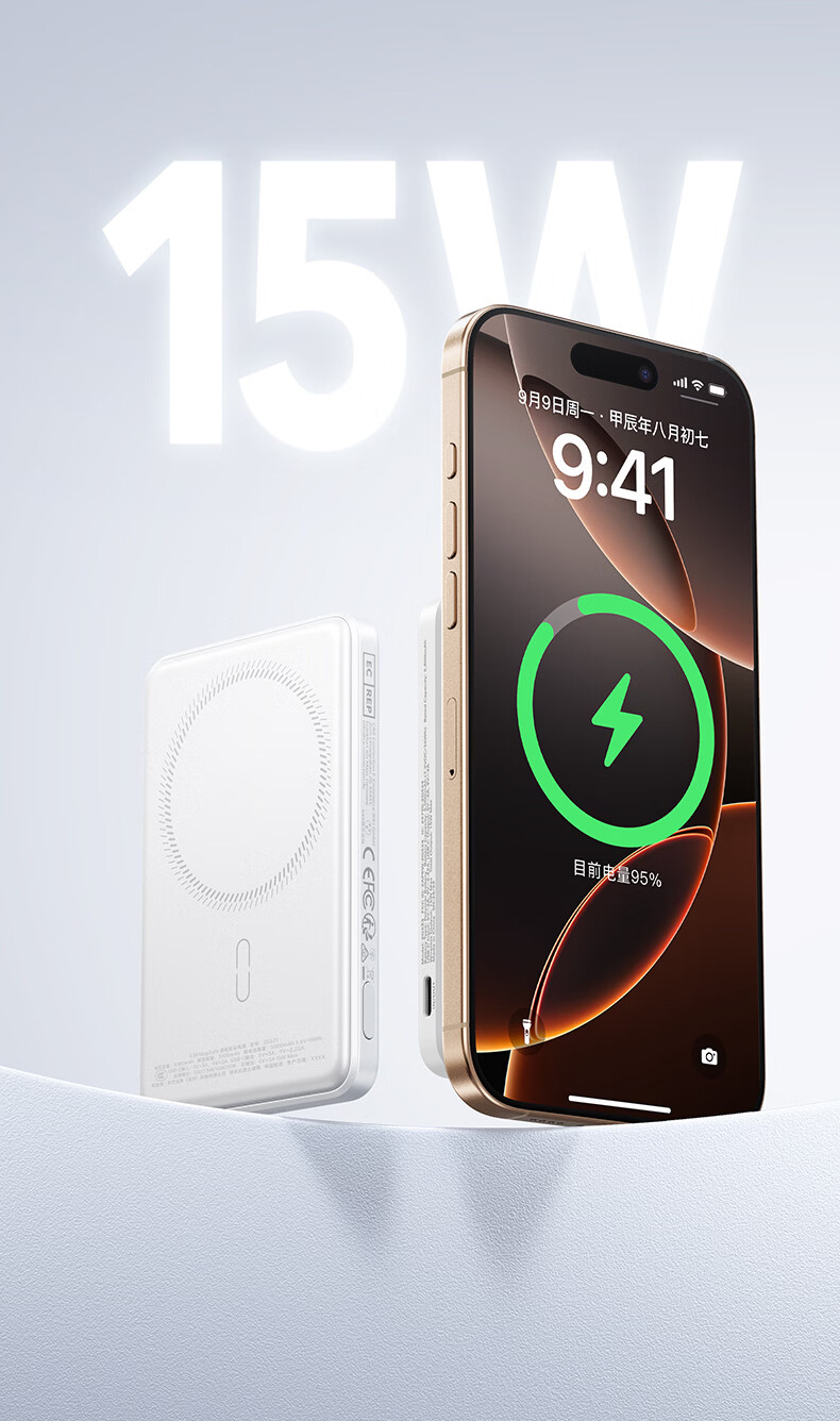亿色【苹果15W快充丨3C认证】磁吸充电宝MagSafe15W无线快充10000/5000毫安可上飞机移动电源适用苹果 典雅白丨1万毫安【3C认证】 支持苹果15W无线快充