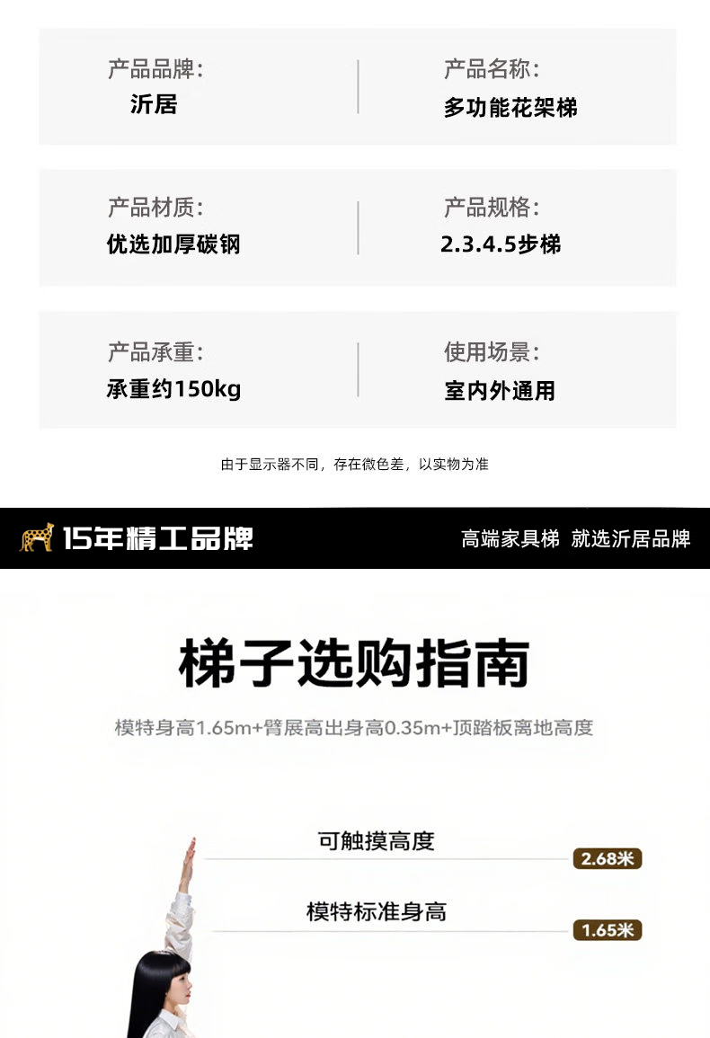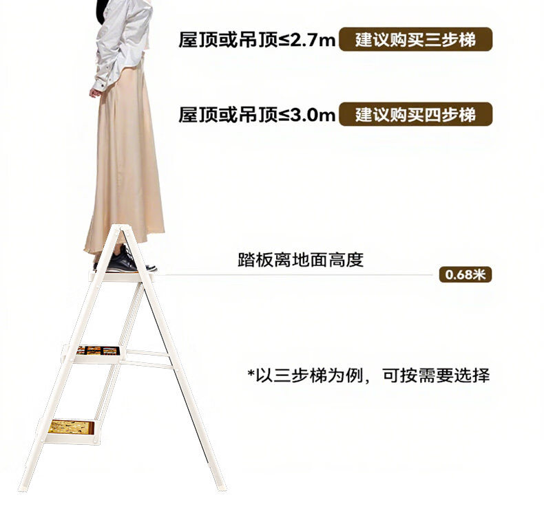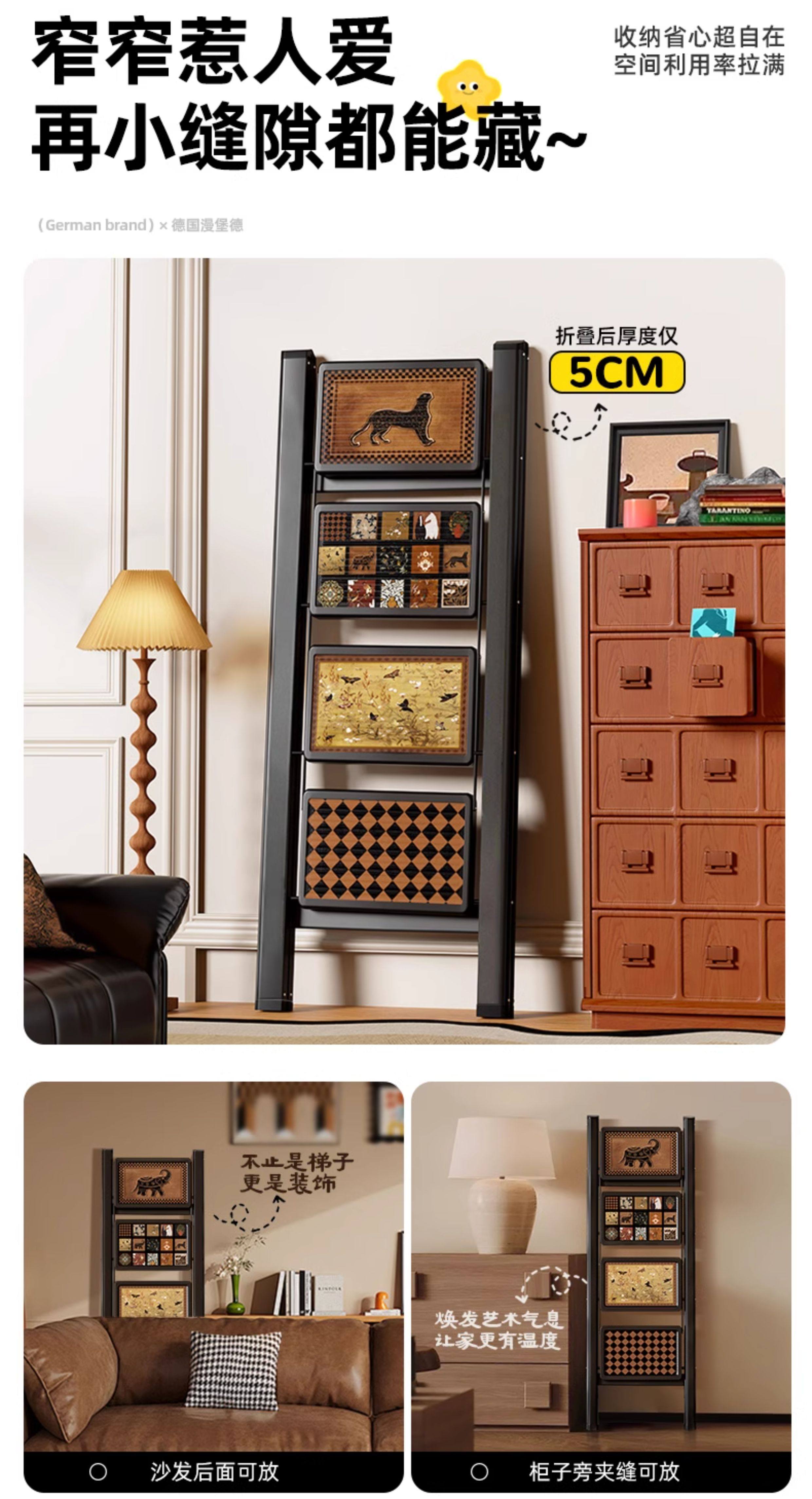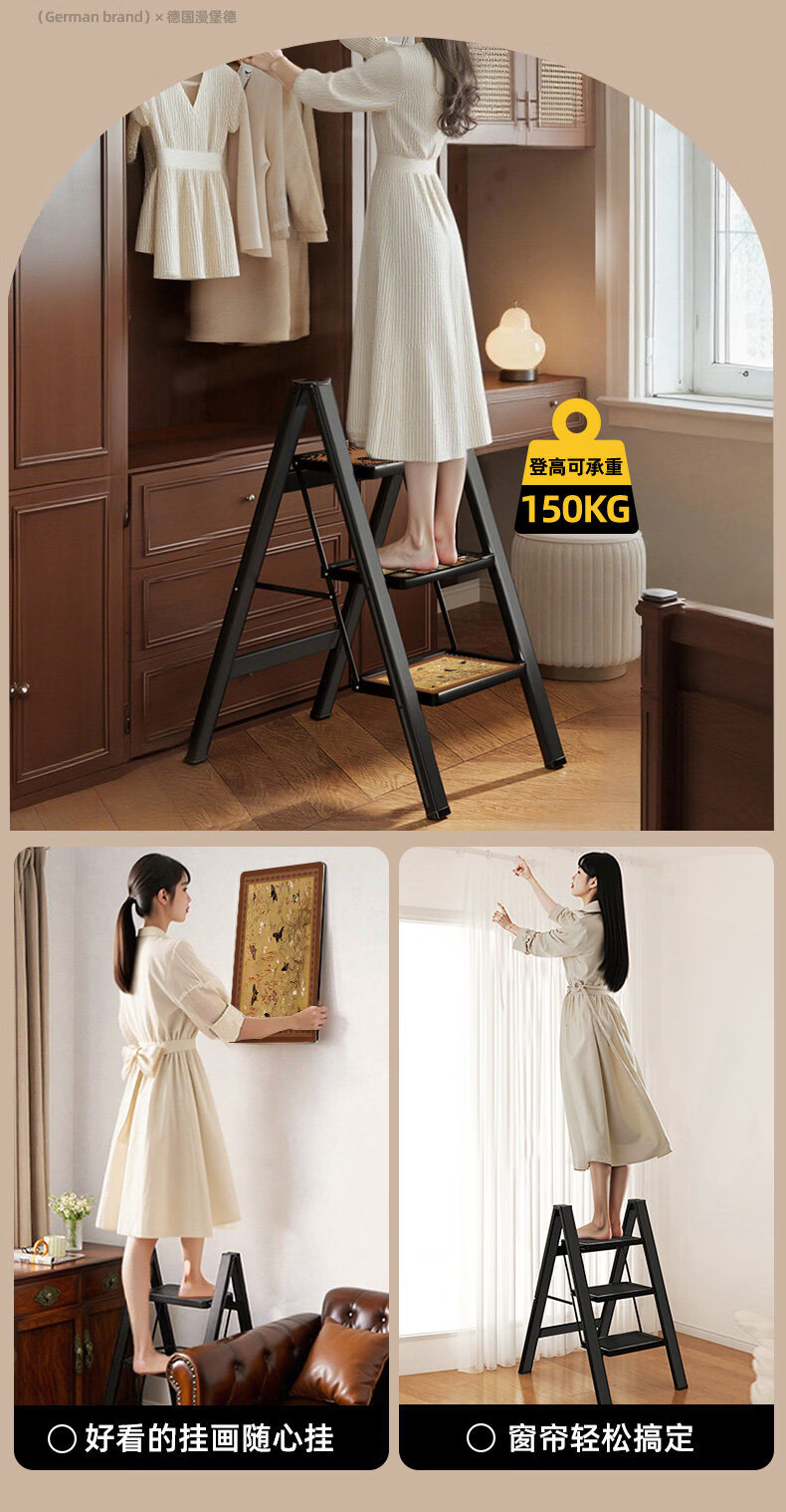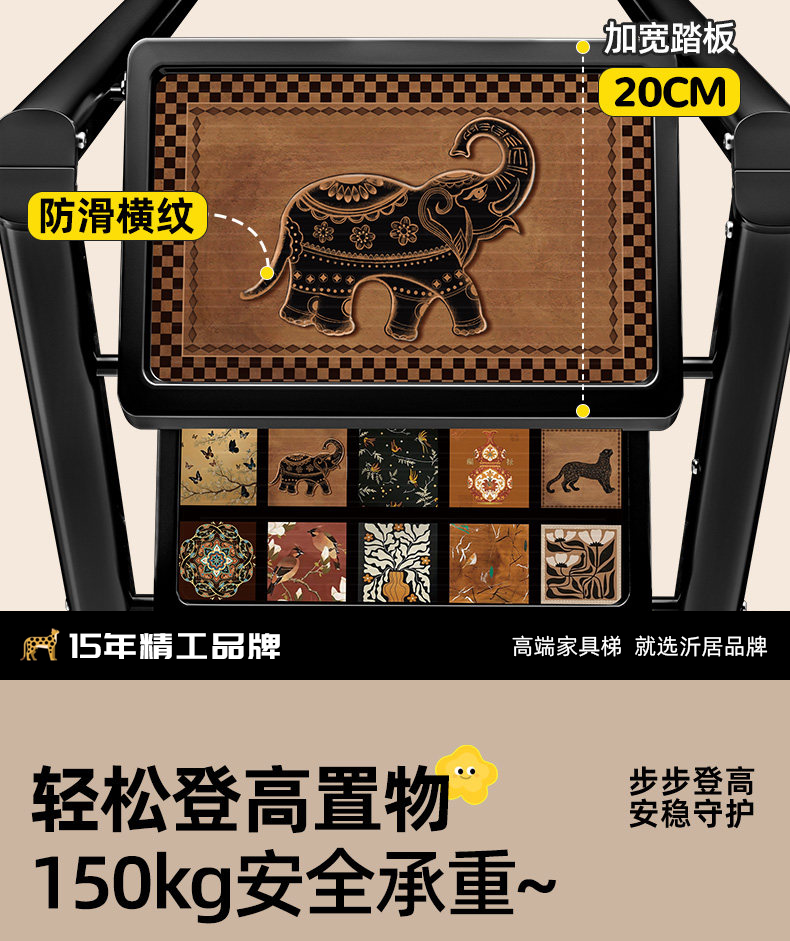 沂居家用折叠中古风梯子复古小梯子室内便携人字梯防滑加厚 复古氛围黑色二步梯【微喷印花耐磨不褪色】登高装饰