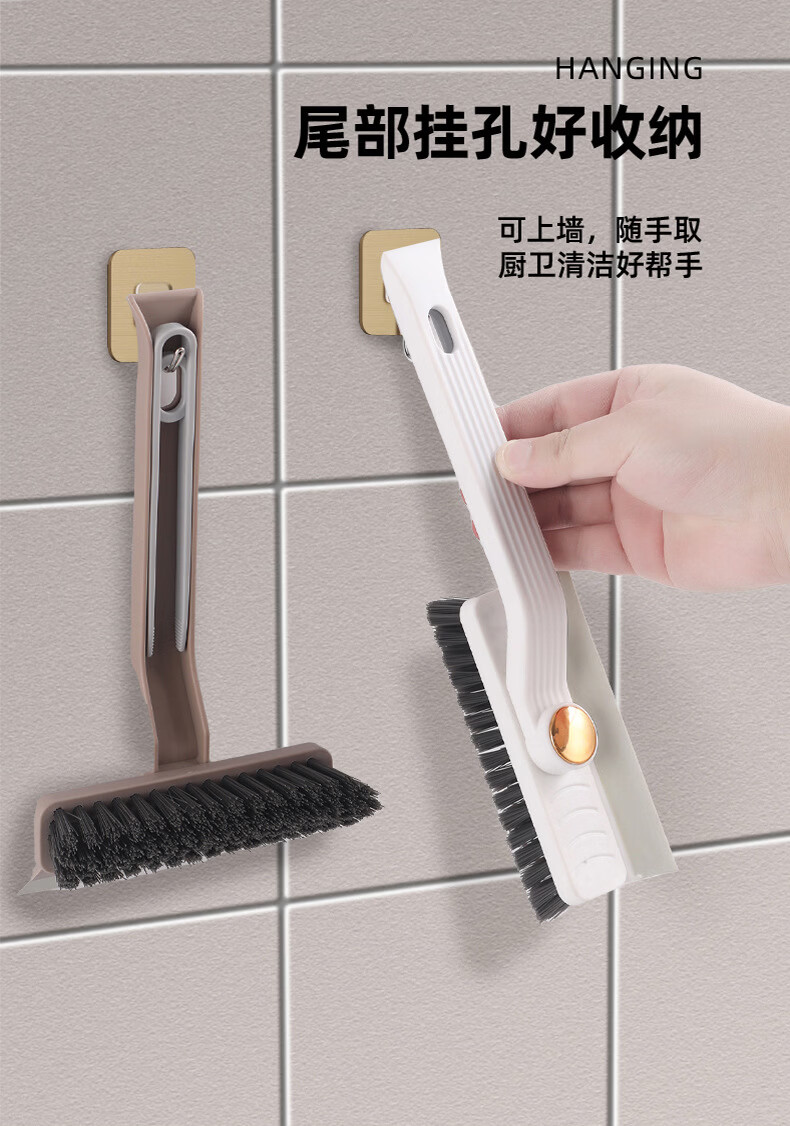 Jepoo卫生间V型地板刷洗地刷浴室刮板刷地缝刷瓷砖长柄硬毛厕所清洁刷 两个装颜色随机