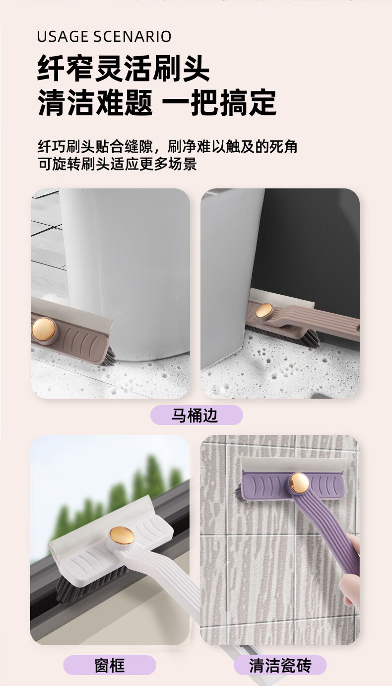 【优选直发】多功能清洁刷360度旋转缝隙刷瓷砖死角清洁刷地缝刷 紫色升级款