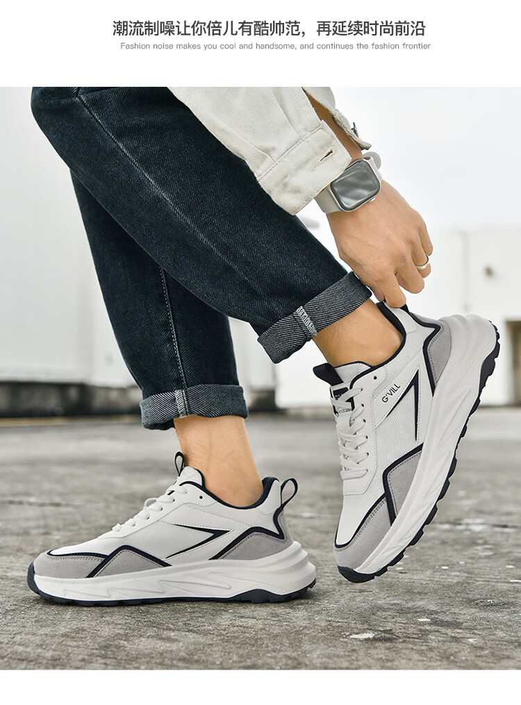 贵之步秋冬季男鞋新款软底防滑透气跑步鞋舒适休闲鞋厚底增高缓震运动鞋 浅绿 G016 43 (运动鞋码)