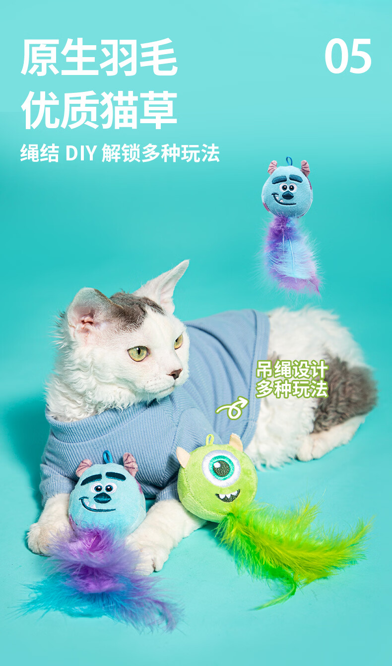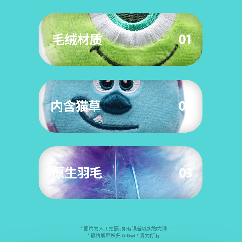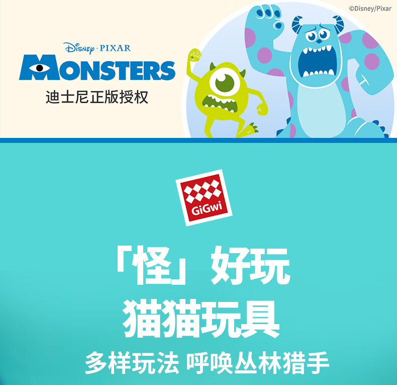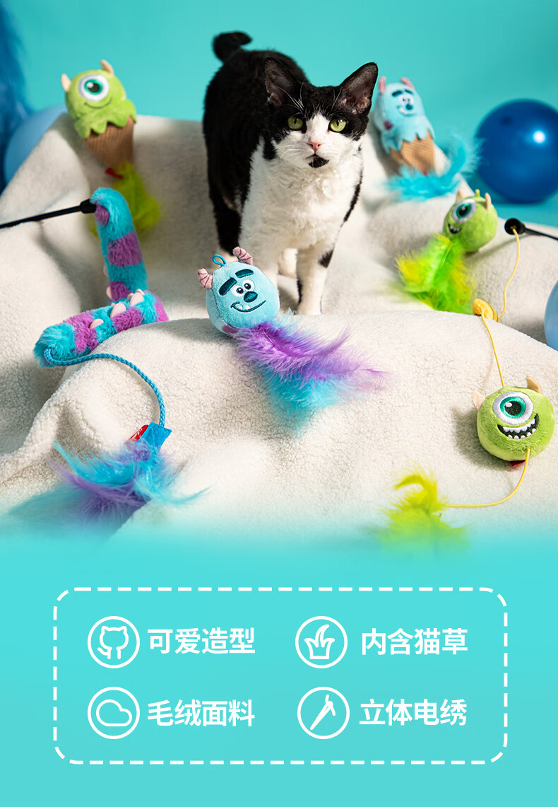 贵为(GiGwi)迪士尼怪兽大学猫猫玩具磨牙棒猫咪玩具自嗨解闷逗猫棒长杆发声 苏利文长尾逗猫棒