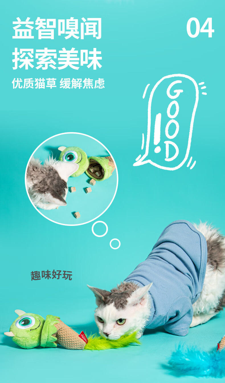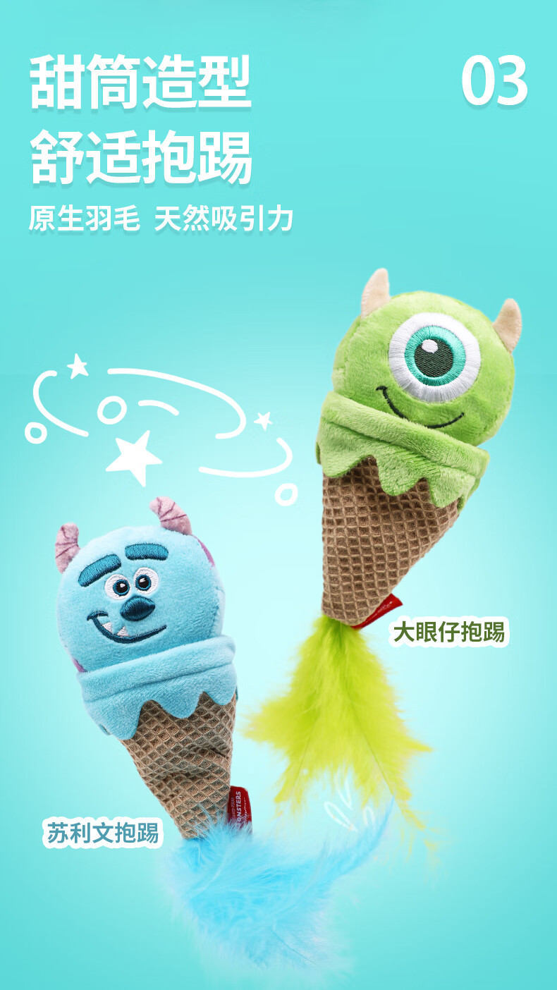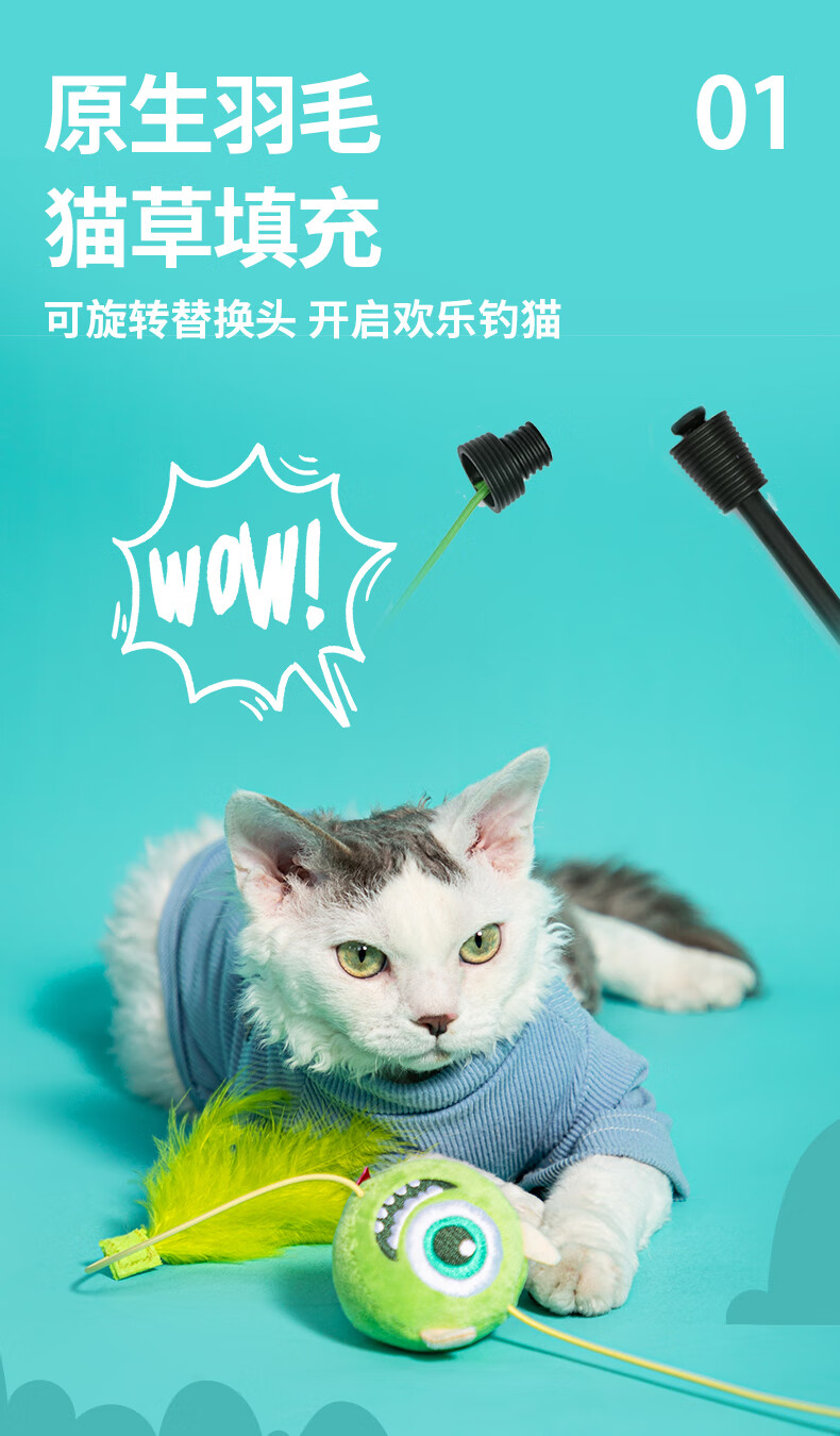 贵为(GiGwi)迪士尼怪兽大学猫猫玩具磨牙棒猫咪玩具自嗨解闷逗猫棒长杆发声 苏利文长尾逗猫棒