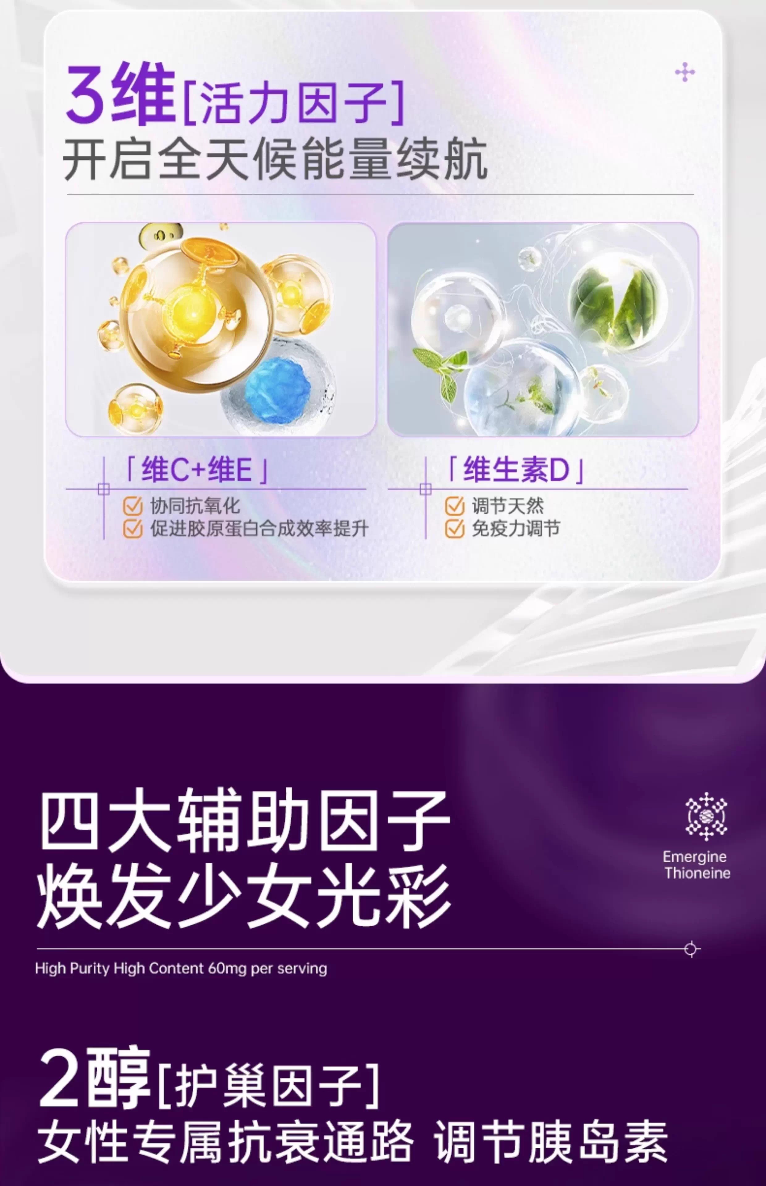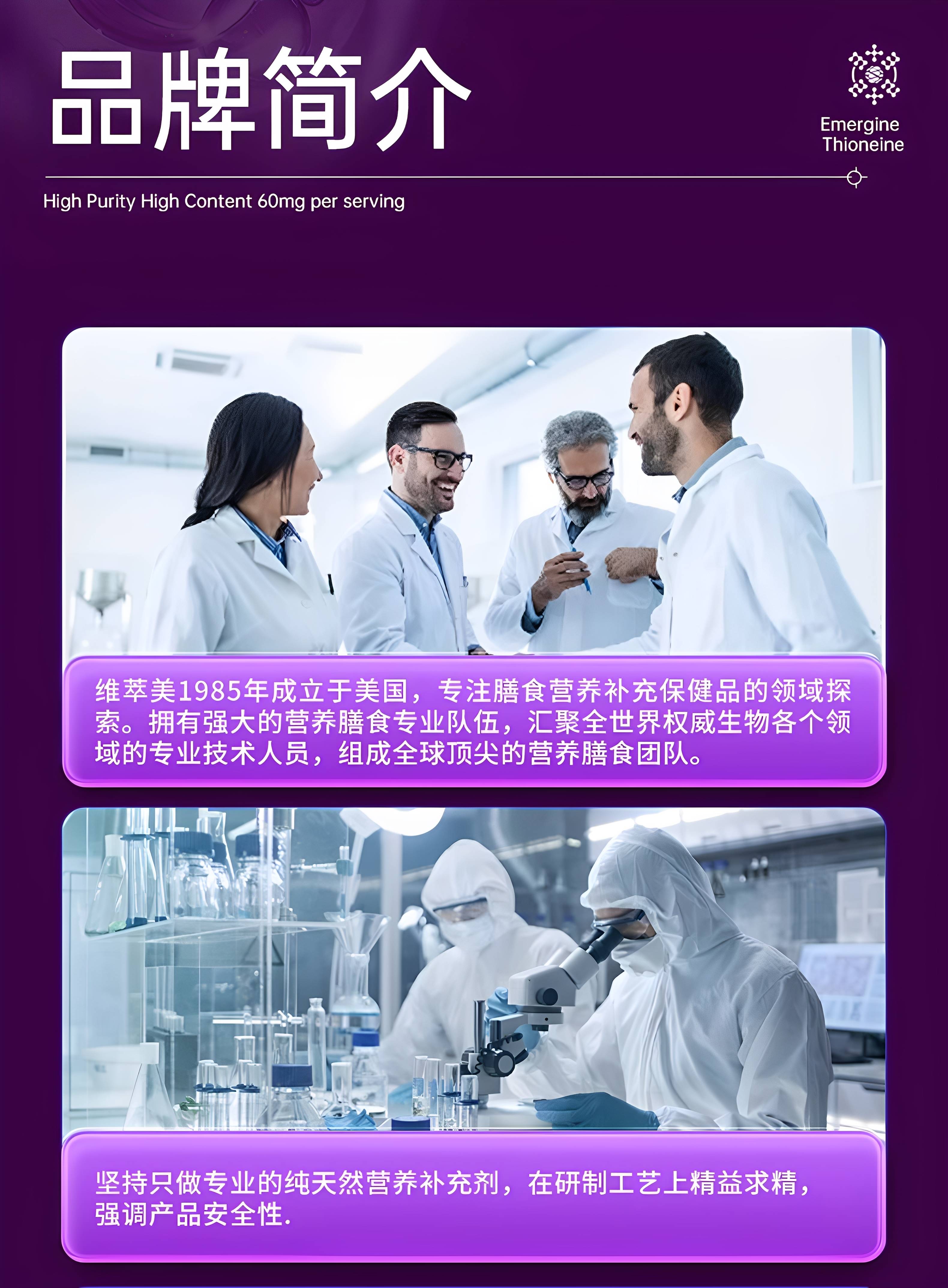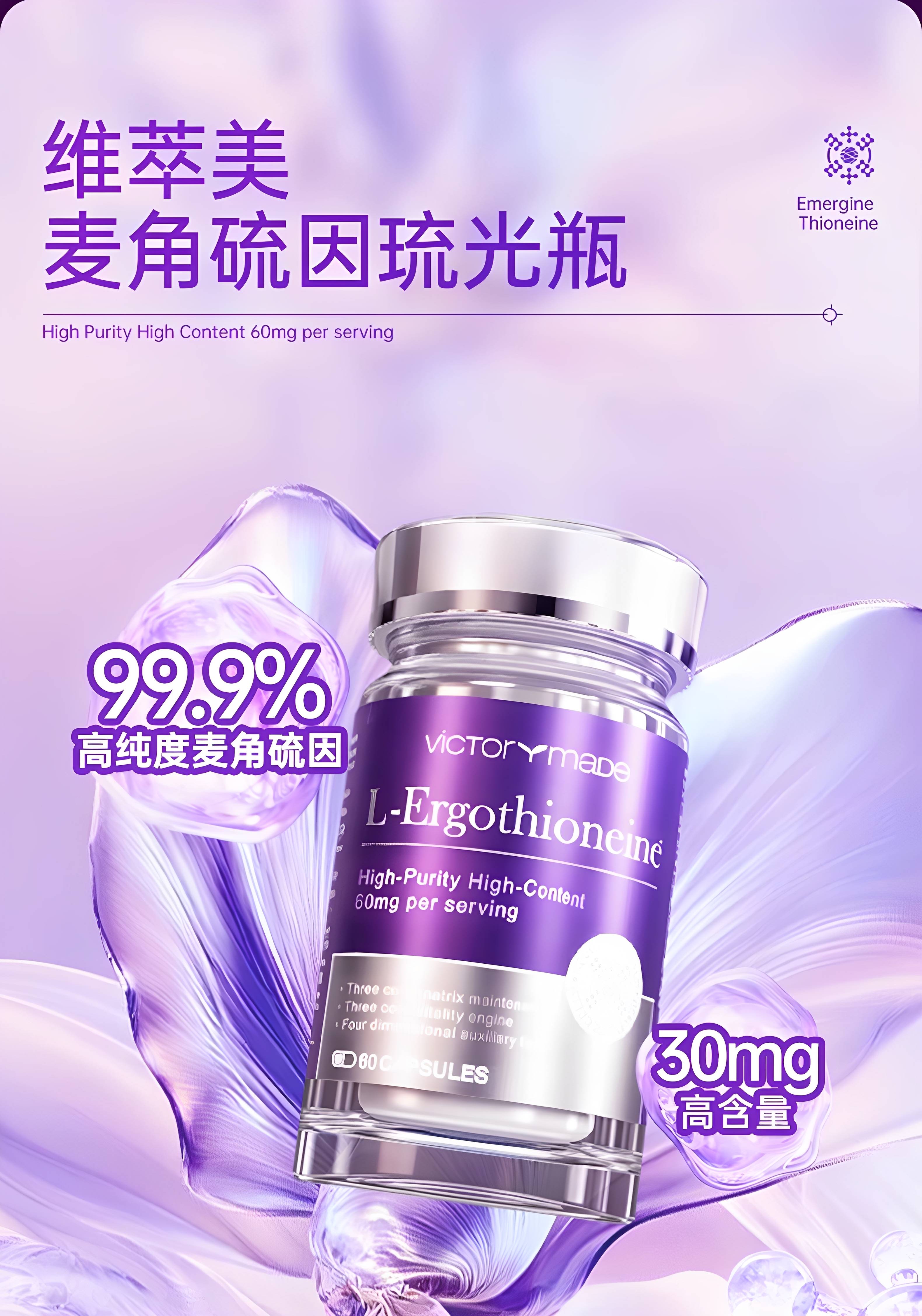 维萃美麦角硫因胶囊重塑年轻美国进口PQQ精华+亚精胺官方 60粒*1瓶