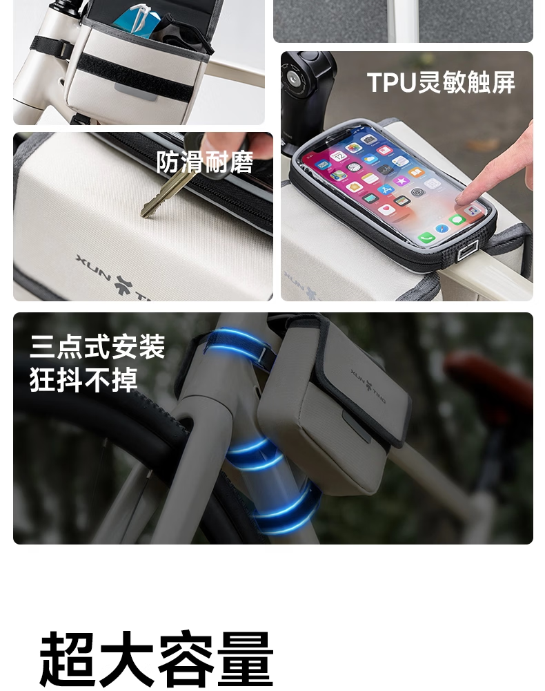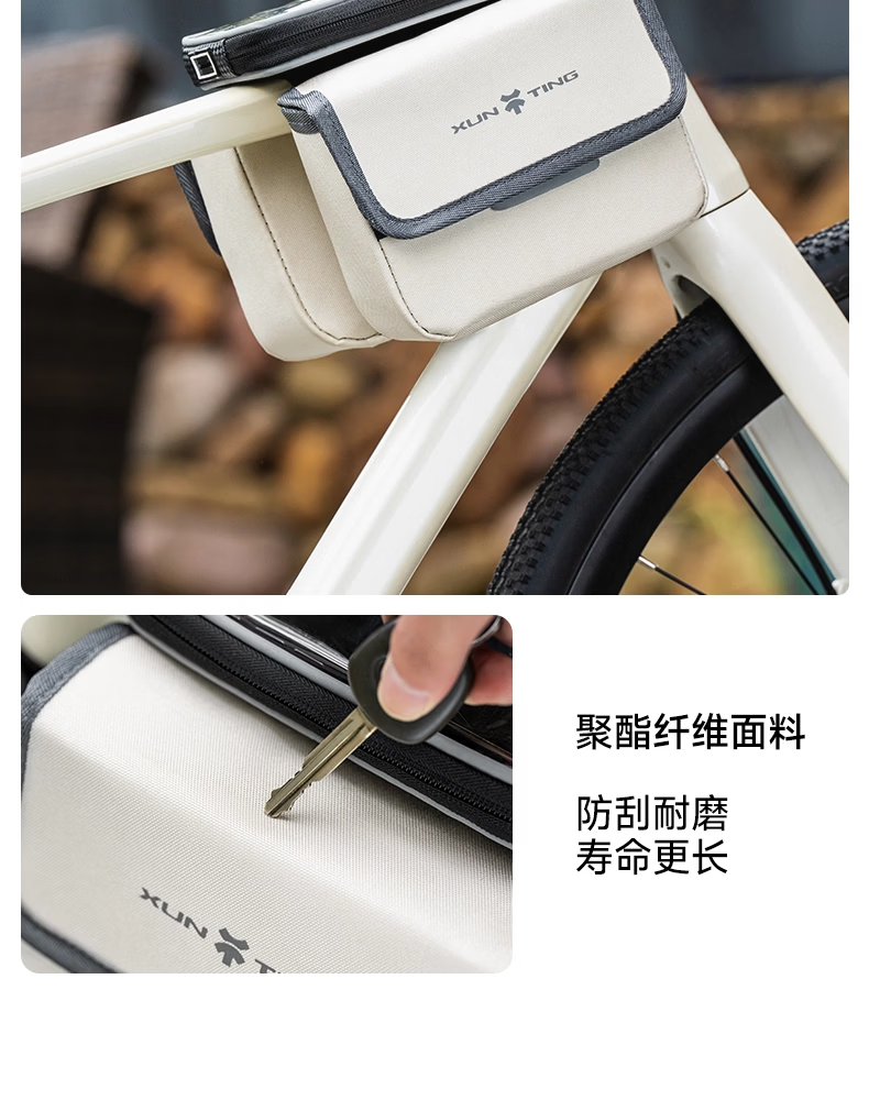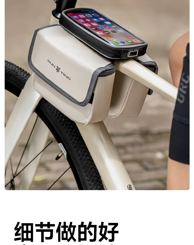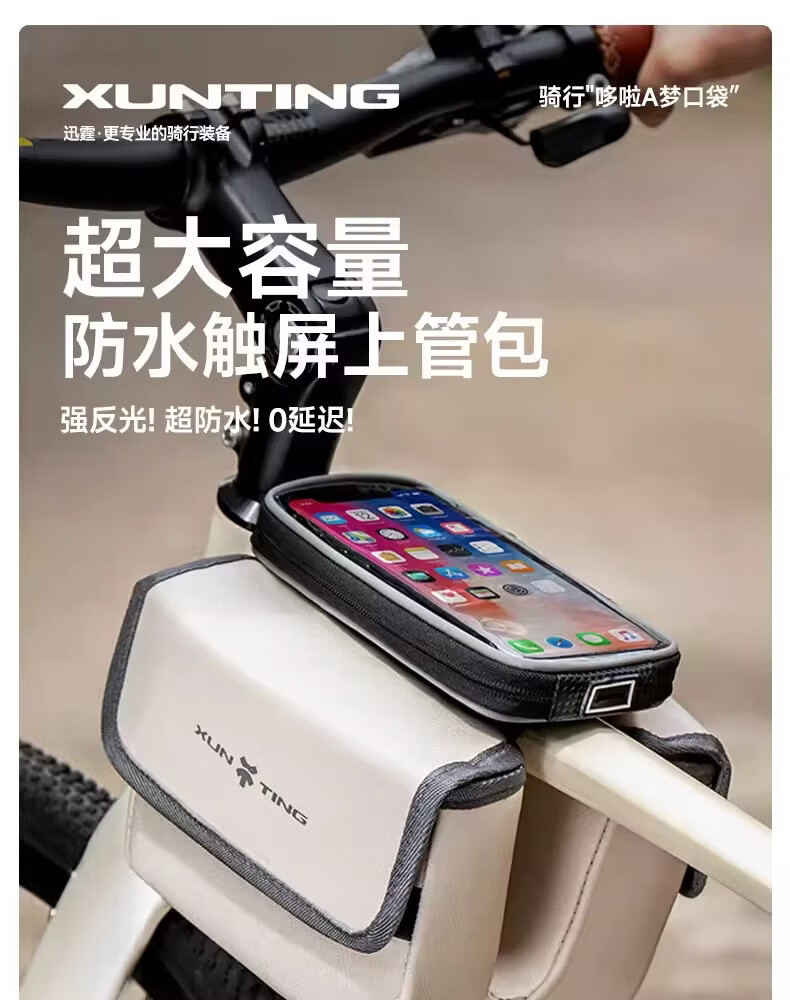 迅霆自行车包前梁包山地公路车单车上管包挂包防水收纳骑行装备配件 灵敏触屏【升级大容量-赠防雨罩】可拆卸式/黑色
