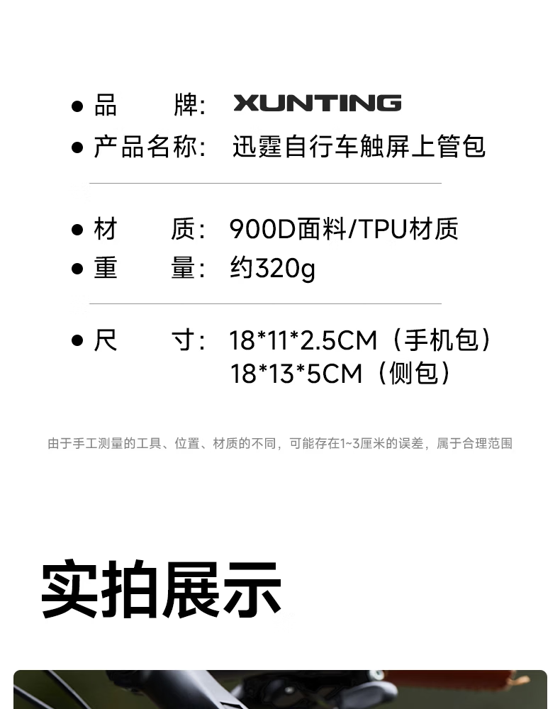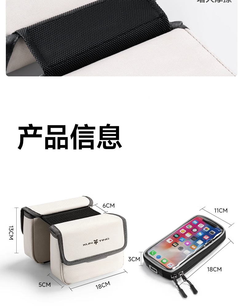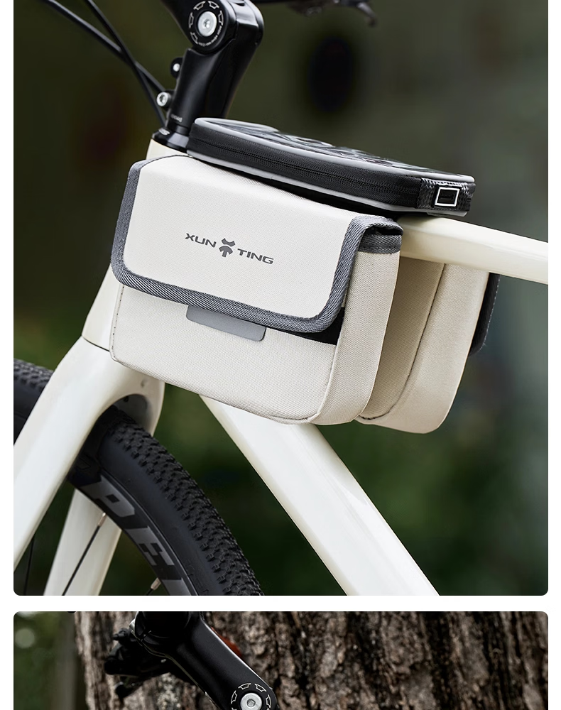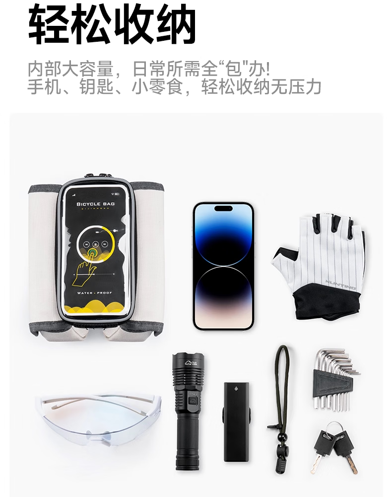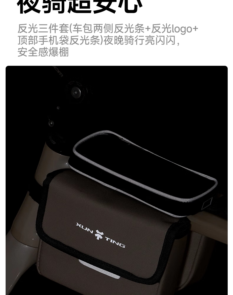 迅霆自行车包前梁包山地公路车单车上管包挂包防水收纳骑行装备配件 灵敏触屏【升级大容量-赠防雨罩】可拆卸式/黑色