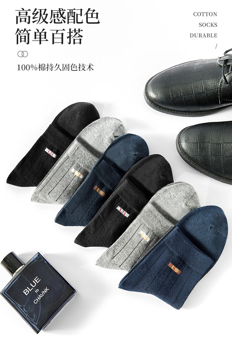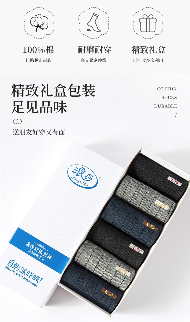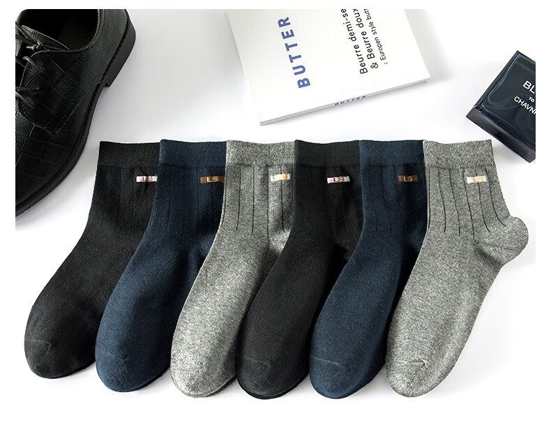 浪莎(LangSha)袜子男纯棉男袜秋冬全棉舒适吸汗运动短袜男士短筒休闲棉袜6双装 2黑2蓝2灰(组合一) 6双 均码