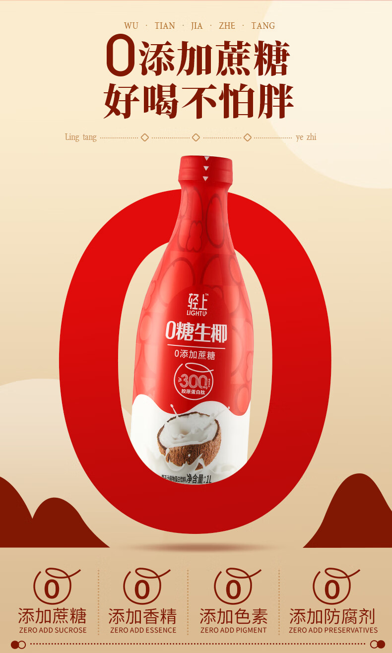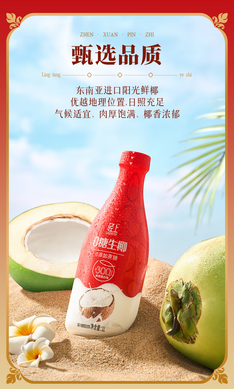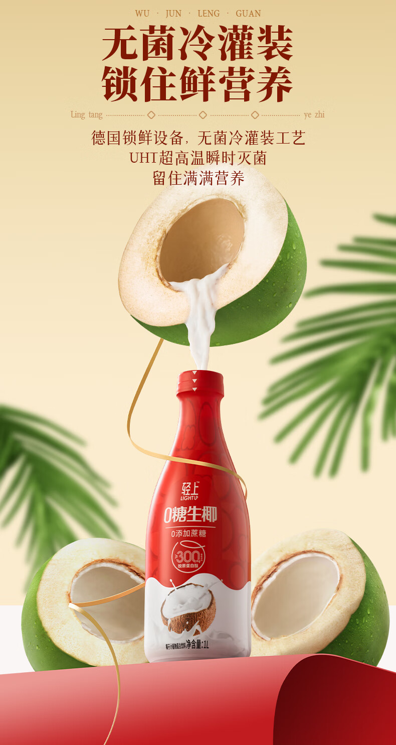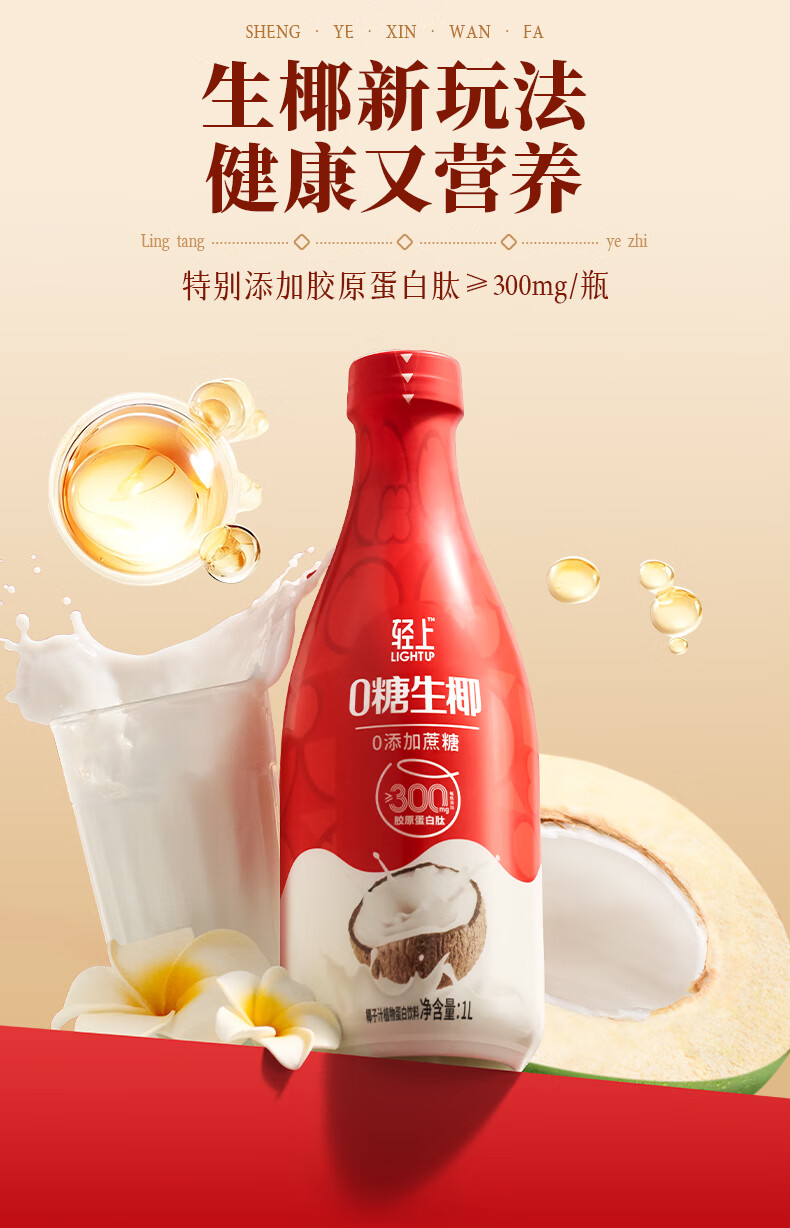 轻上椰汁0糖生椰1L大瓶东南亚进口椰子汁饮料整箱 铁皮石斛水400ml*6瓶