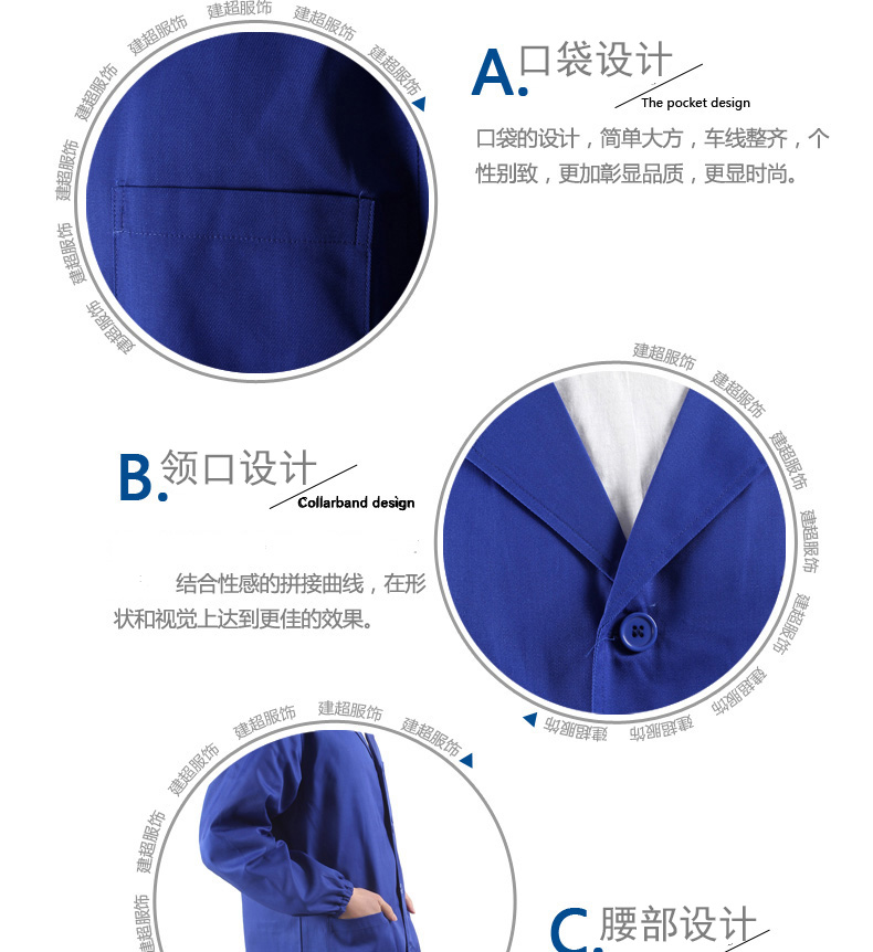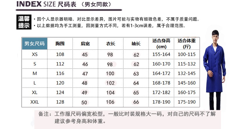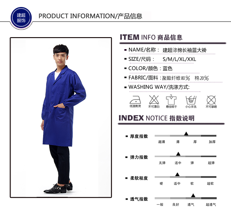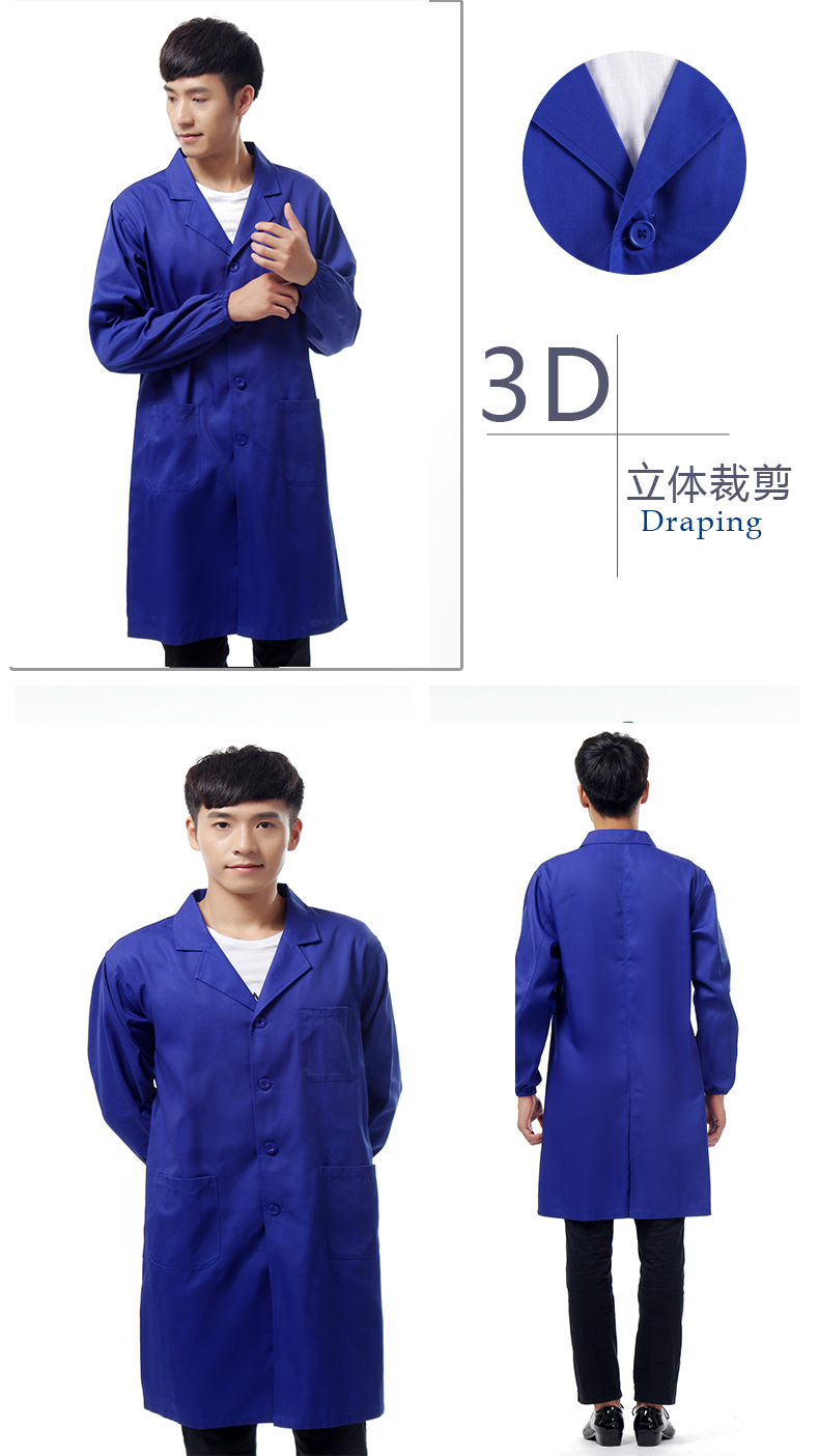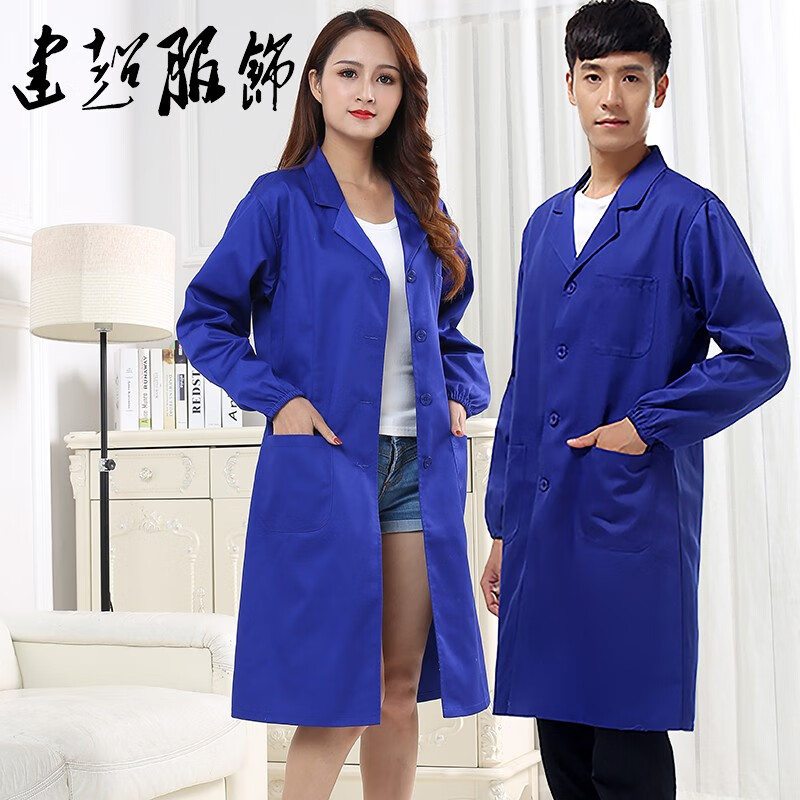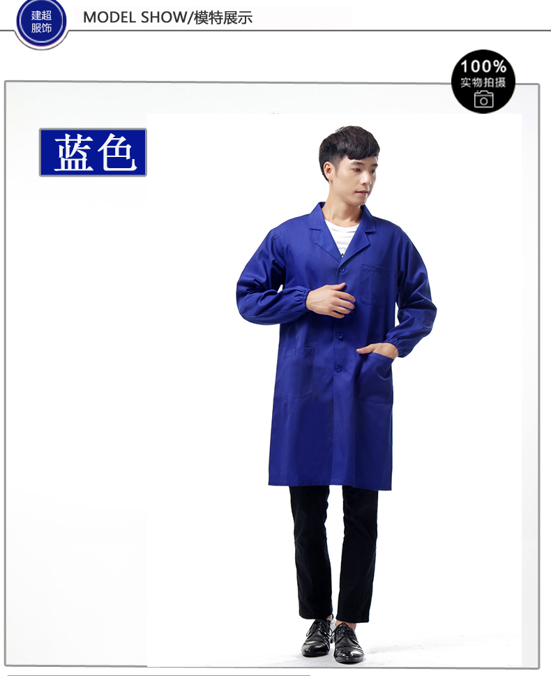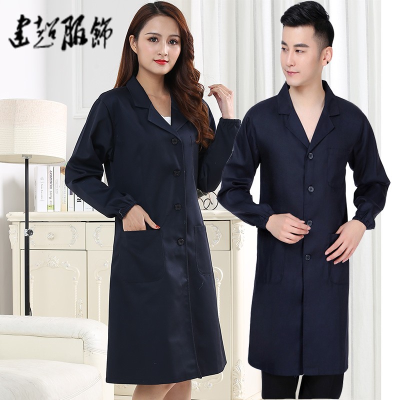 建超服饰春秋款蓝大褂工作服防尘服蓝色劳保大褂实验服搬运工罩衣大褂长款 黑藏青大褂工作服男款 M