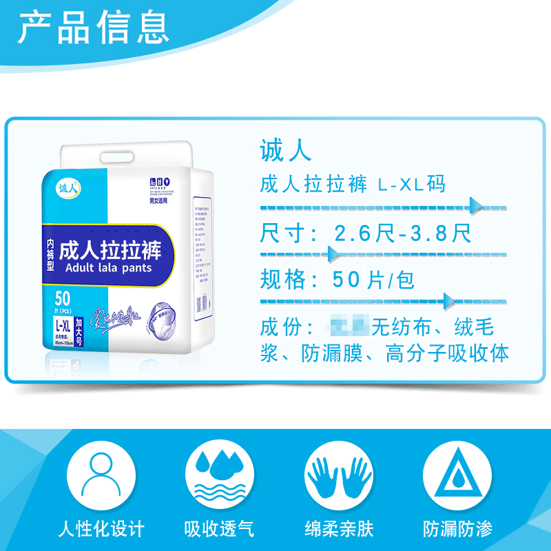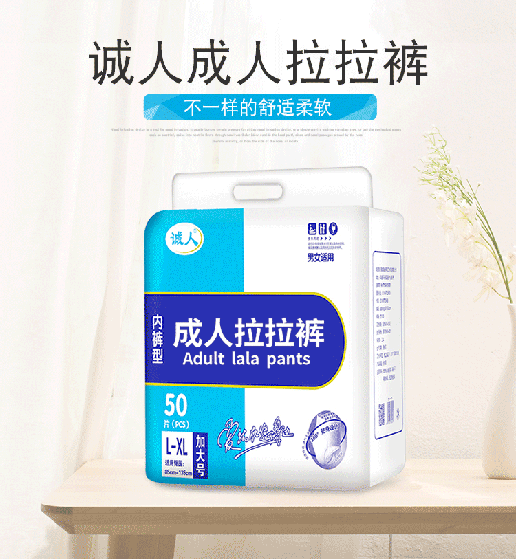 诚人成人拉拉裤内裤式老年尿不湿50片装特大号XL老年人尿布 诚人内裤式拉拉裤XL号50片