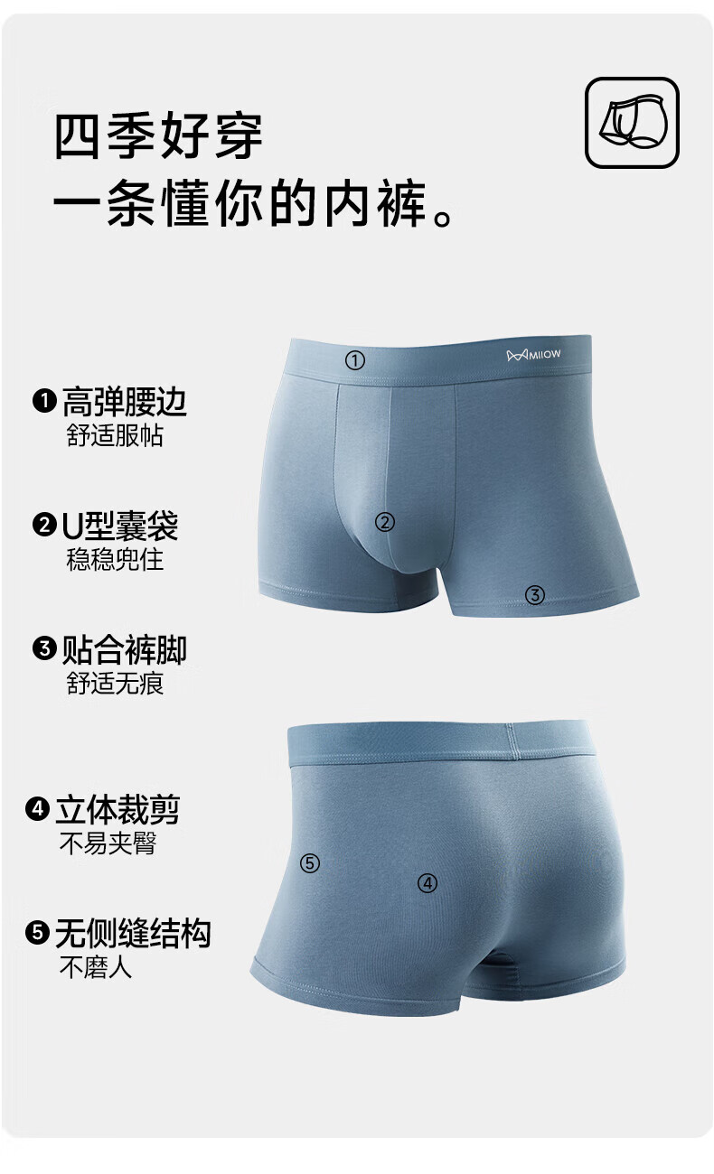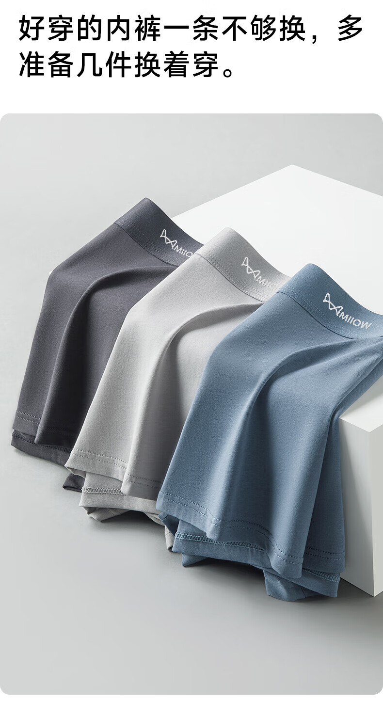 猫人(MiiOW)纯棉内裤男士平角裤衩无痕男生抗菌透气四角裤夏季薄款青少年短裤 黑色+深灰+浅灰- 3条 L 【建议95-110斤】