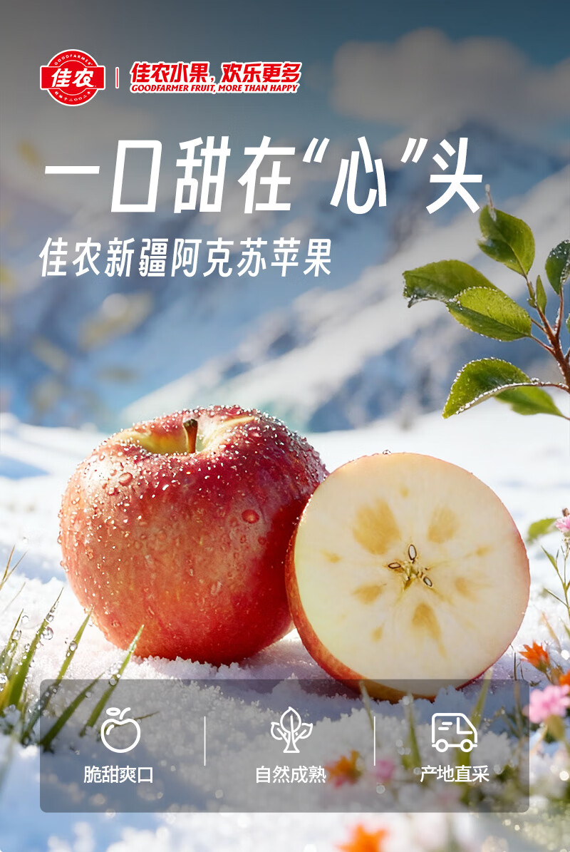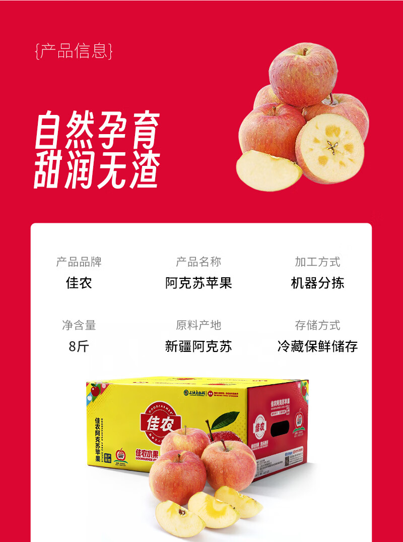 佳农新疆阿克苏冰糖心苹果8斤 果径80mm+ 25年新果 水果礼盒