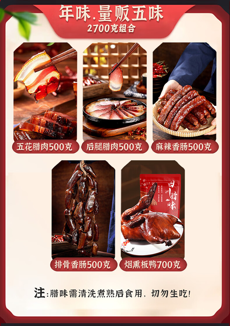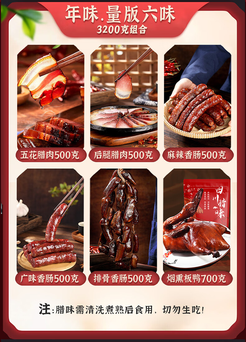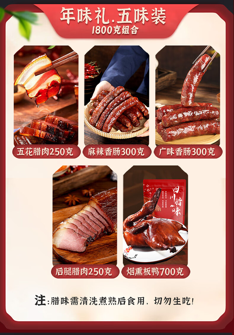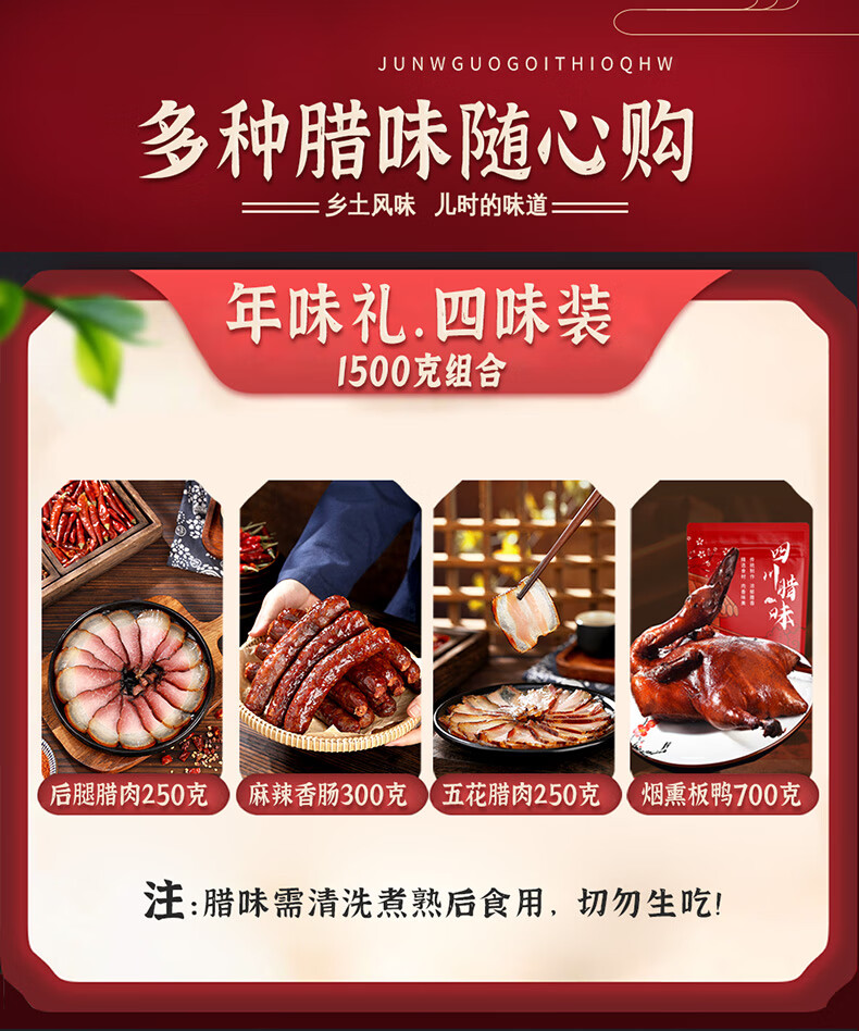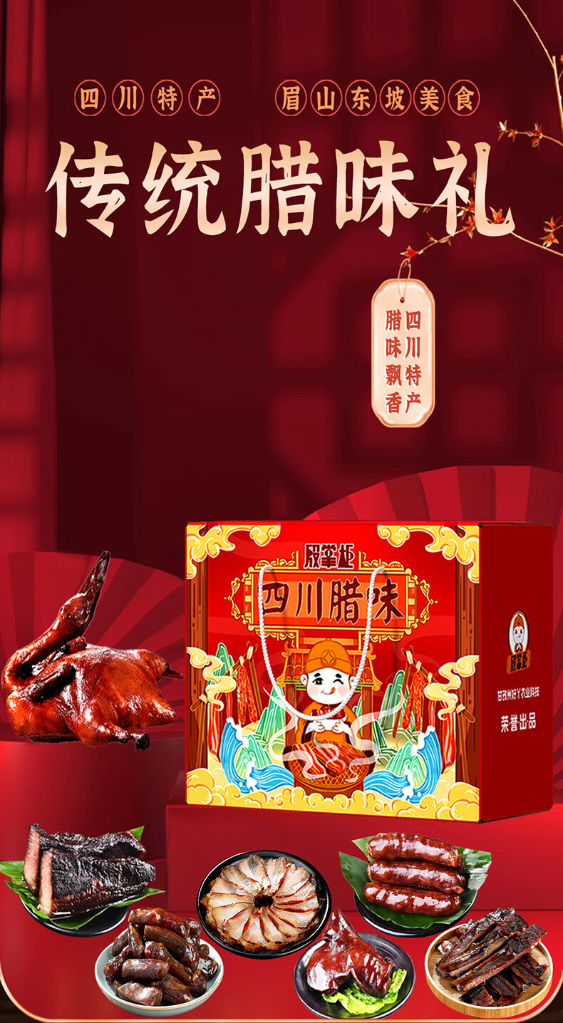 殷掌柜四川腊肉礼盒年货腊味农家土猪腊肉香肠腊味大礼包新年礼物送长辈 1500g(净重)四川腊味礼