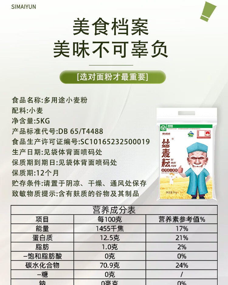 丝麦耘多用途面粉10斤新疆面粉 绿色食品中筋家用面粉