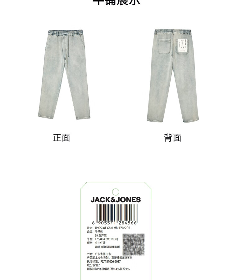 杰克·琼斯(JACK&JONES)男装25年秋冬季牛仔裤男905锥形潮流软糯休闲松紧腰抽绳牛仔裤子 E42中牛仔蓝 常规 31 175 W31/L30