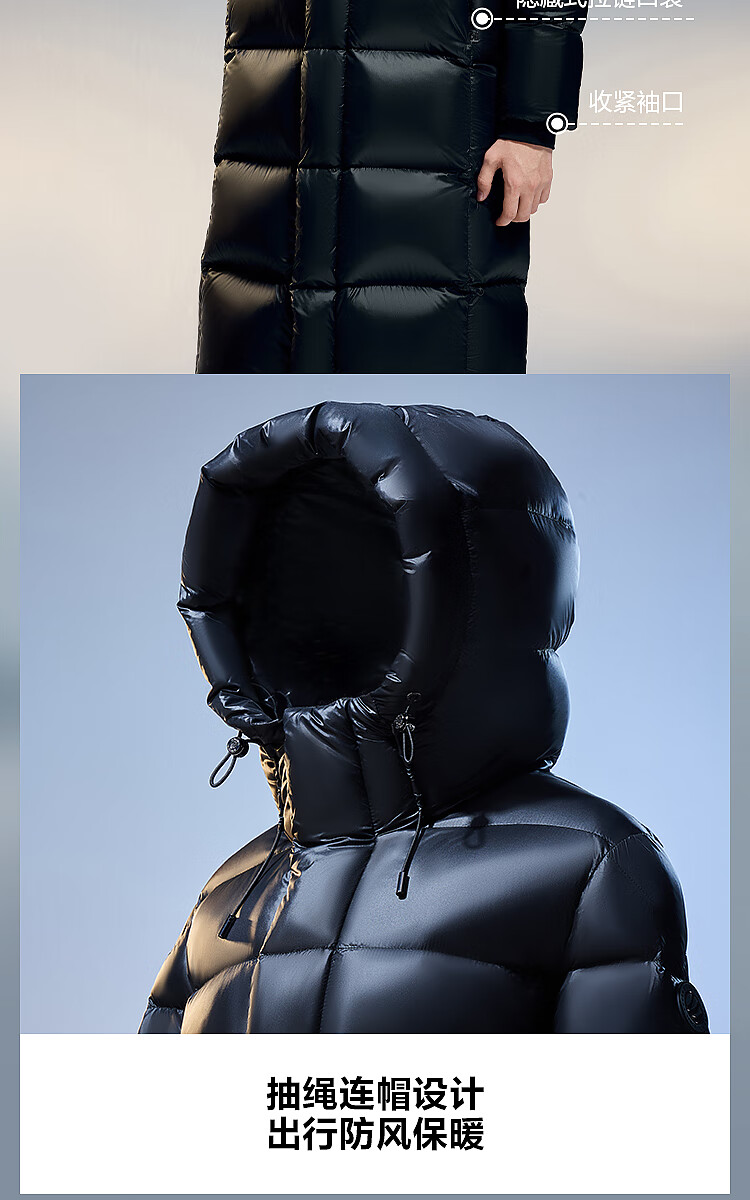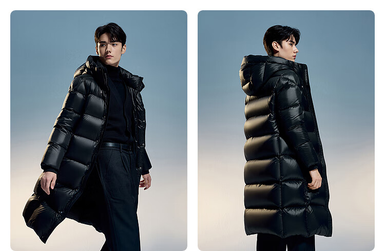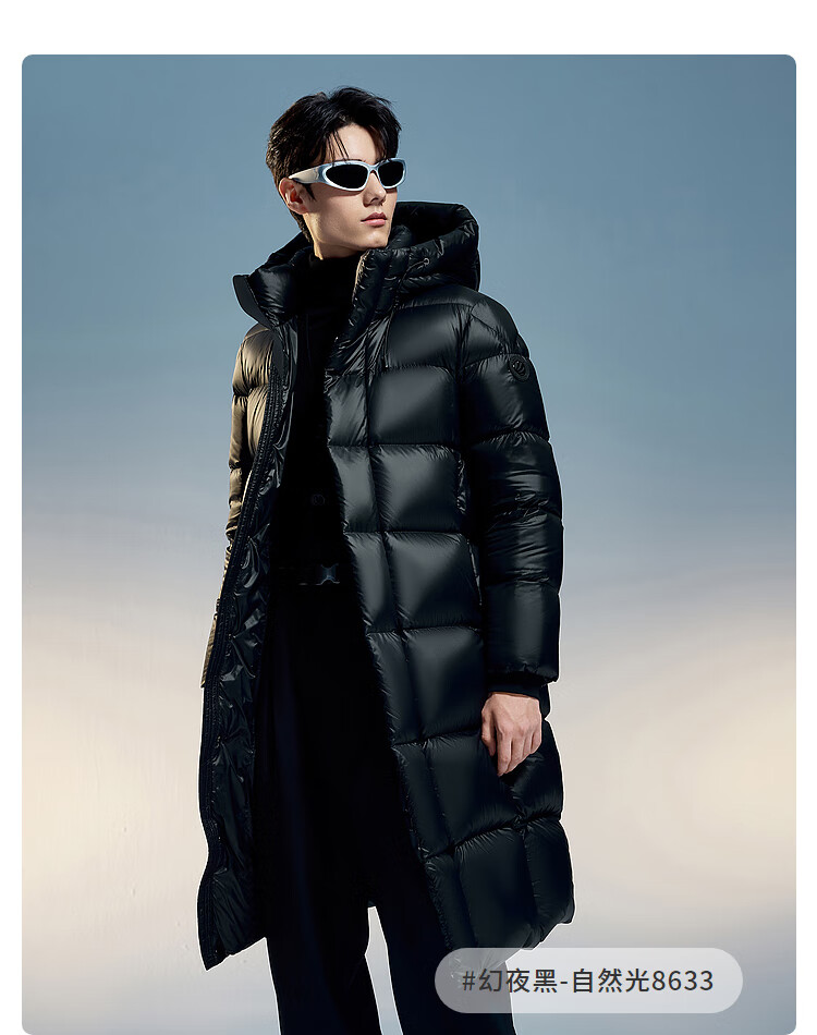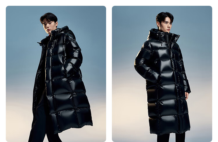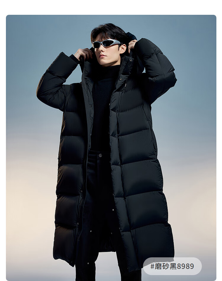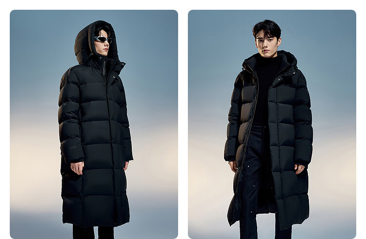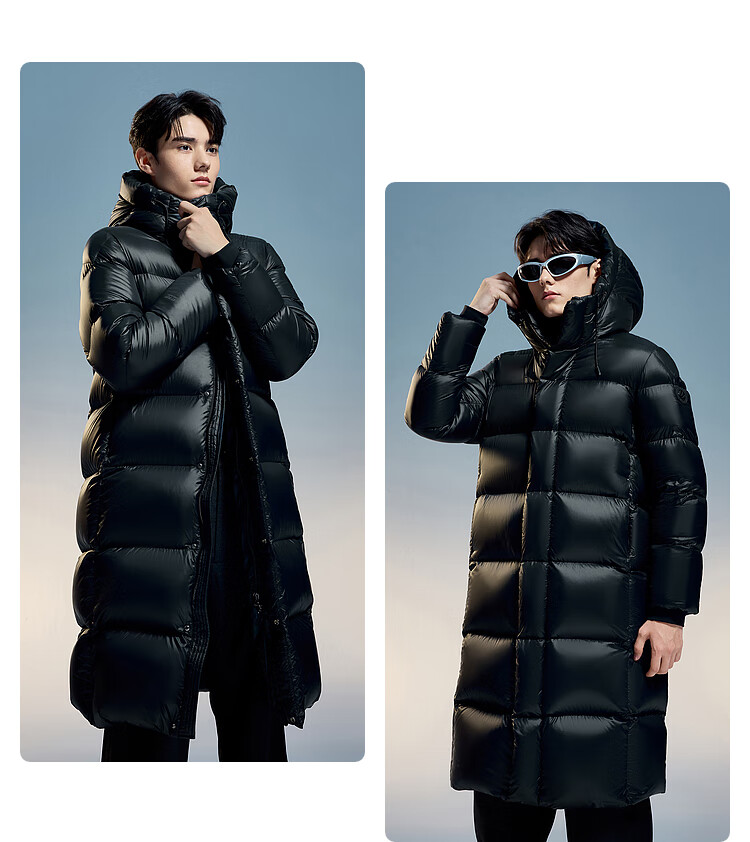 波司登(BOSIDENG)冬季泡芙羽绒服鹅绒男女同款情侣装长款新国标90绒外套 幻夜黑-自然光8633 L 170/92A