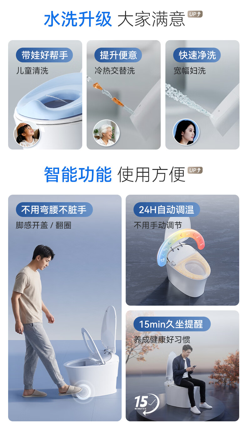 瑞尔特(R&T)轻智能马桶全家福系列全自动脚翻AI自清洁多功能助力臂抗菌马桶 全家福lite 400mm