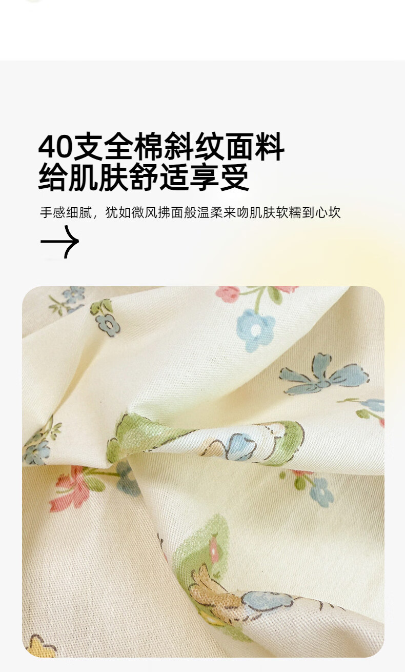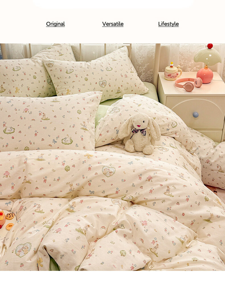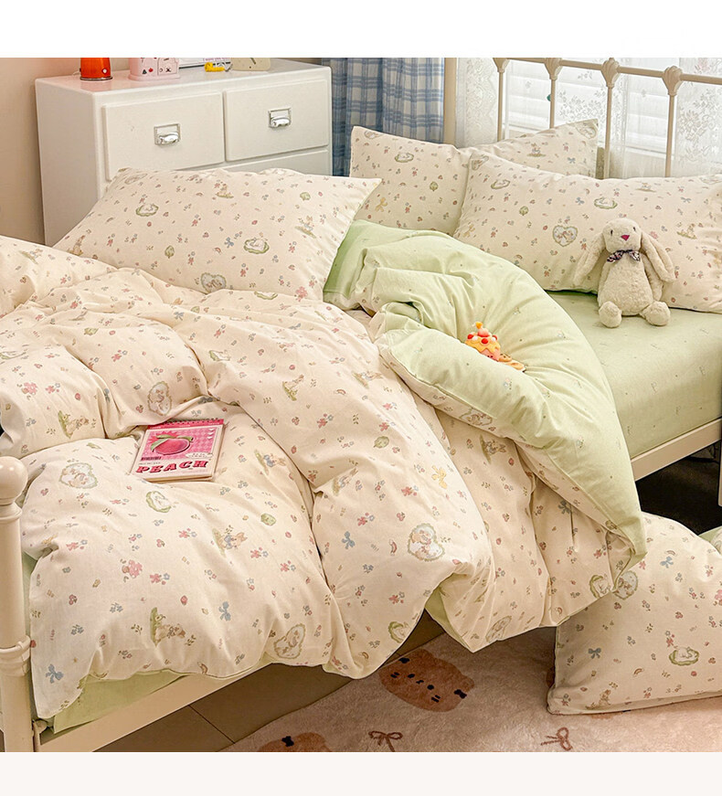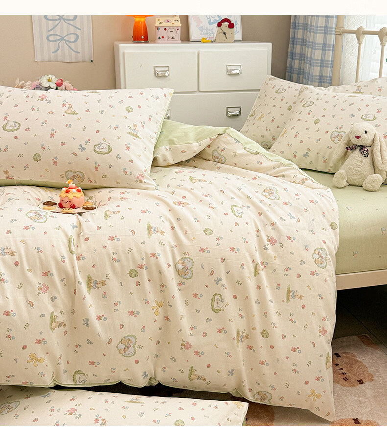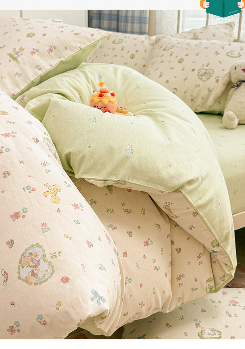 猫人(MiiOW)小清新纯棉床上四件套 全棉床单被套罩床笠单双人宿舍三件套 兔与花笺【100%全棉裸睡亲肤】 1.2 床单款 三件套(被套150*200cm)
