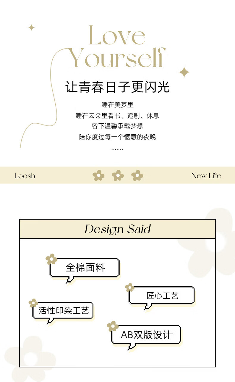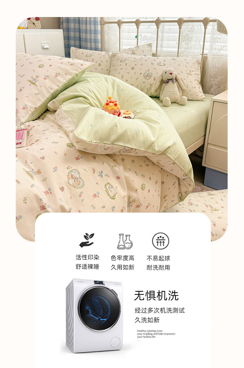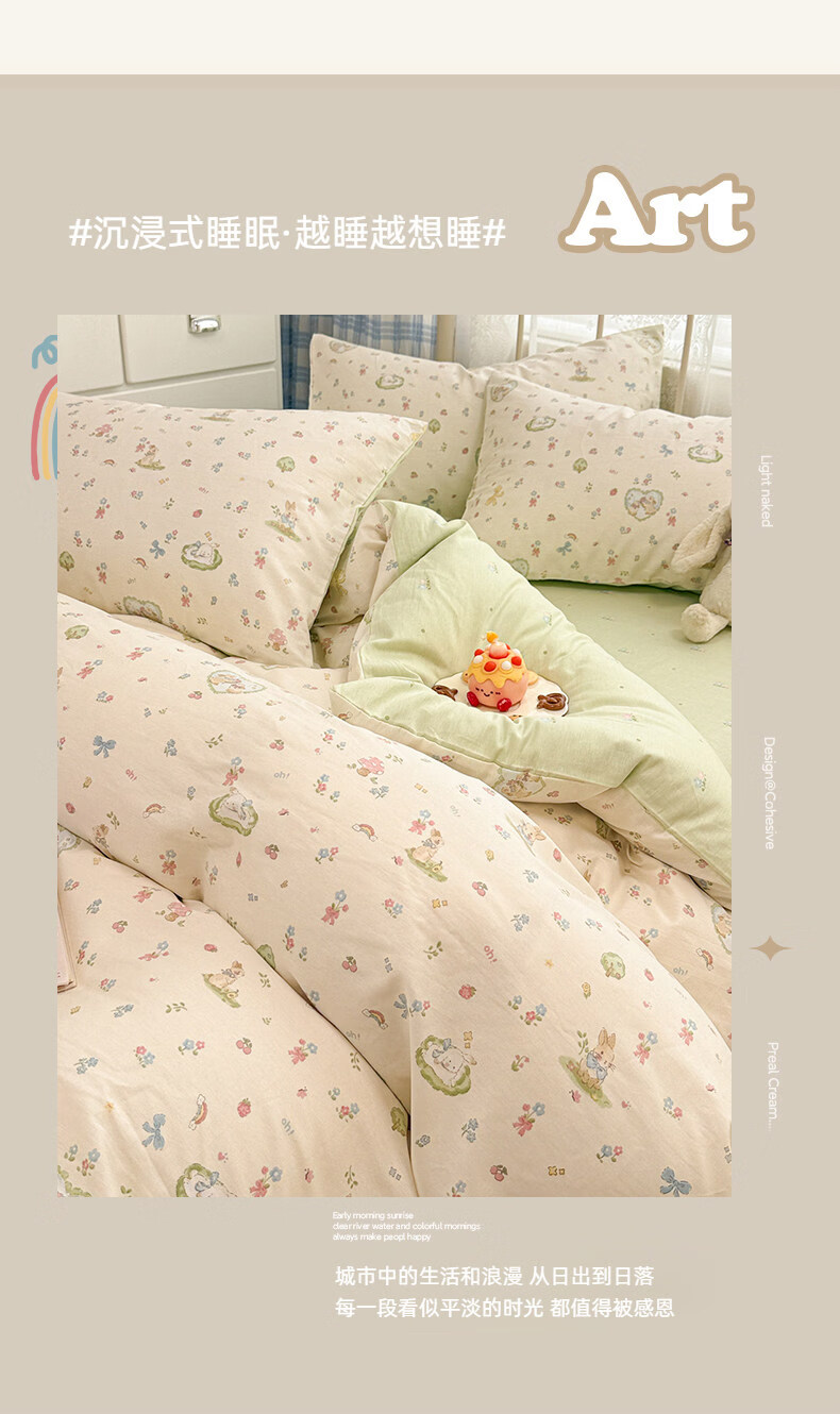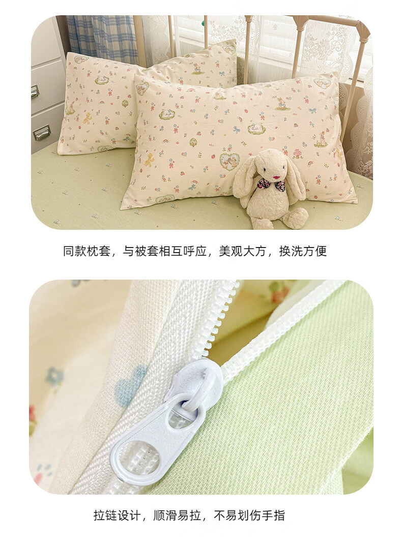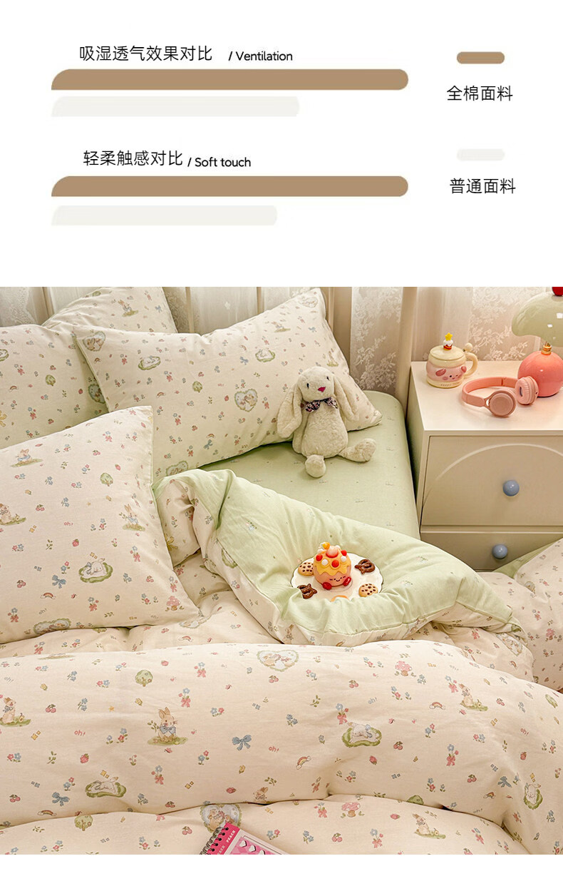 猫人(MiiOW)小清新纯棉床上四件套 全棉床单被套罩床笠单双人宿舍三件套 兔与花笺【100%全棉裸睡亲肤】 1.2 床单款 三件套(被套150*200cm)