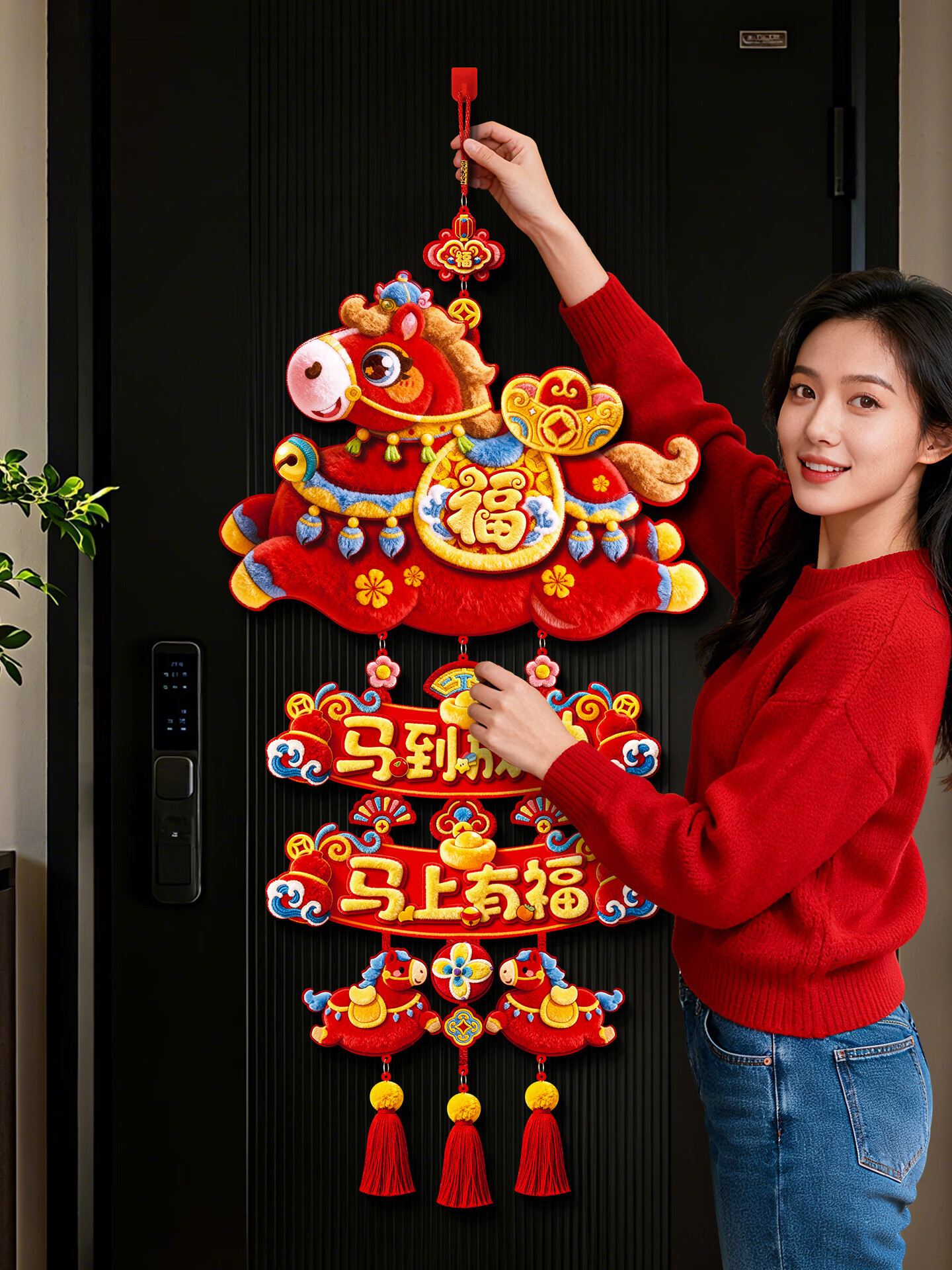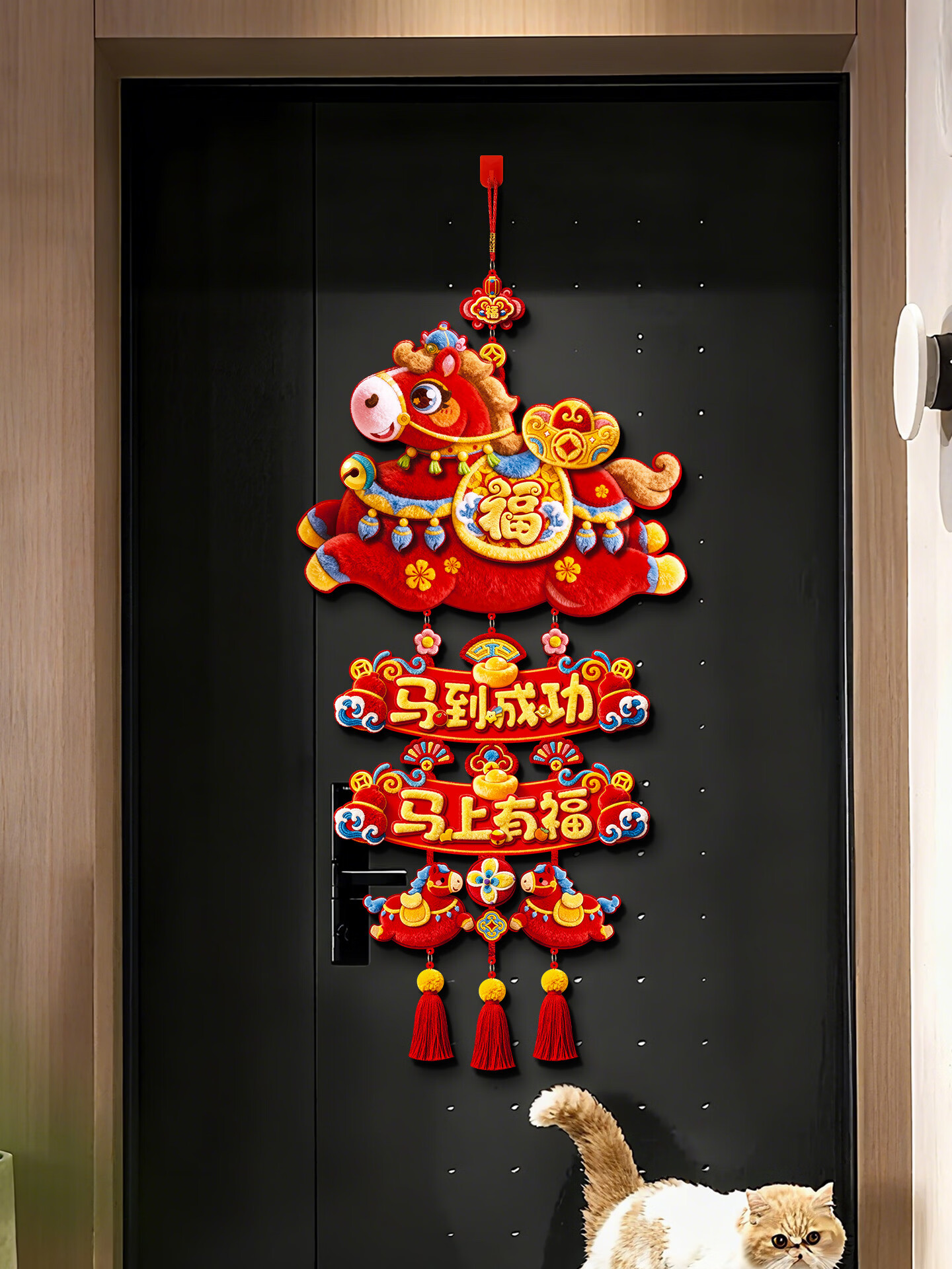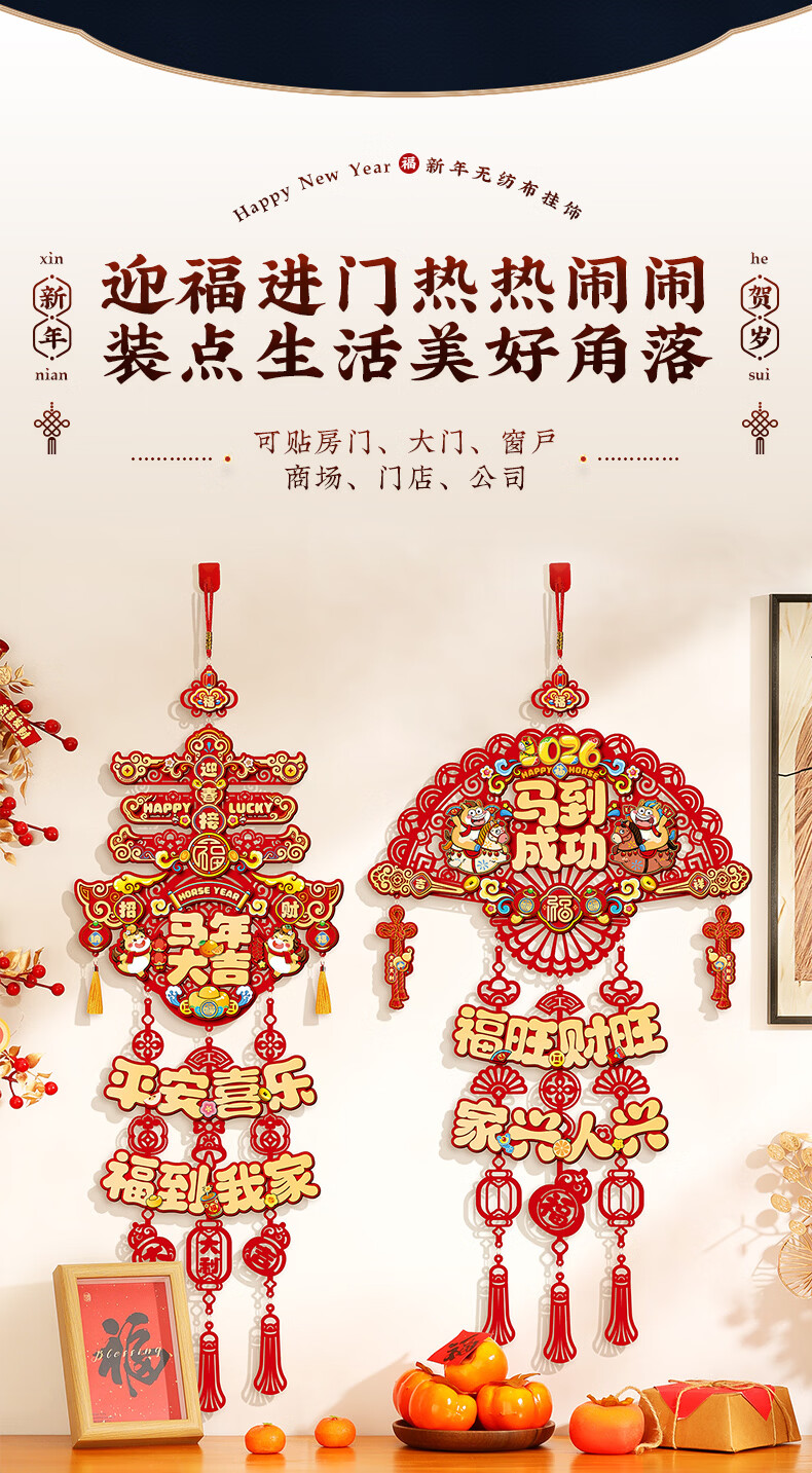 玺飞2026马年新年装饰福字挂件春节过年氛围布置入户门上喜庆贺年挂饰 【福旺财旺】扇形三连挂 无规格