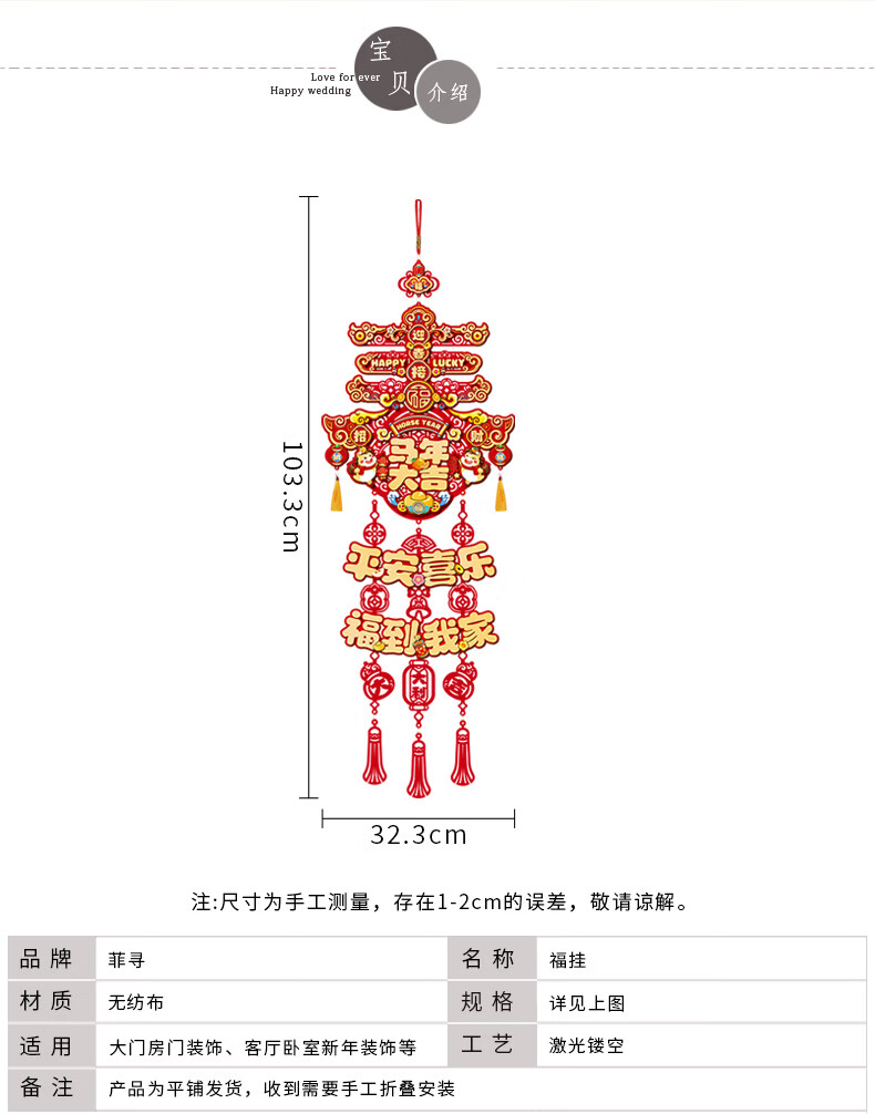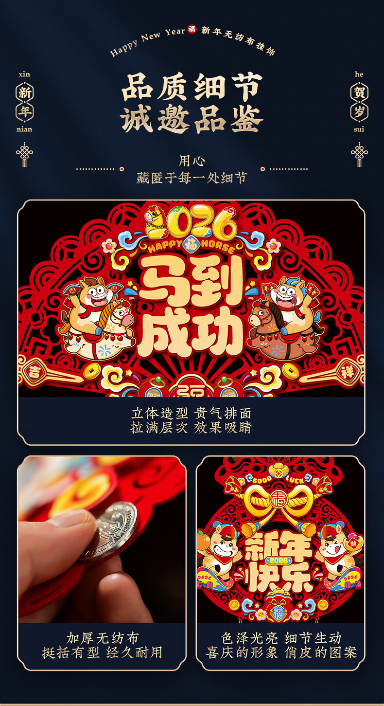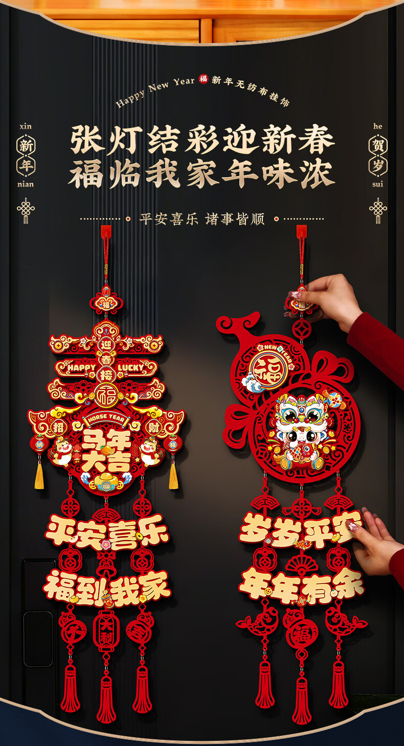 玺飞2026马年新年装饰福字挂件春节过年氛围布置入户门上喜庆贺年挂饰 【福旺财旺】扇形三连挂 无规格