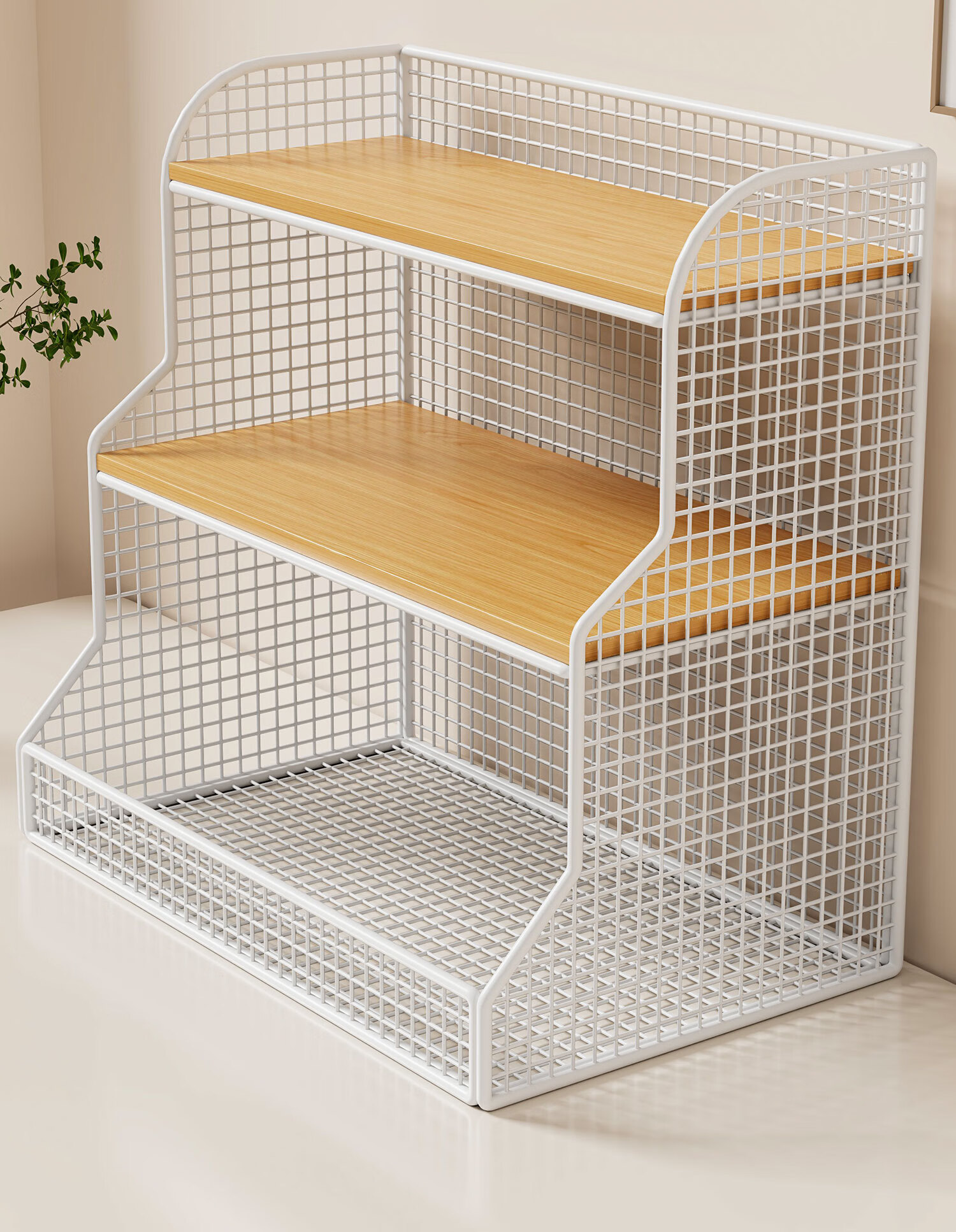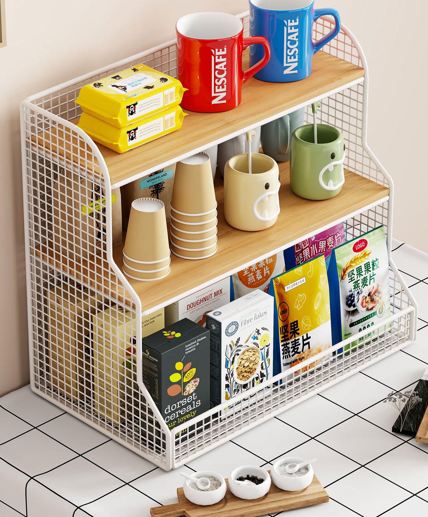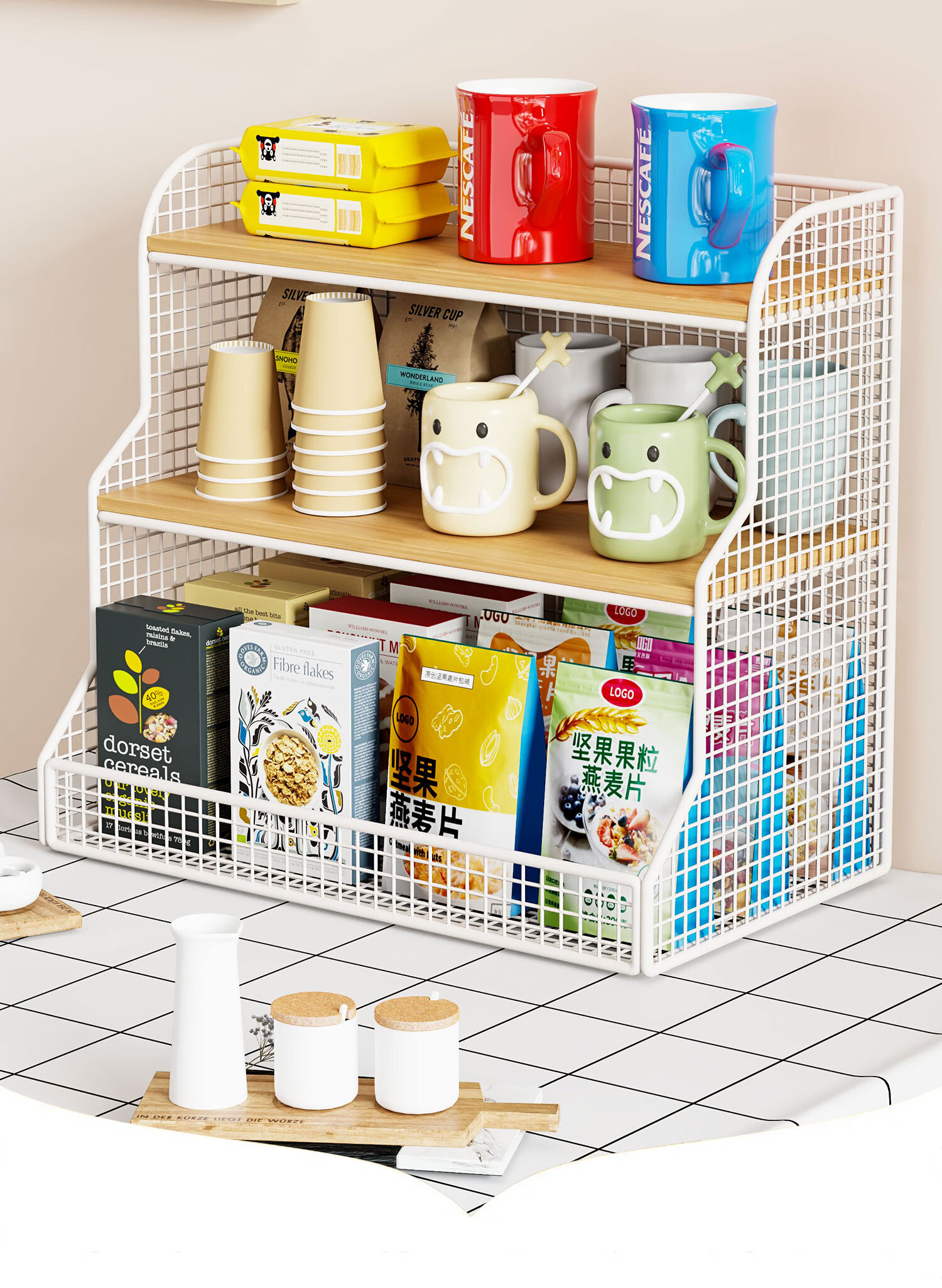 馨婺家桌面置物架厨房多功能分层整理客厅餐桌零食水杯架茶包台面收纳架 白色-加粗网格【小号】