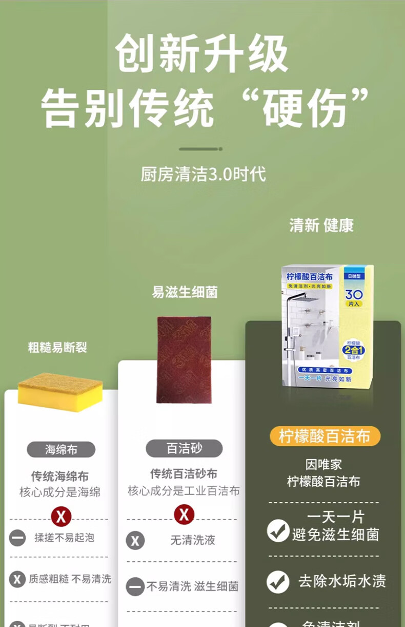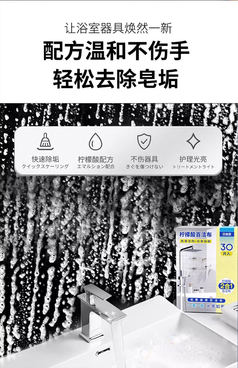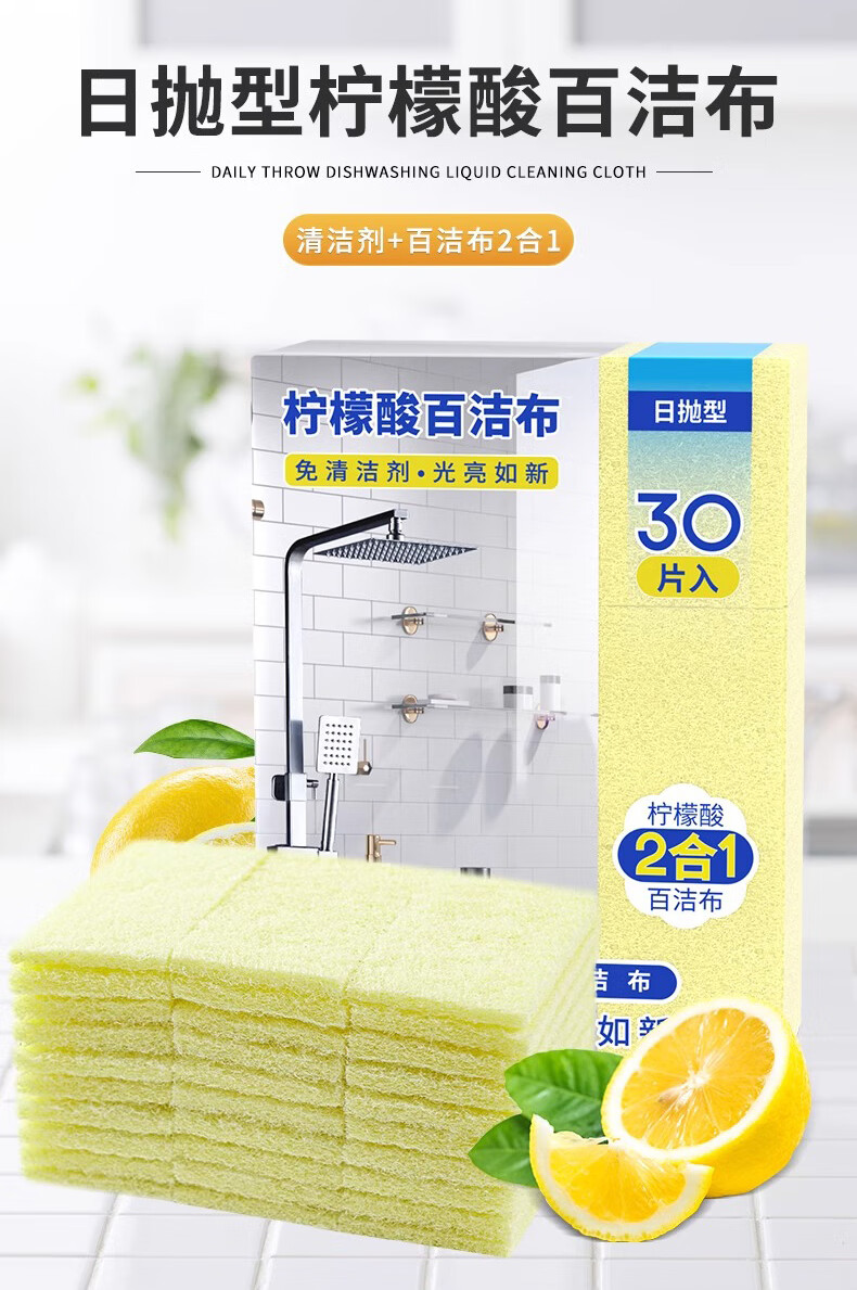 【京东电器专享】柠檬酸百洁布除水垢魔力擦一次性玻璃清洁神器 1包30片丨免洗剂-强力除水垢
