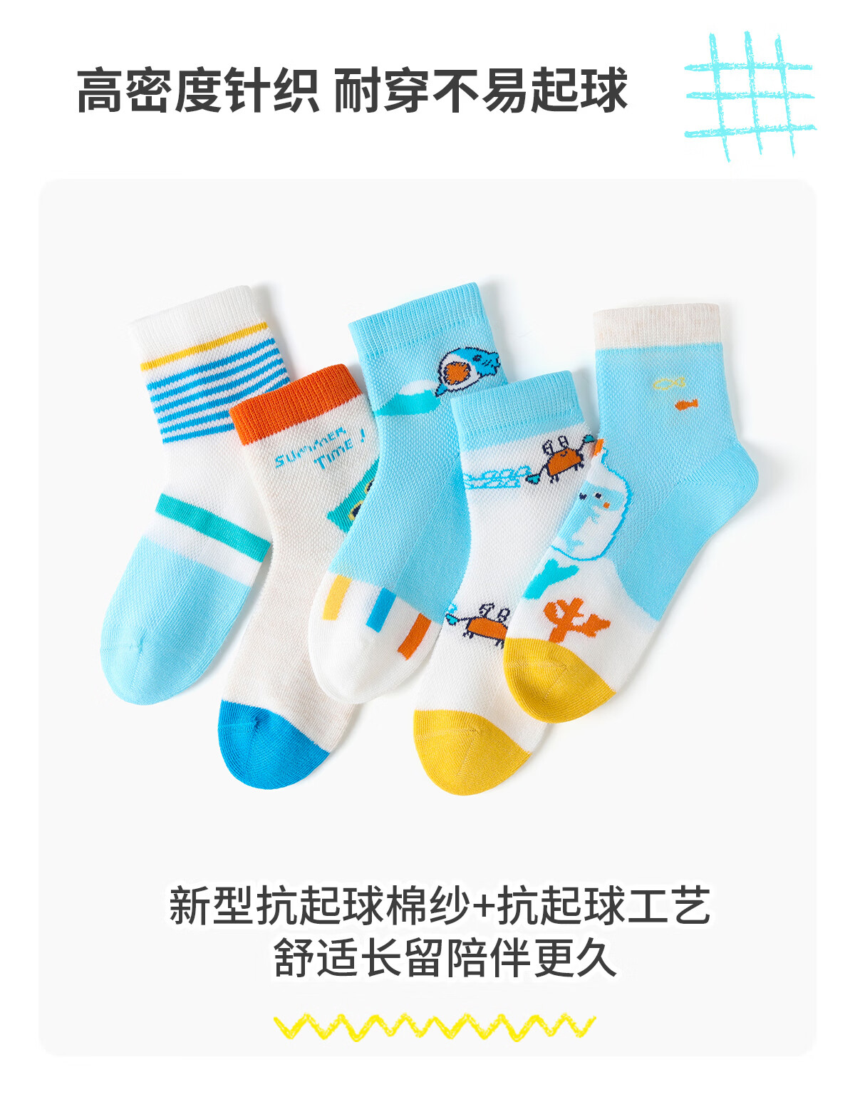 斑比男童袜子春夏款网眼透气棉袜中大童宝宝夏季无骨可爱儿童袜子 BB2603 春夏款儿童袜子 5双 0-1岁 建议脚码16码以内【12-14】