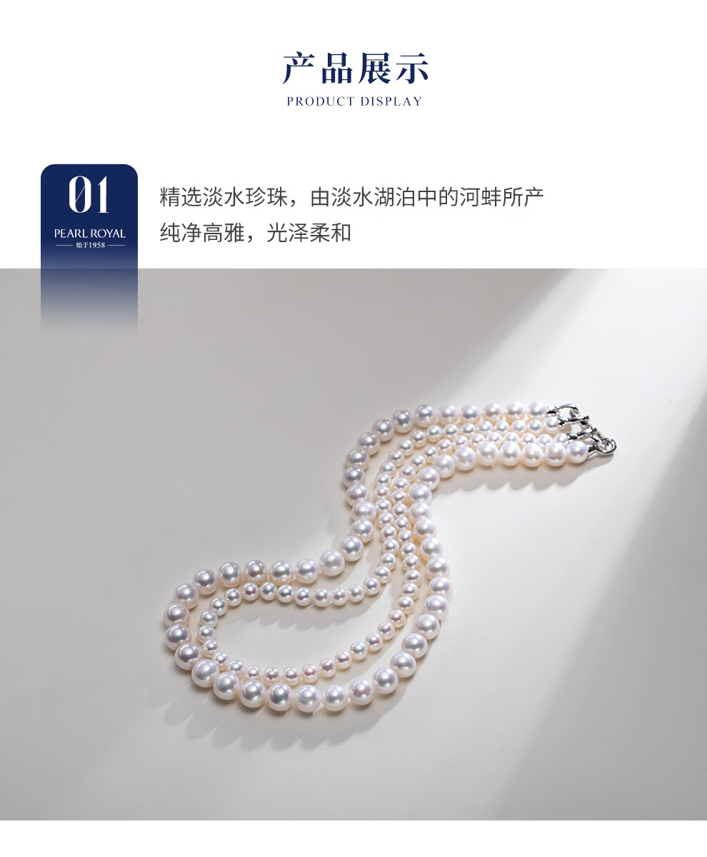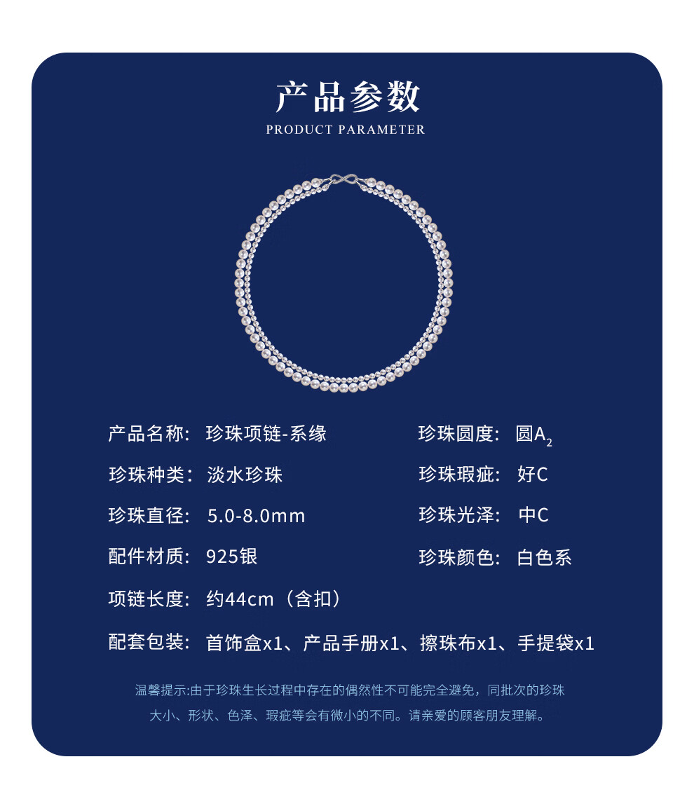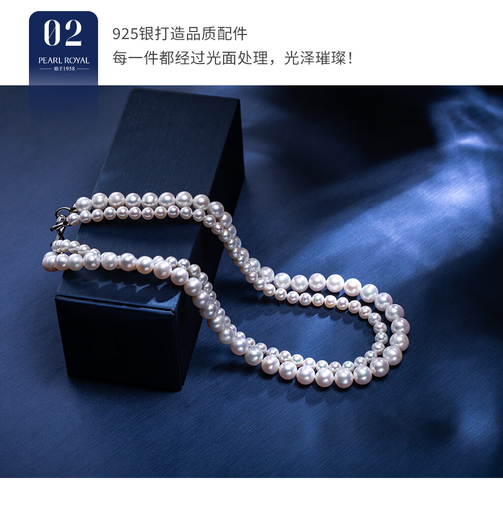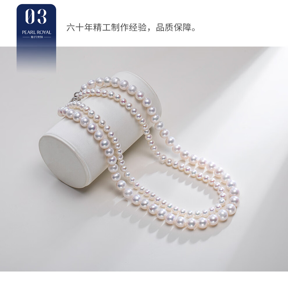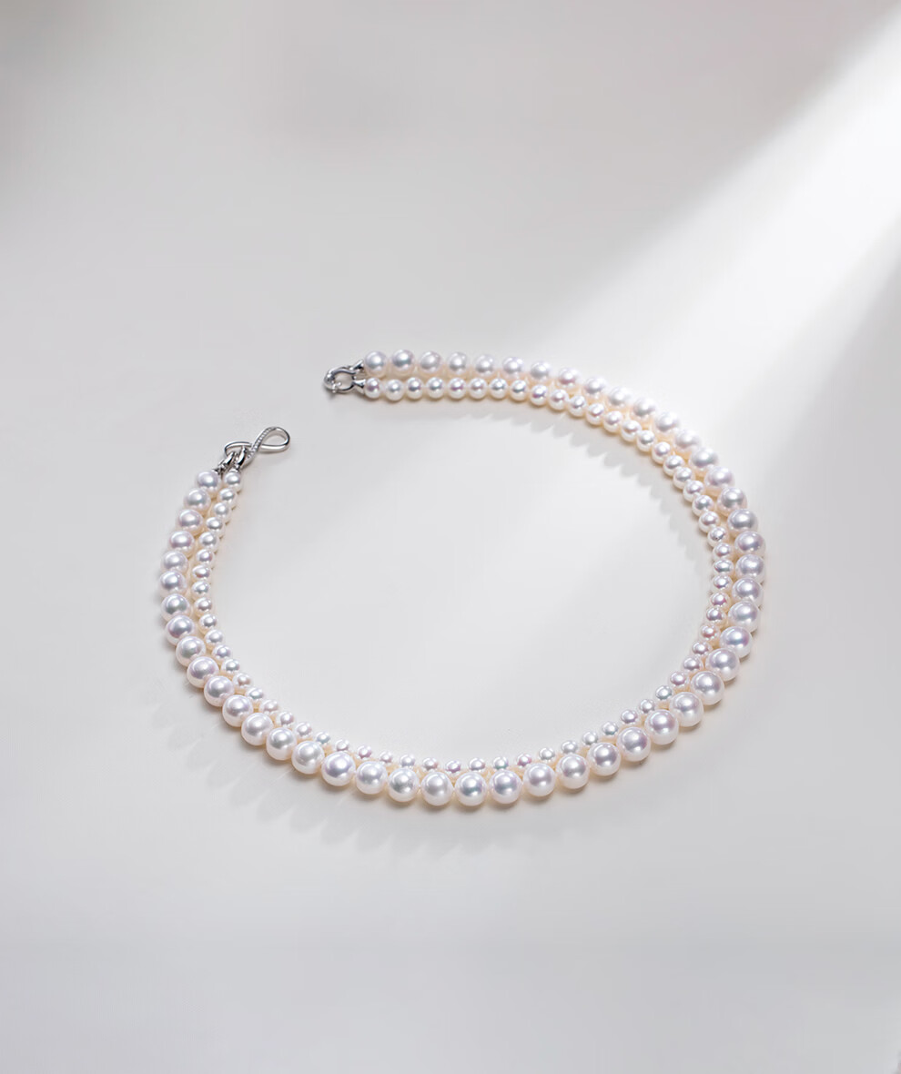 南珠宫系缘高品质淡水珍珠双层项链强光泽圆形年轻款新年礼物送老婆 5.0-8.0mm 约44cm(含扣)