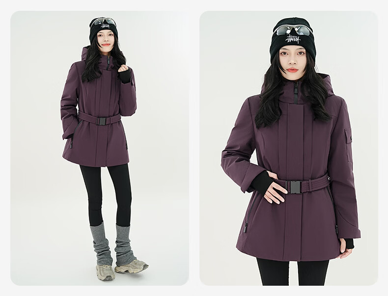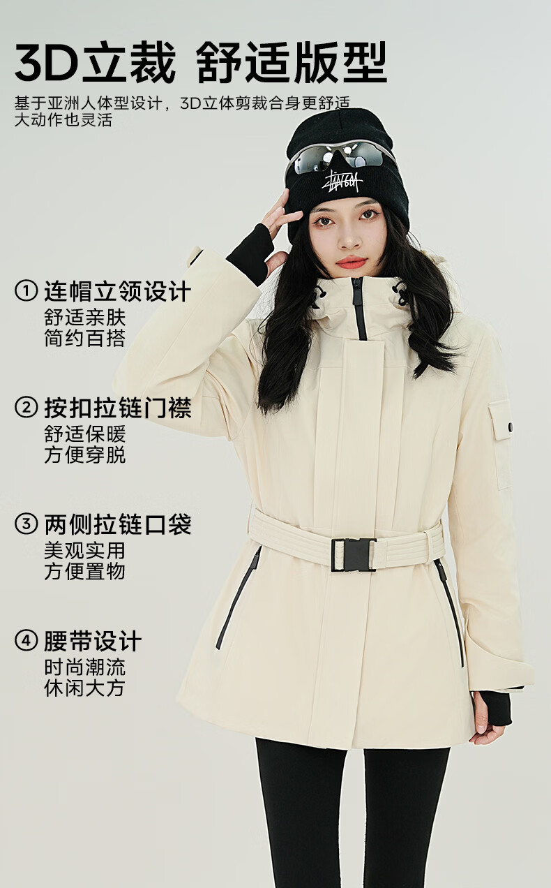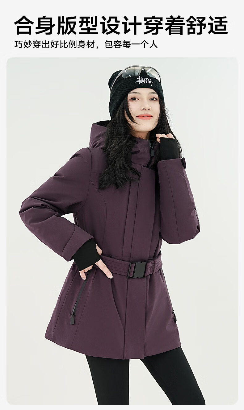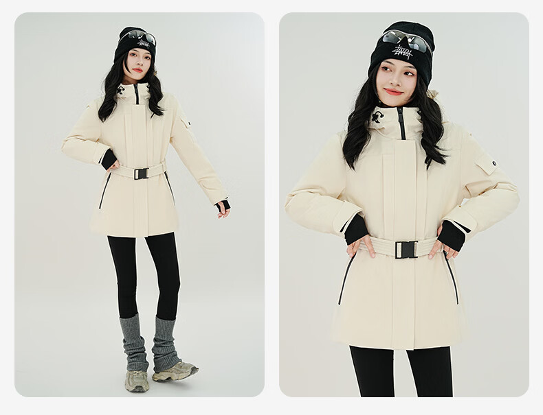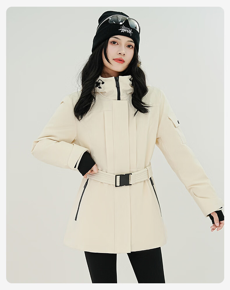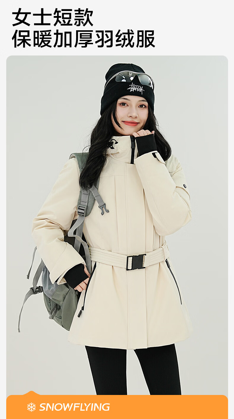 雪中飞工装派克羽绒服女中长款2025年新款时尚收腰气质百搭冬季保暖外套 米白色 M (105斤以内)