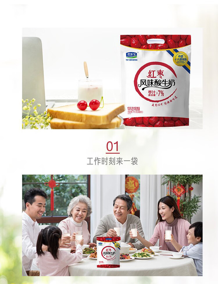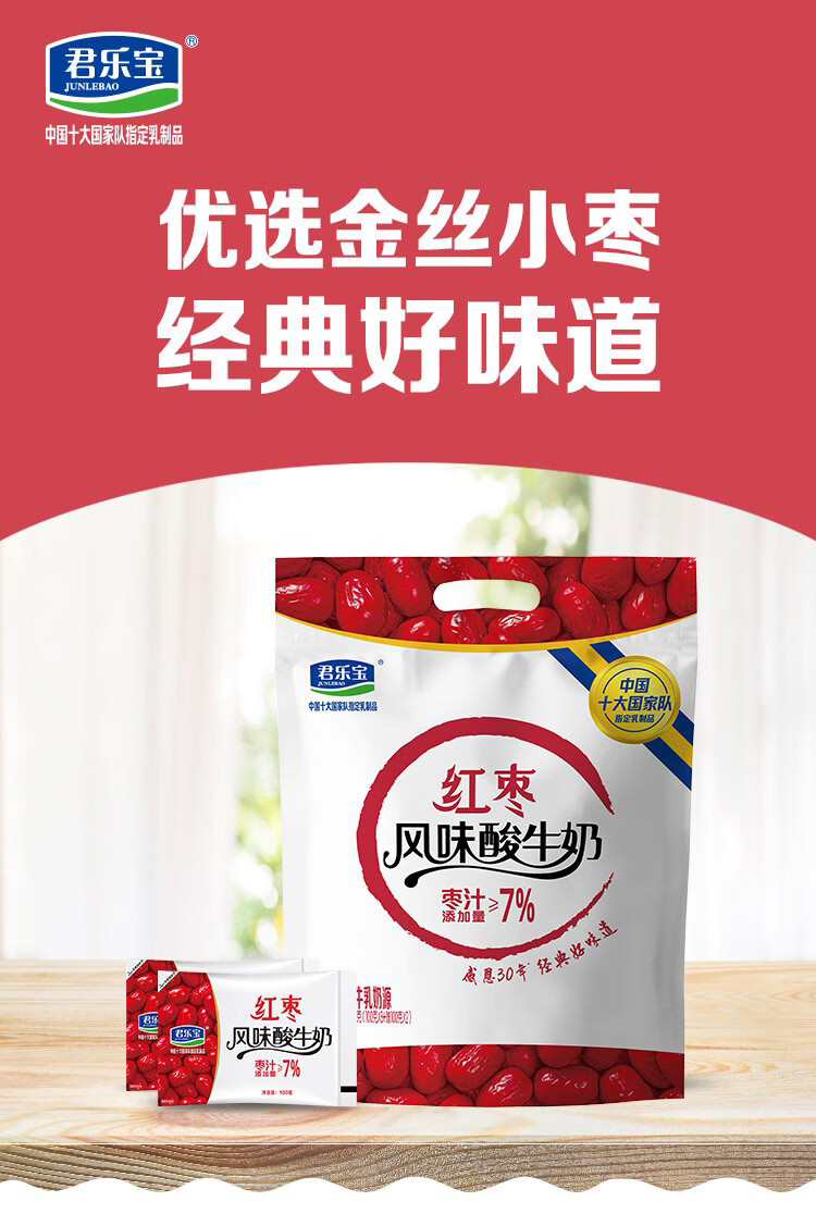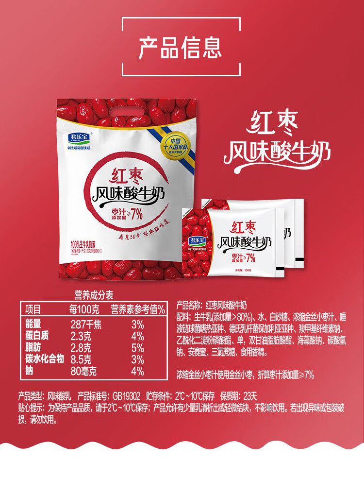 君乐宝简醇0添加蔗糖 慢醇炭烧(单袋100g)营养佐餐风味酸奶低温酸牛奶 简醇100g*10袋+红枣100g*20袋