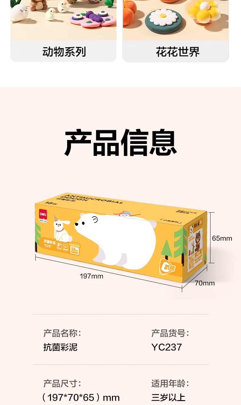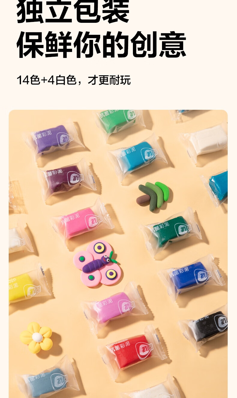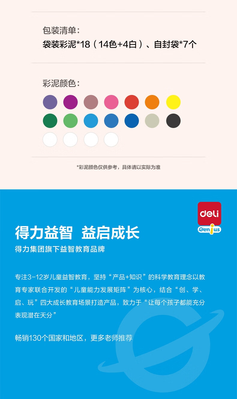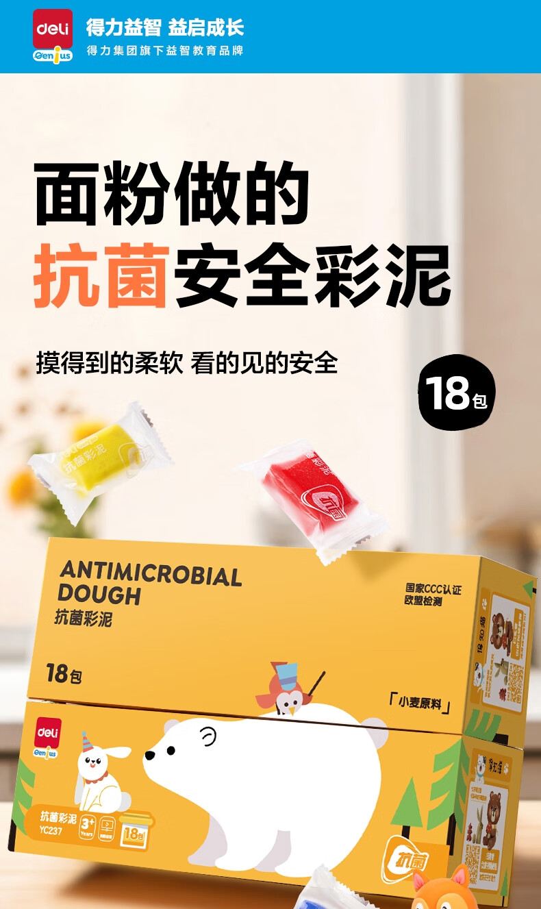 得力(deli)18袋面粉彩泥随行装15色儿童橡皮泥幼儿园小麦原料非轻型粘土学生玩具男女孩生日开学文具