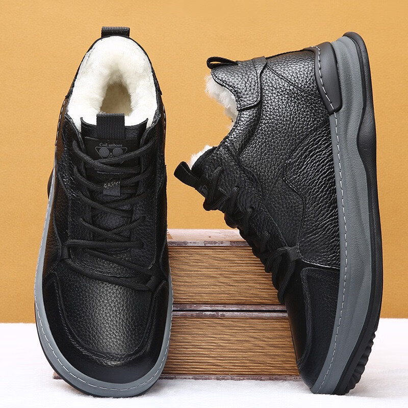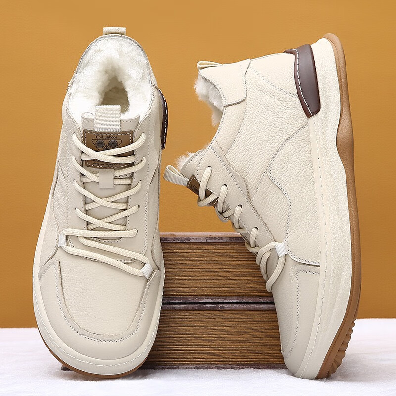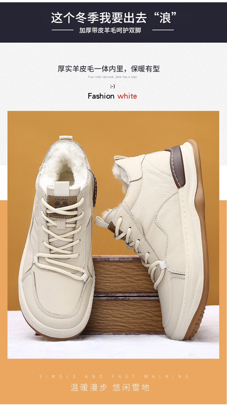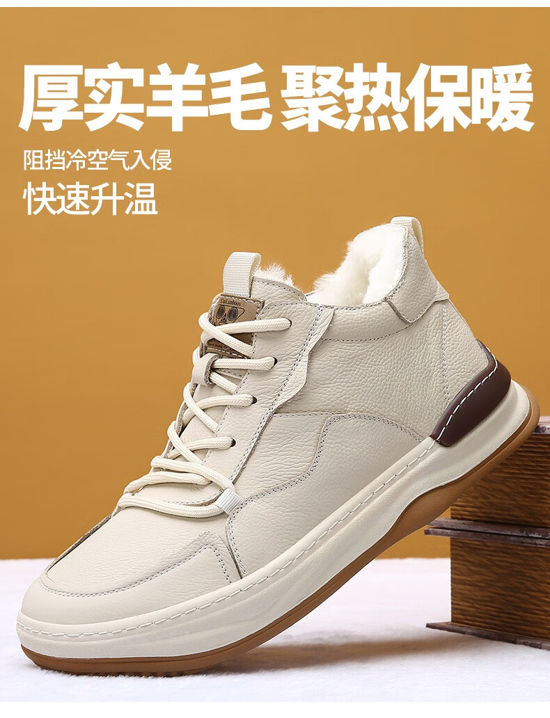 稻草人(MEXICAN)头层牛皮棉鞋男冬季2026新款男士高帮真皮羊毛棉皮鞋保暖防滑冬鞋 米白【羊毛内里】 38