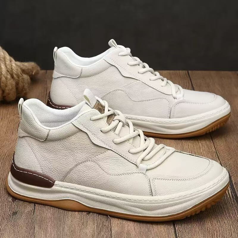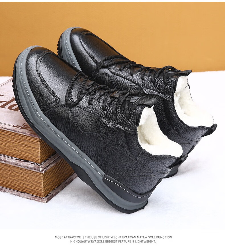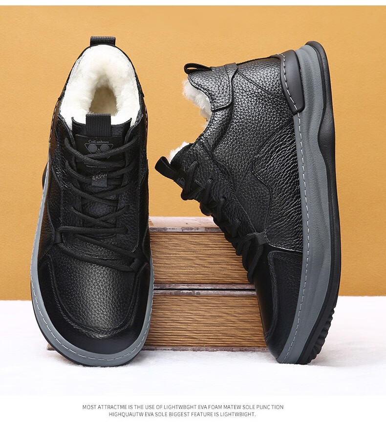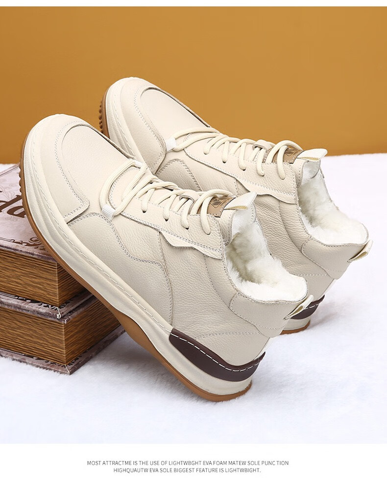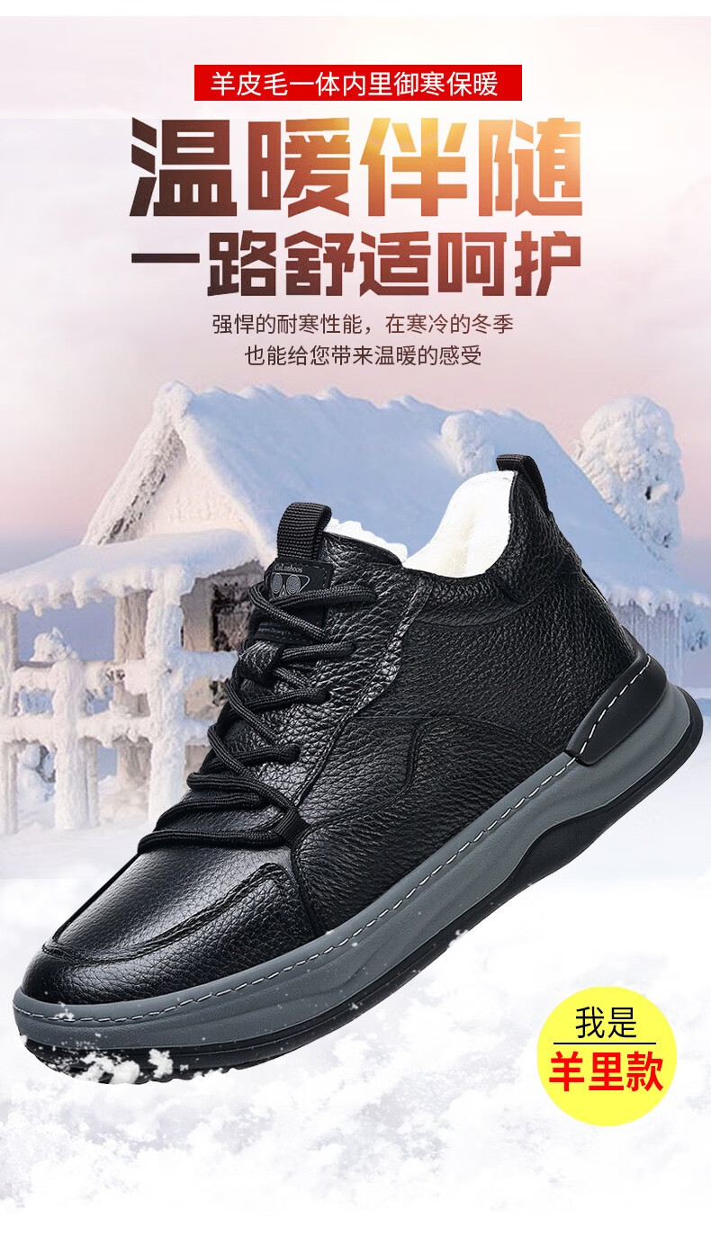 稻草人(MEXICAN)头层牛皮棉鞋男冬季2026新款男士高帮真皮羊毛棉皮鞋保暖防滑冬鞋 米白【羊毛内里】 38