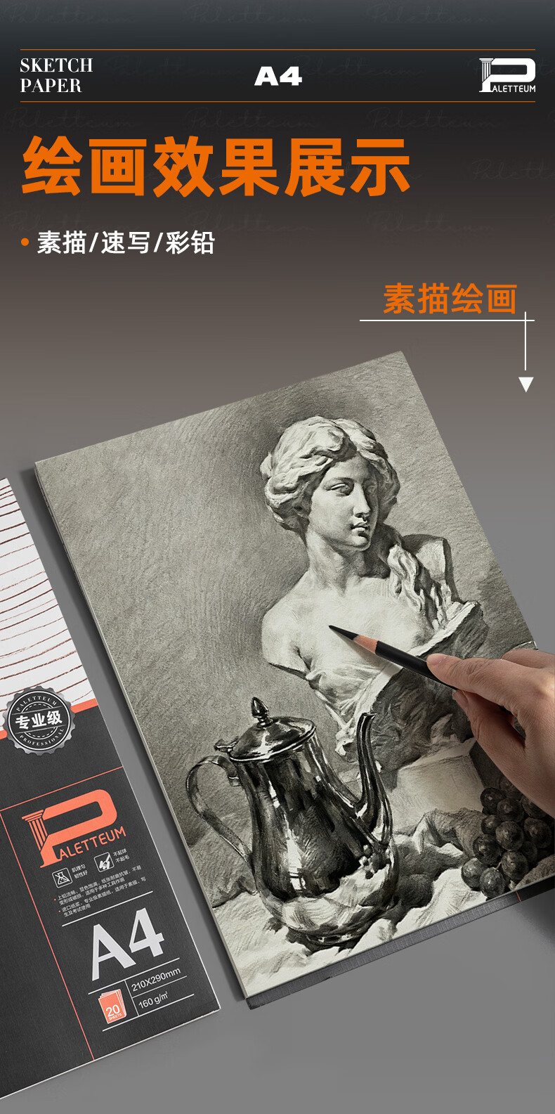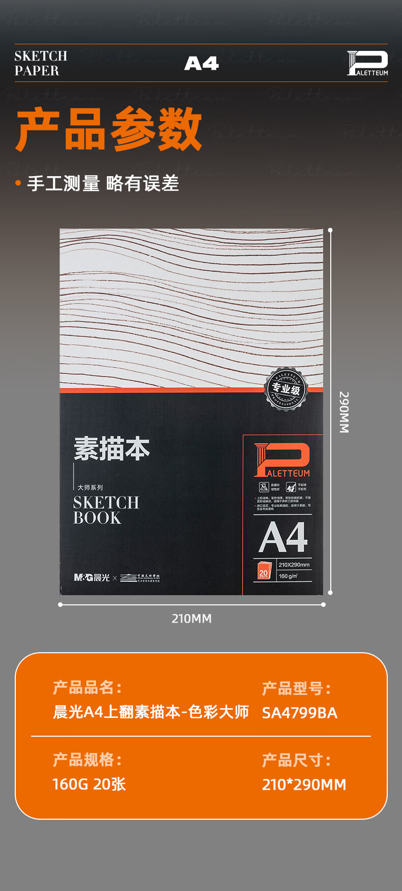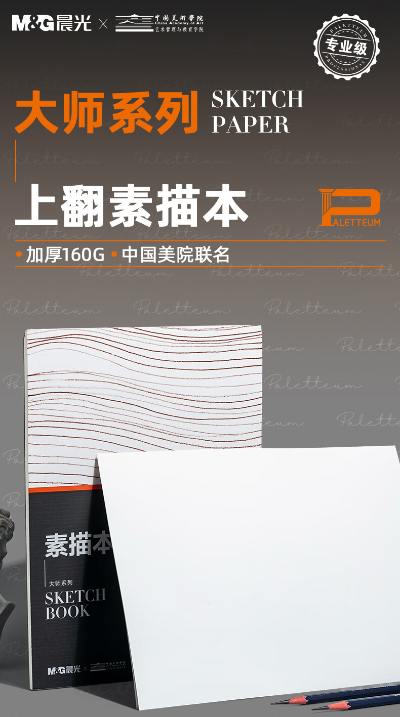 晨光(M&G)文具素描本加厚A4/160g 专业美术考试速写本素描纸上翻绘画 大师美院联名 开学礼物 SA4799BA