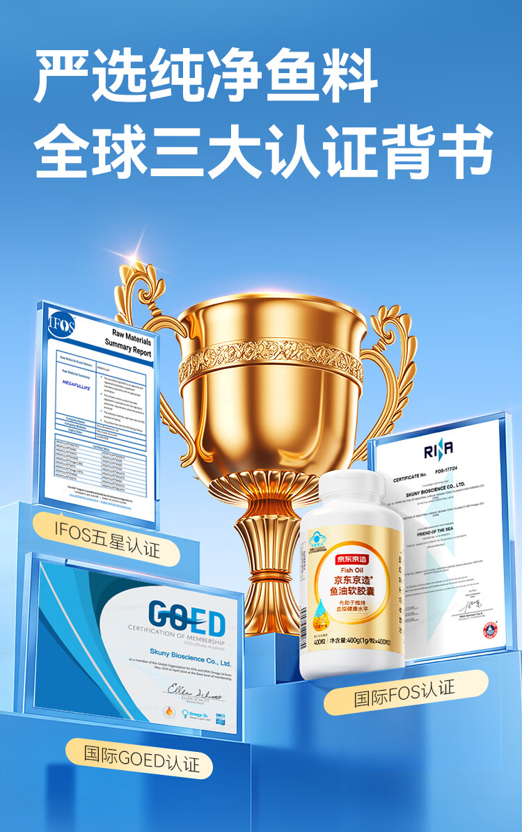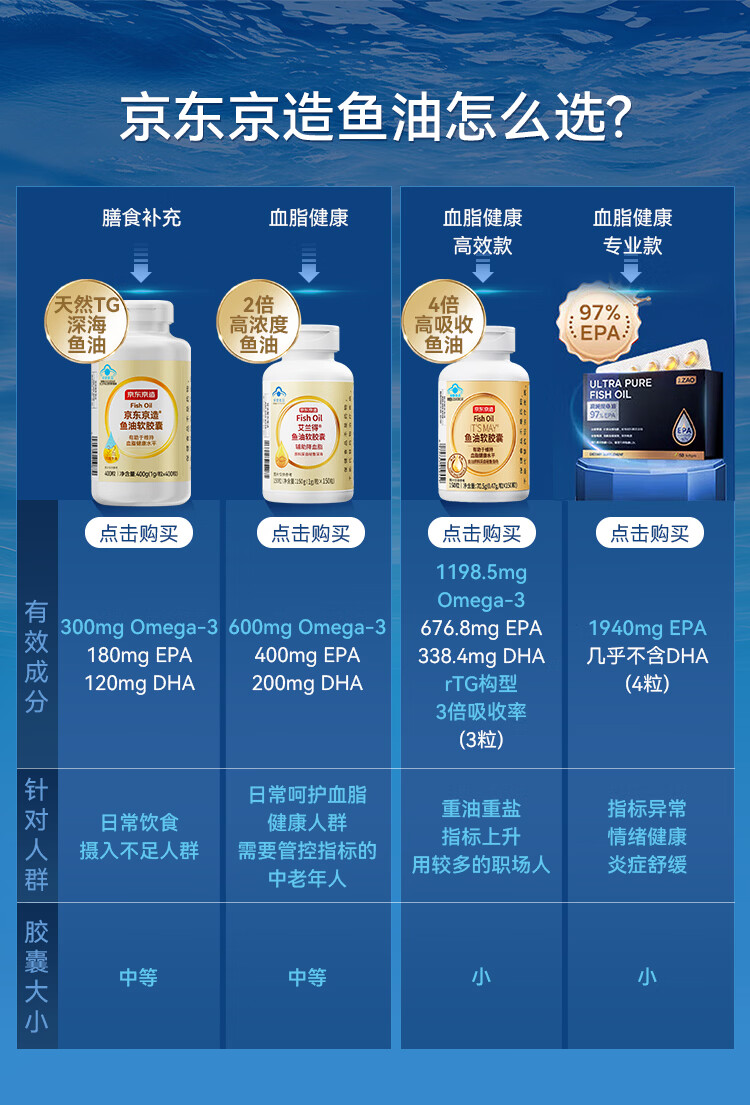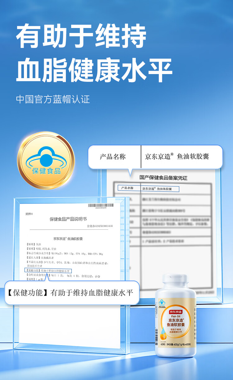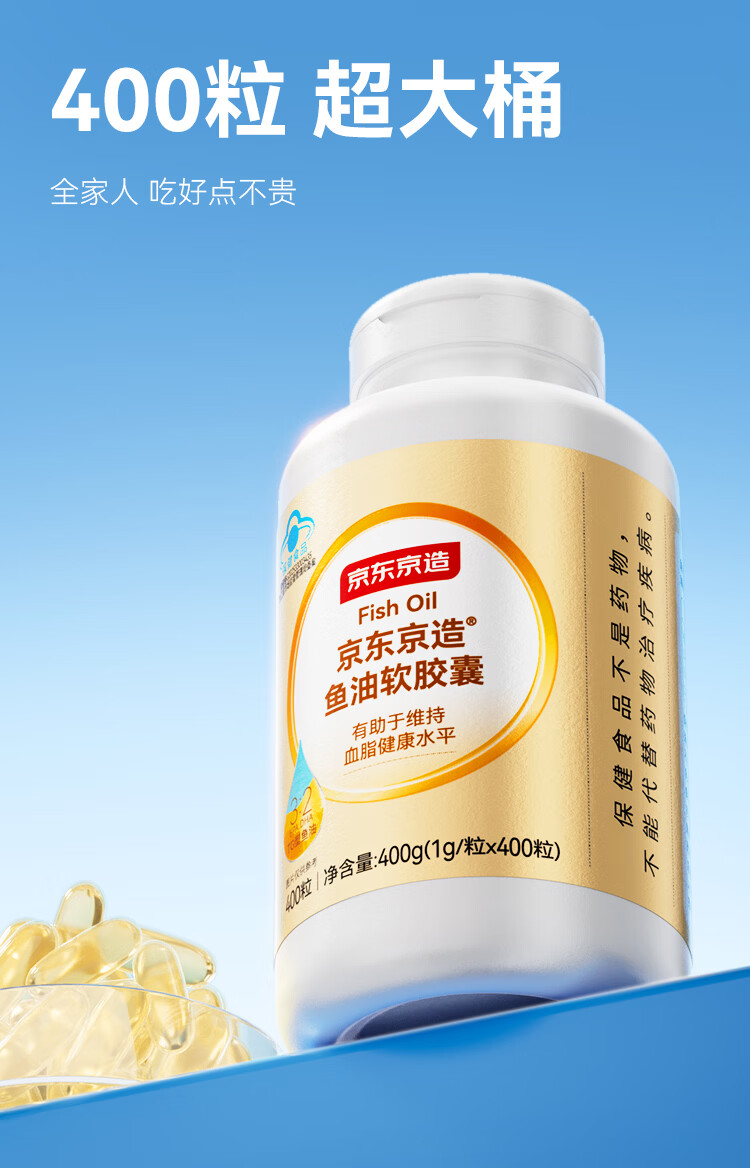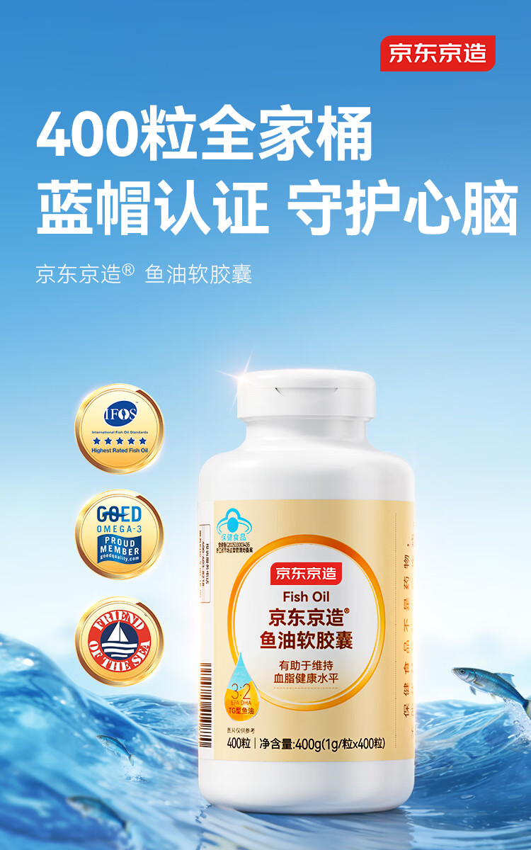 京东京造TG深海鱼油400粒omega-3 蓝帽dha辅助降血脂epa非鱼肝油
