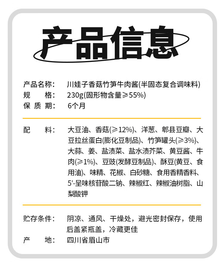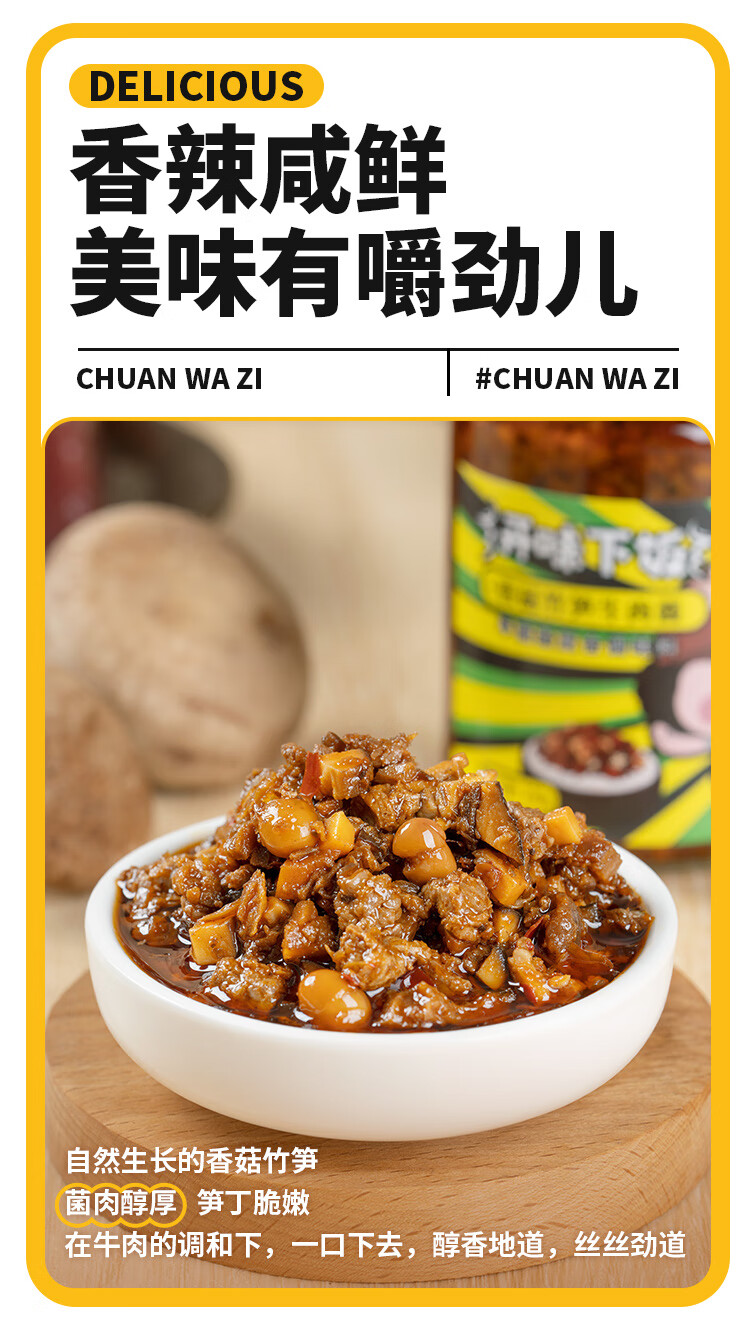 川娃子 香菇竹笋牛肉酱下饭酱辣椒酱 川式香辣味 拌饭拌面酱230g