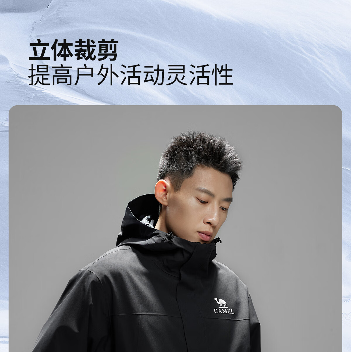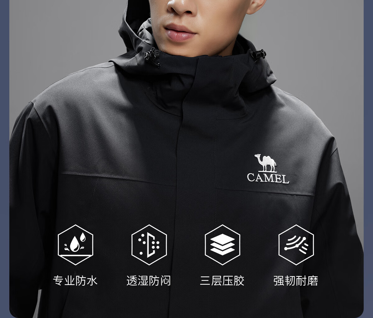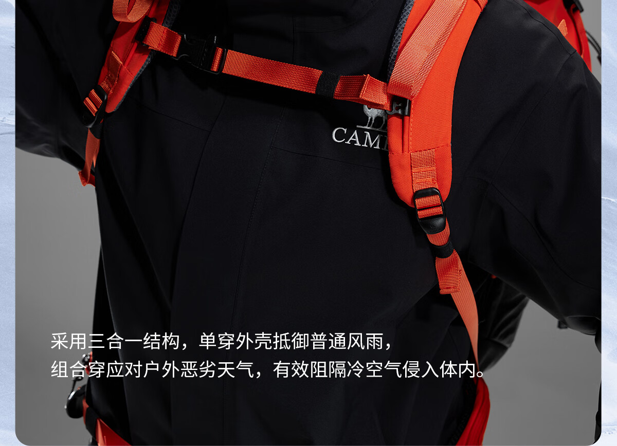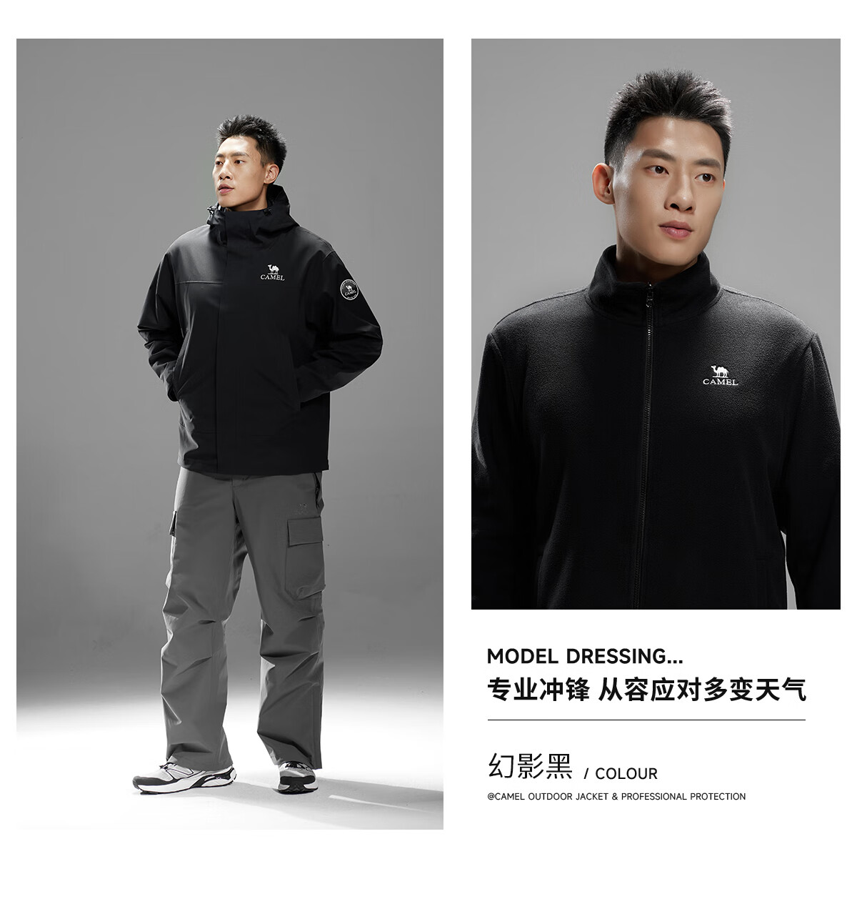 骆驼(CAMEL)王者凯甲ICON户外抓绒冲锋衣三合一专业暴雨级防水硬壳外套 B348