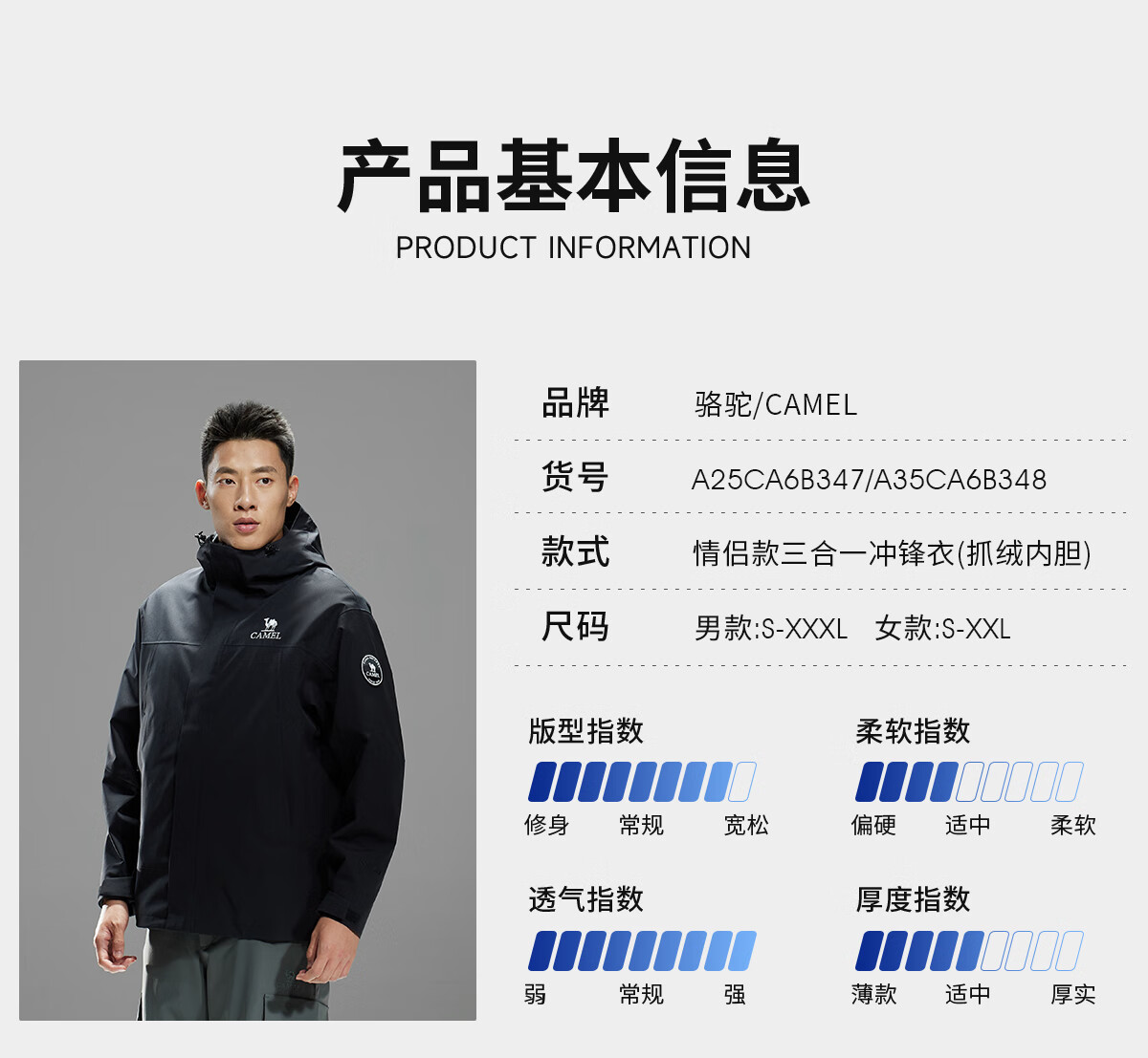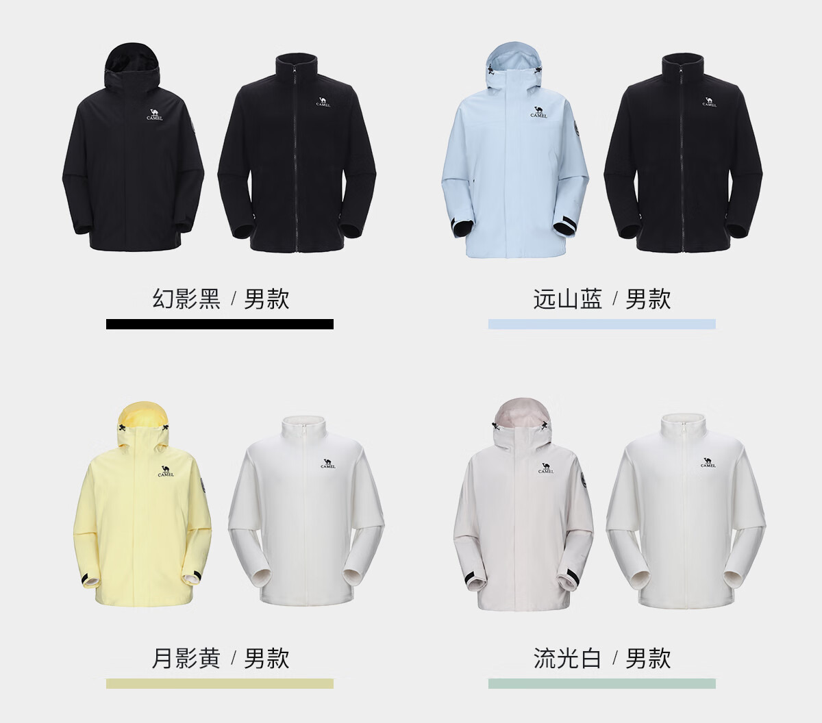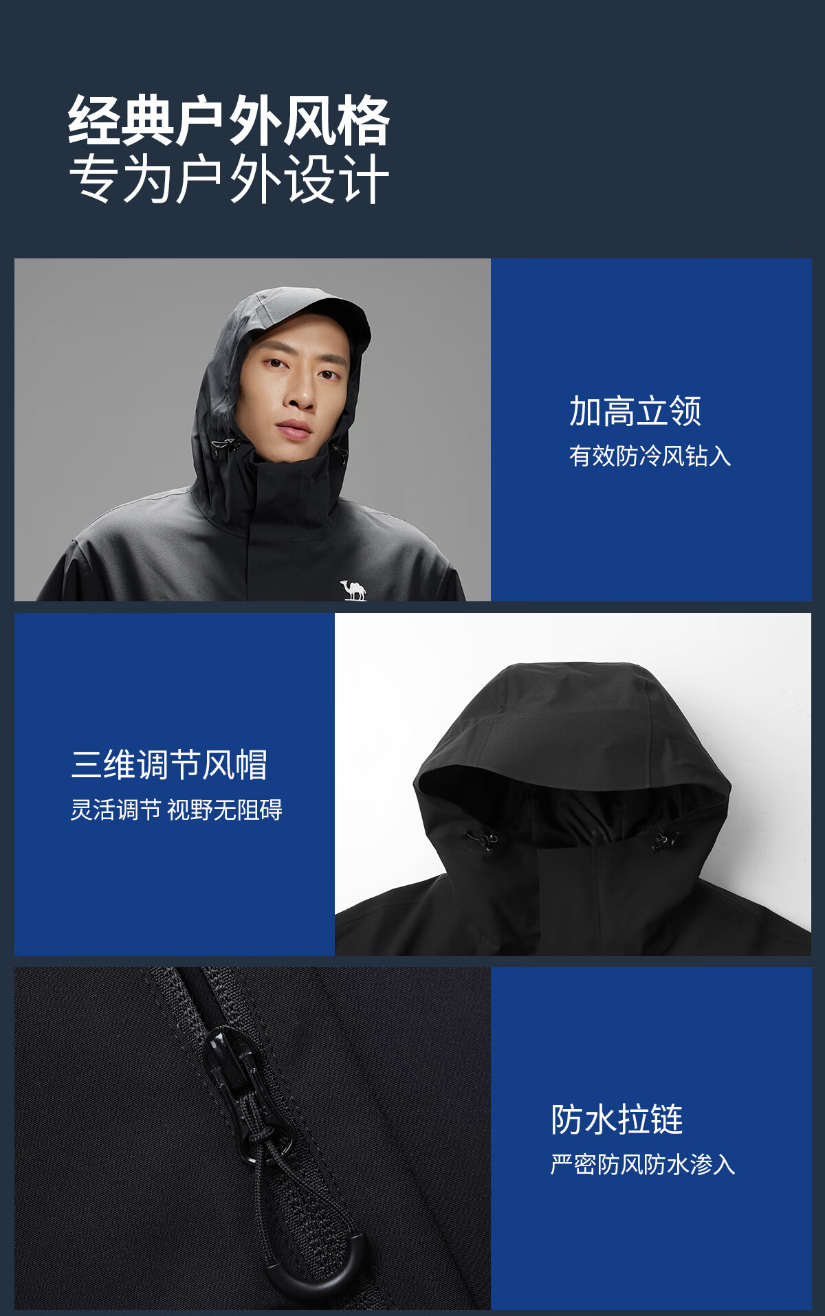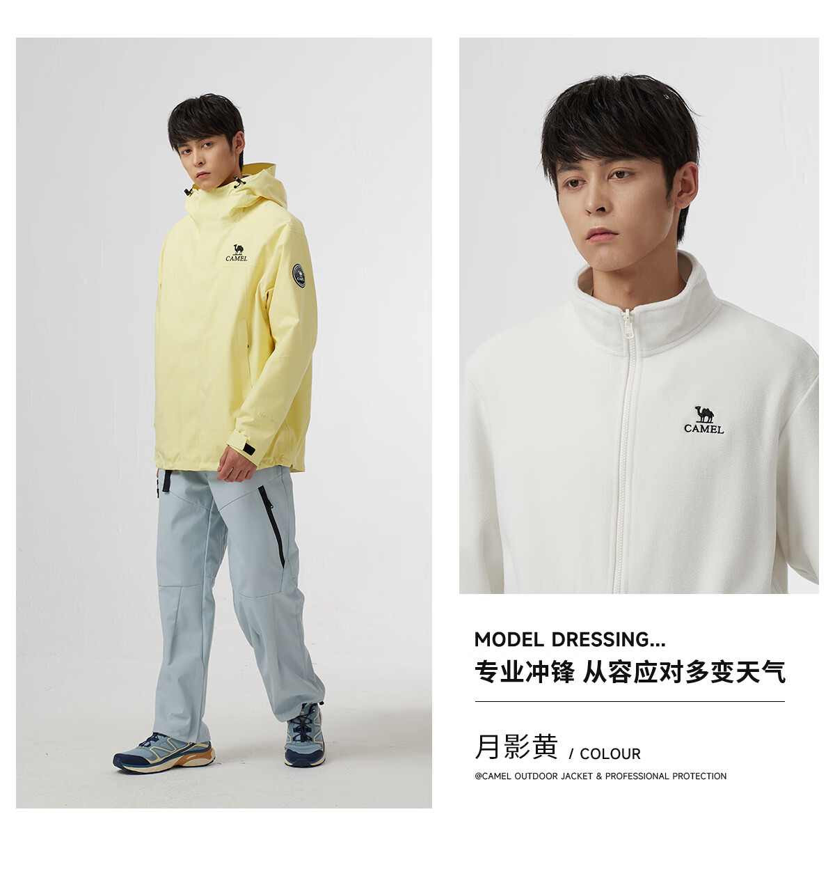 骆驼(CAMEL)王者凯甲ICON户外抓绒冲锋衣三合一专业暴雨级防水硬壳外套 B348