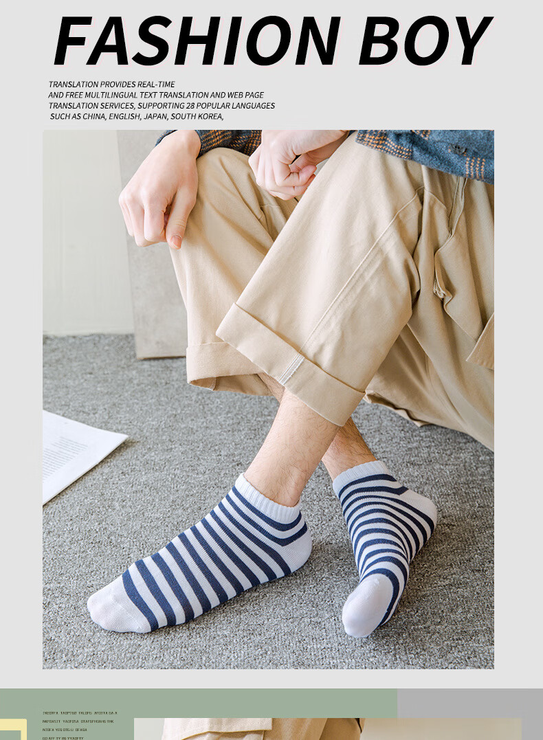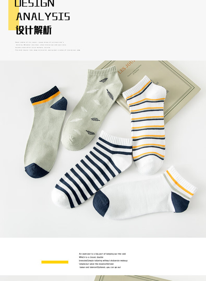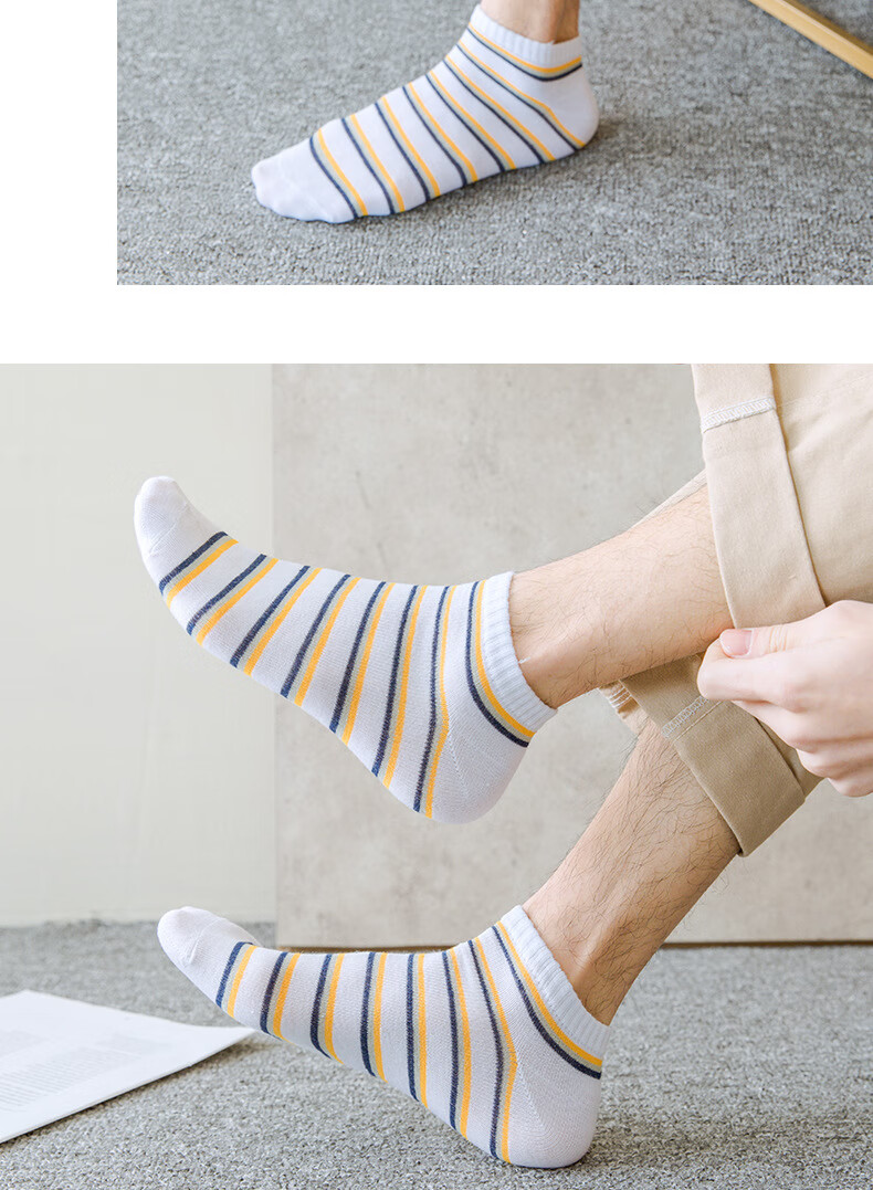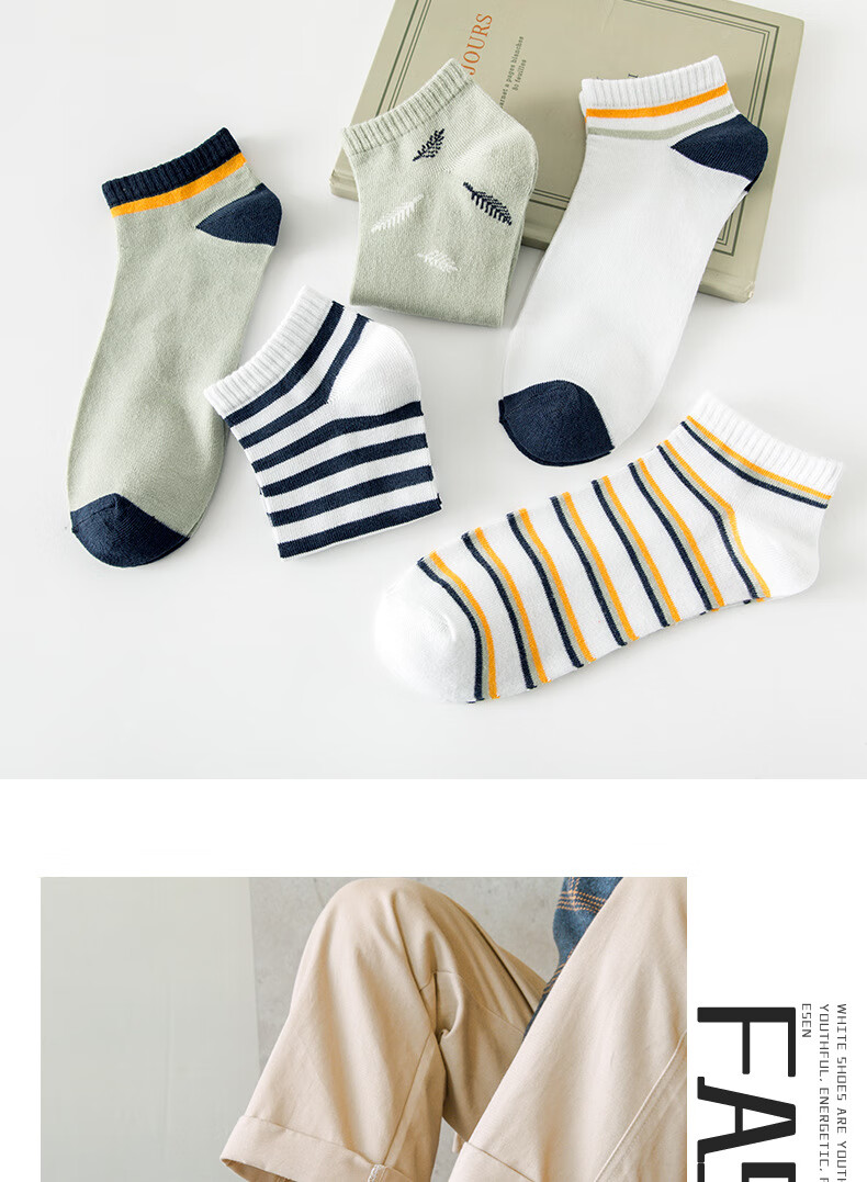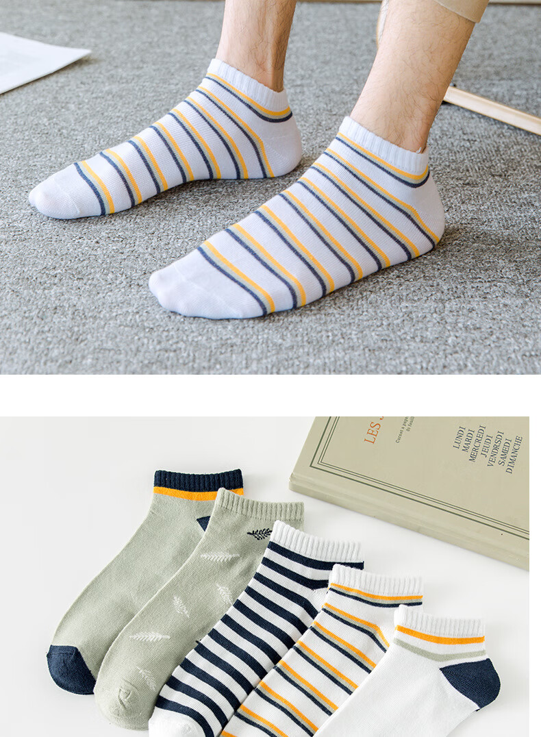 米大爷10双袜子男短袜夏季男袜子薄款透气船袜条纹低帮浅口潮流学生男袜 男短袜混色 10双 均码
